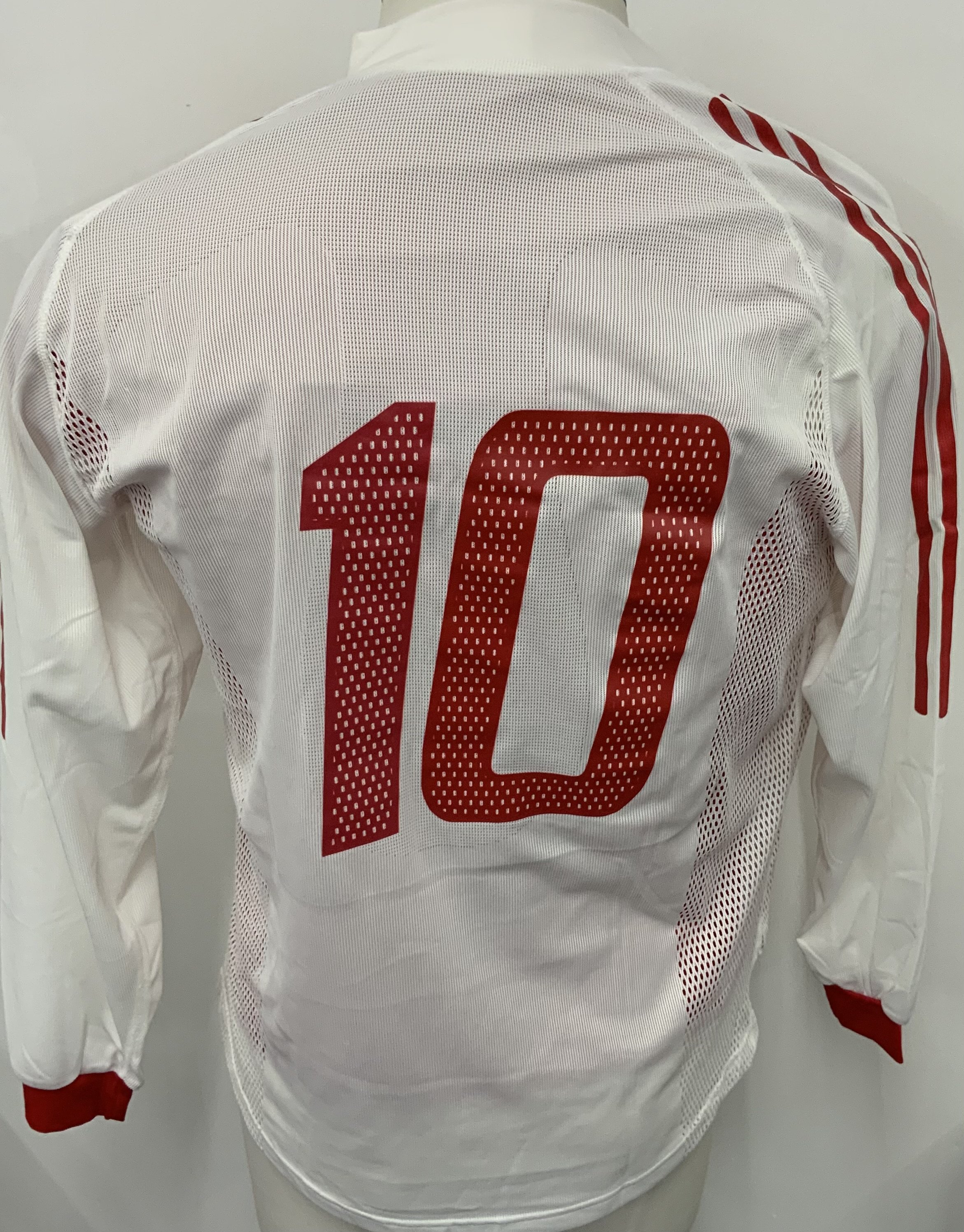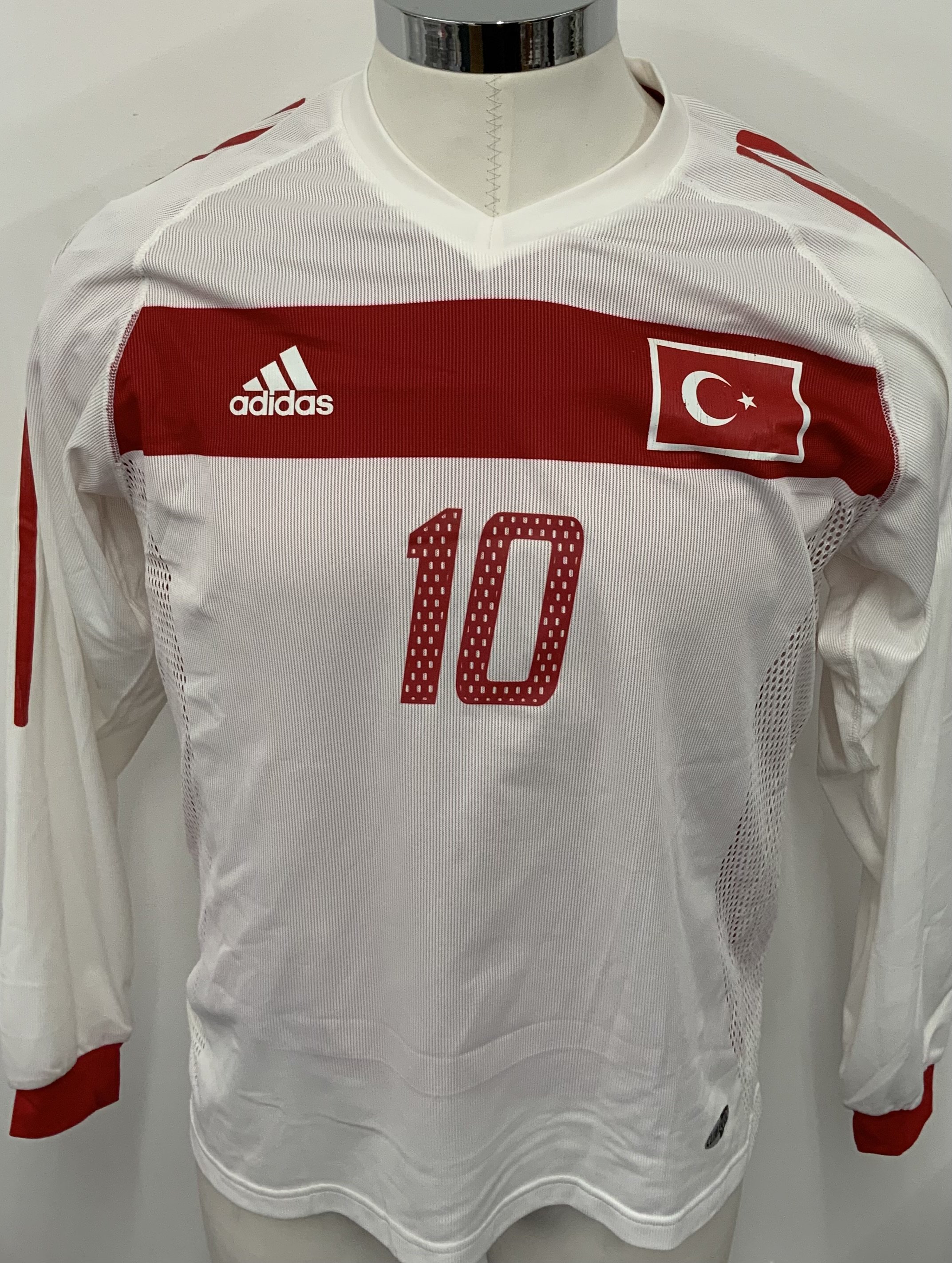 Turkey 2002 Match Worn Football Shirt: White long sleeve shirt. Number 10 Basturk. Inner red mesh still attached.