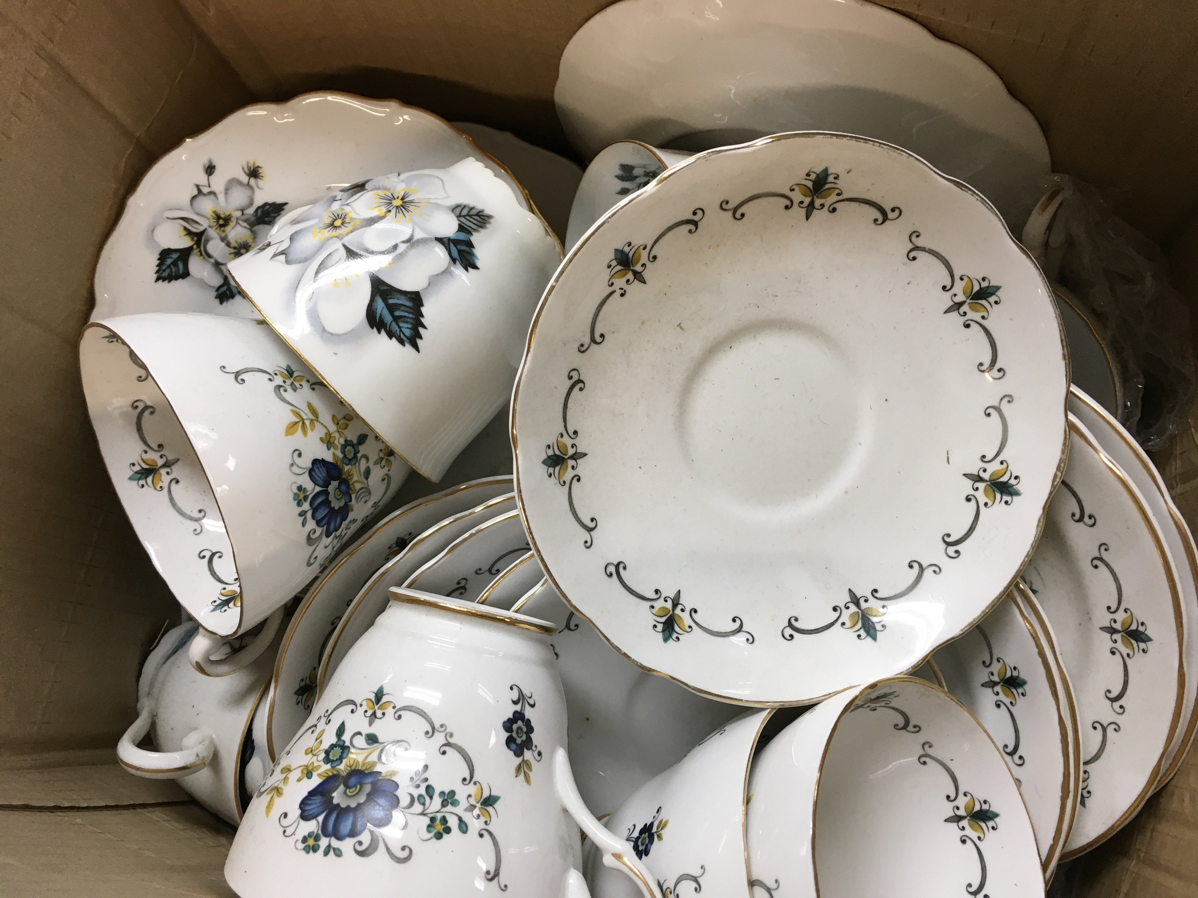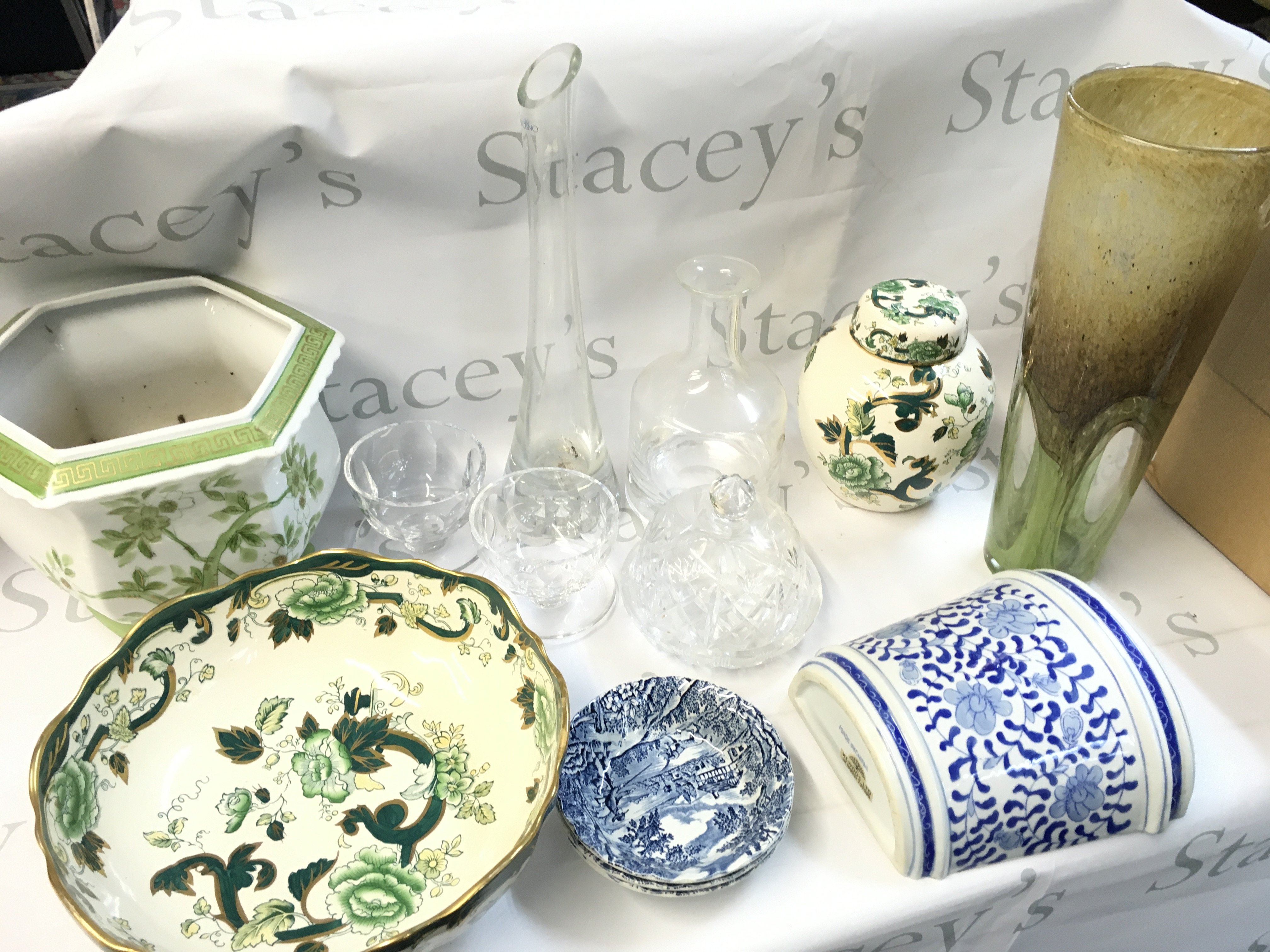 A Collection of ceramics including glass vases, Masons porcelain, Bone China set