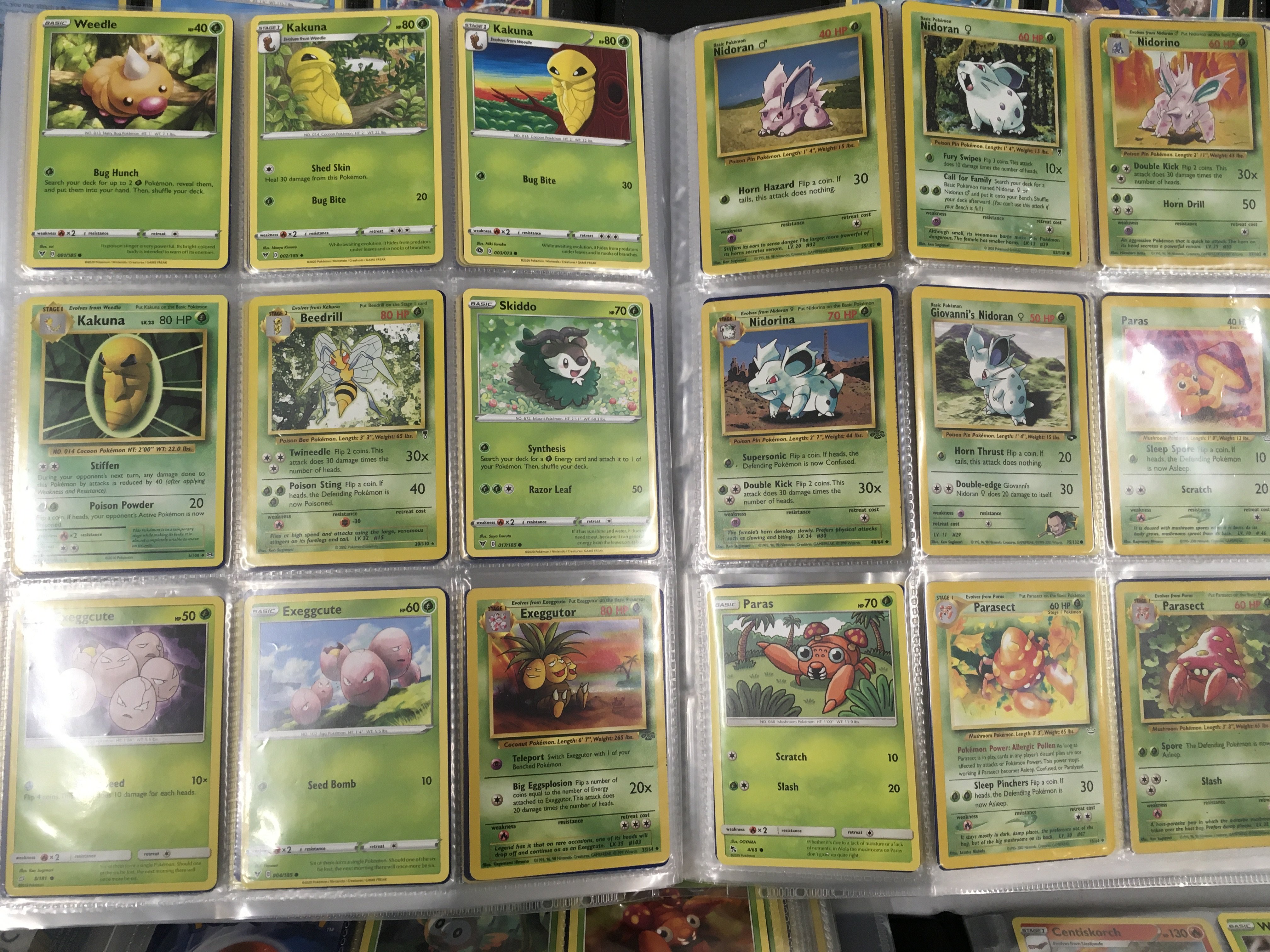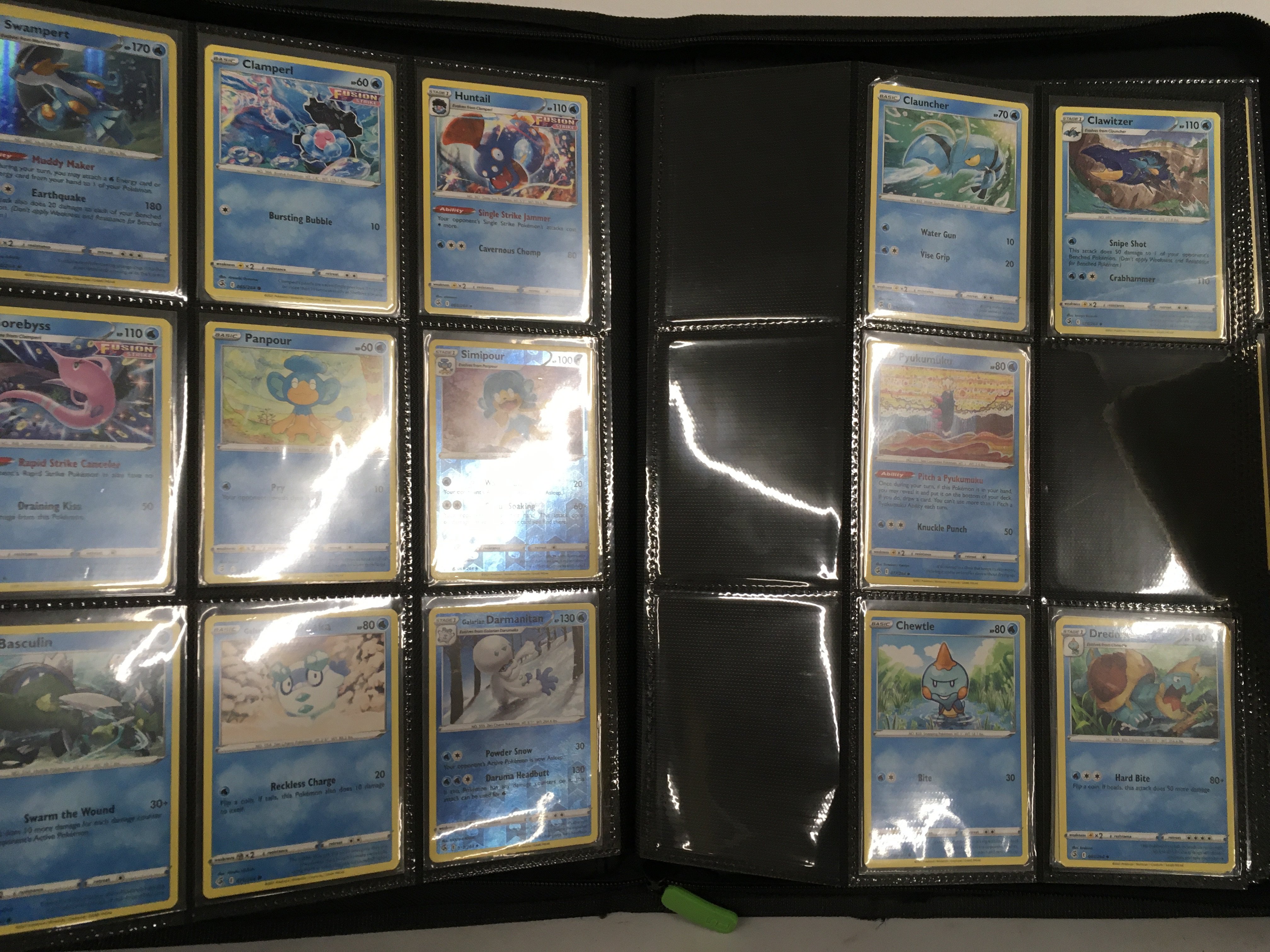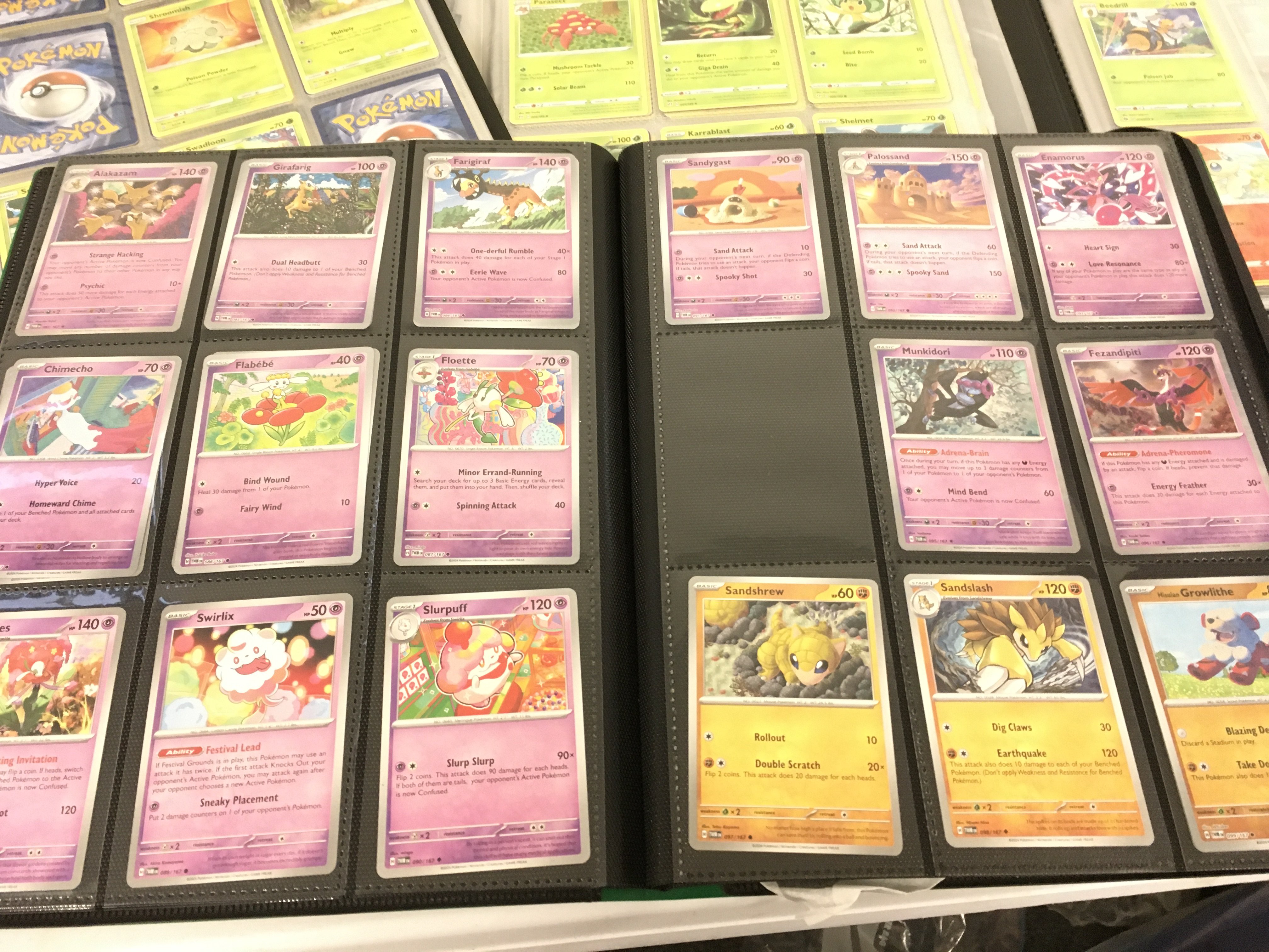 A collection of modern pokemon cards, in 7 albums and a tin.