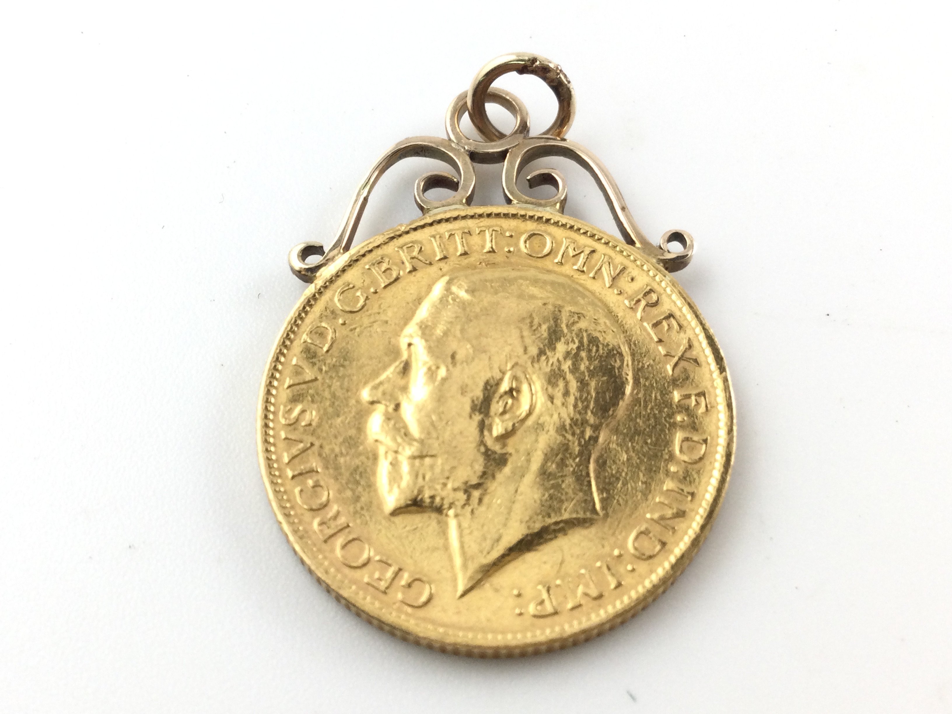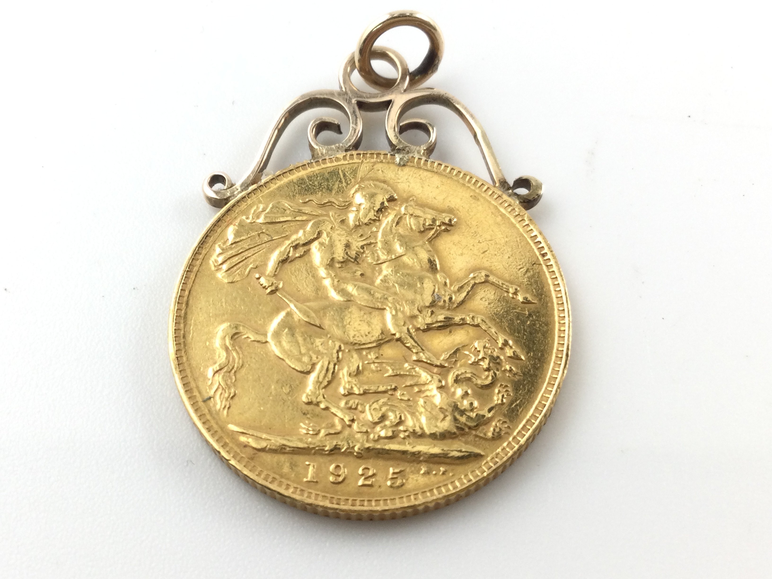 A1925 full sovereign Sydney mint mark and a soldered mount.Postage A