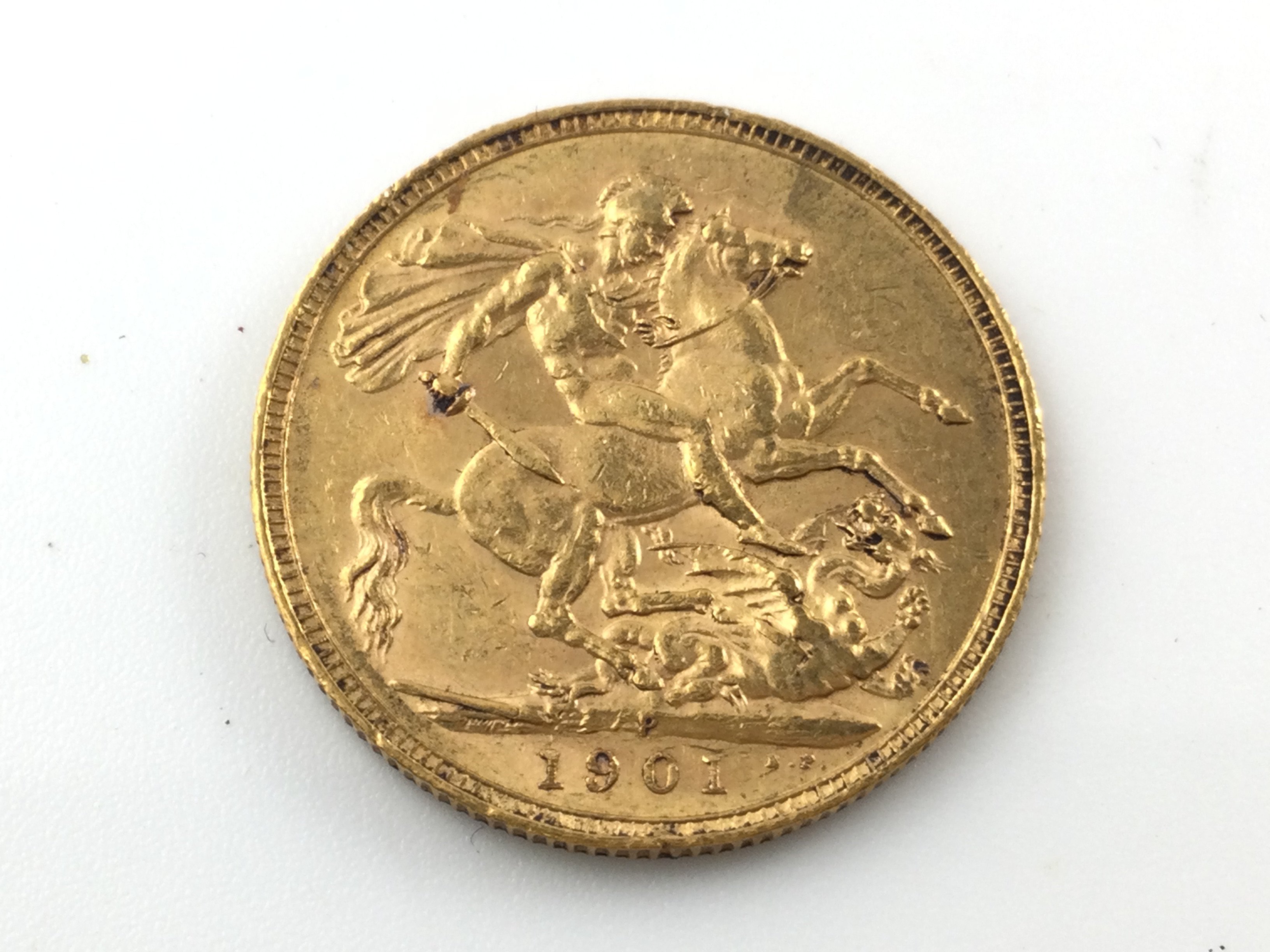 An 1901 full sovereign with Perth mint mark in coin capsule. Postage A