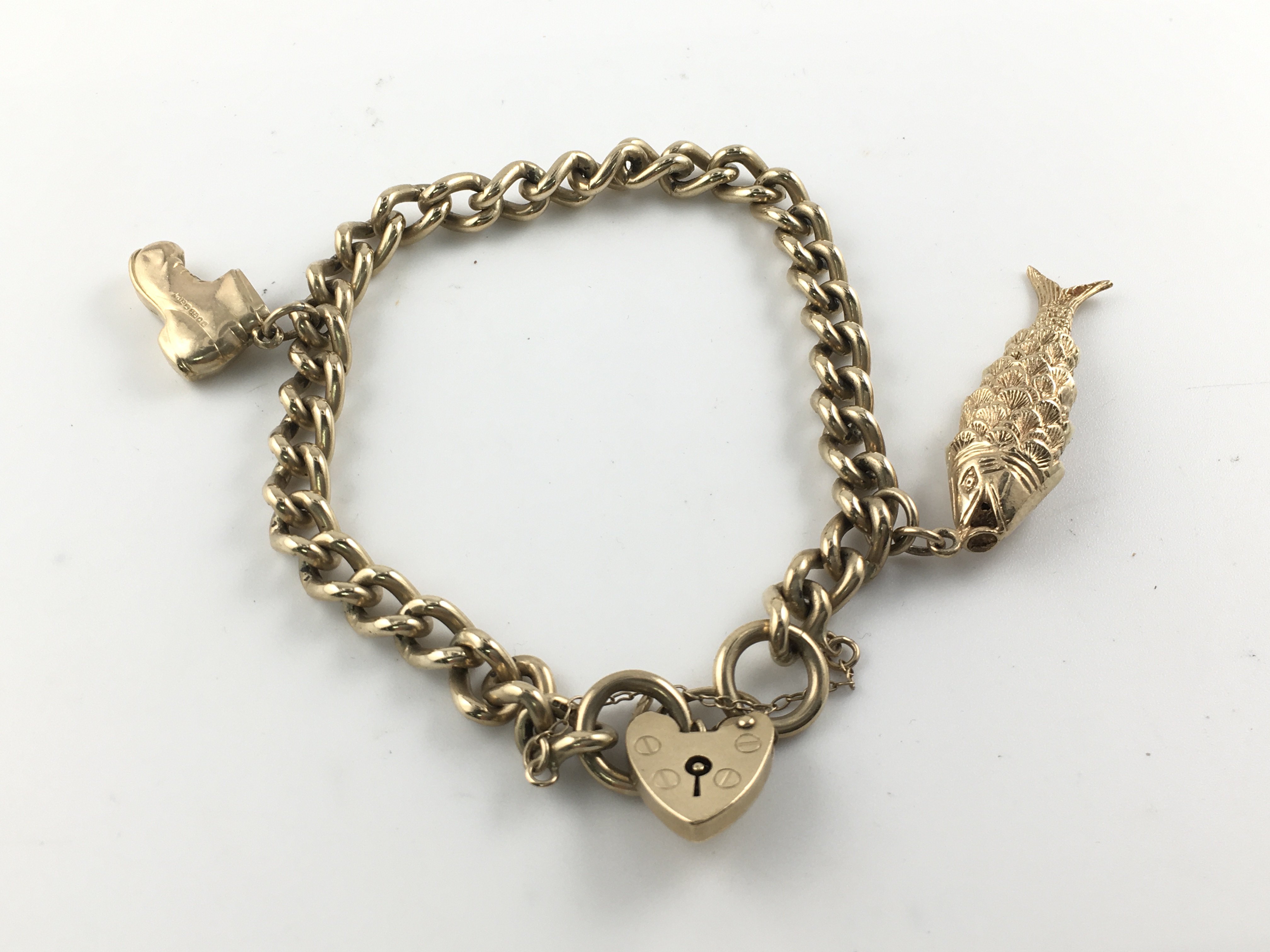 A 9ct gold charm bracelet with a heart padlock. 39g Postage B