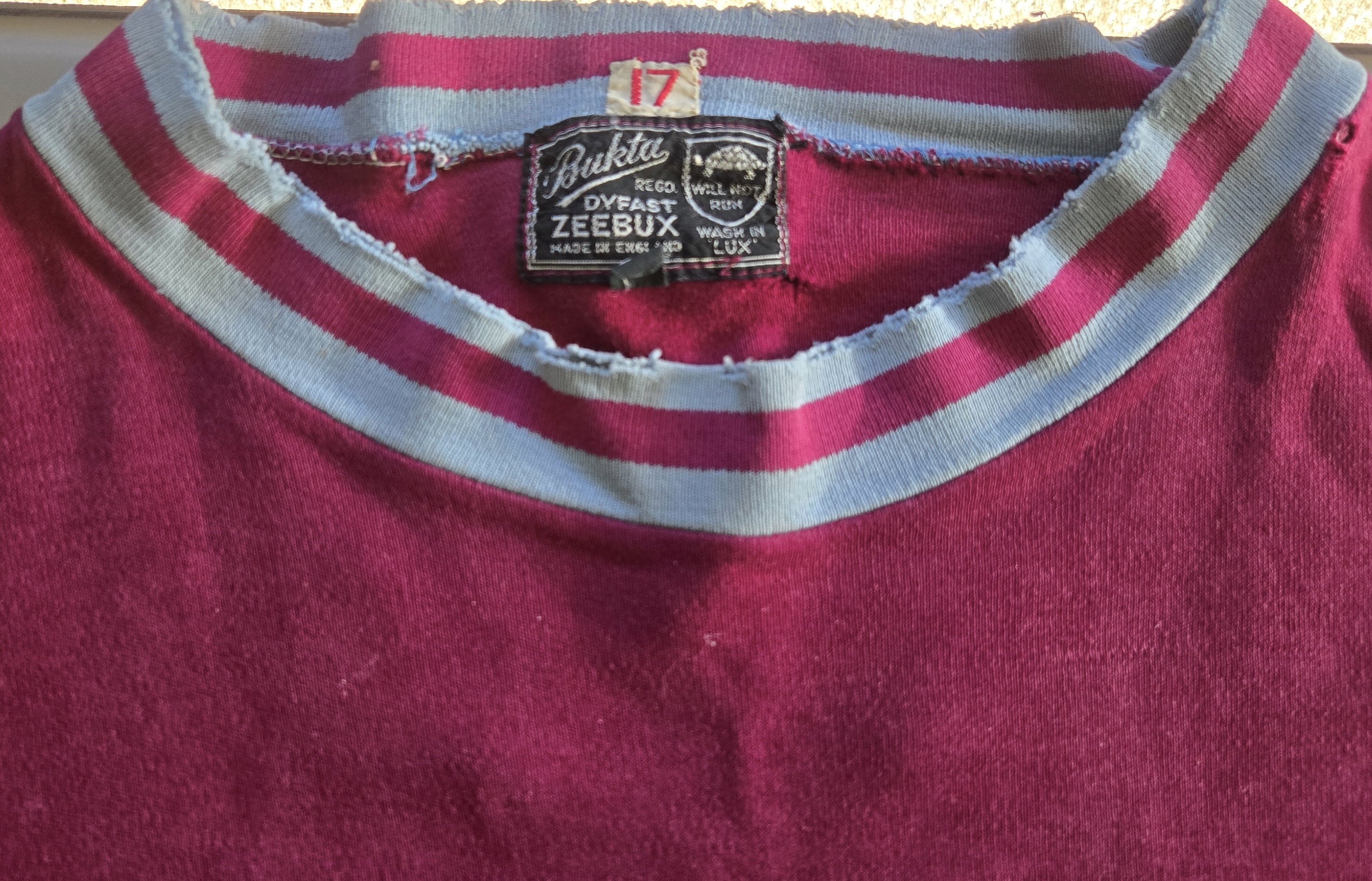 Bobby Moore West Ham Match Worn Football Shirt: Purchased by vendor in the 60s from West Ham member of staff Stan Botham. Legal letter stating this was a usual occurrence for Mr Botham to sell shirts that were not good enough to wear anymore. Mr Botham did most jobs for the club including groundsman, photographer, clerk of works and more. The vendor purchased this shirt for half a crown at Chadwell Heath training ground amongst others which are not in this auction. Shirt was worn afterwards and has wear and faults.