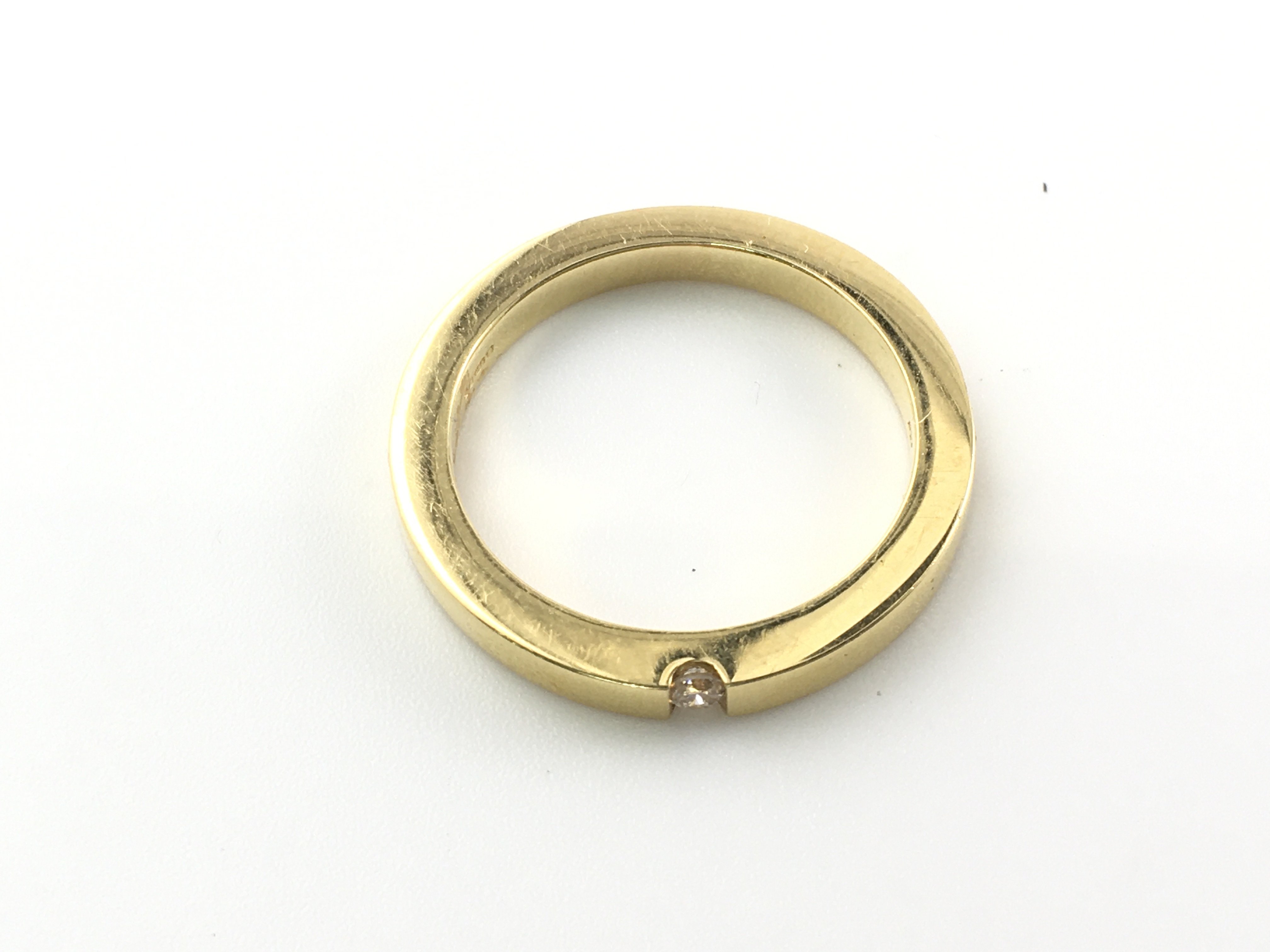 An 18ct gold ring set with 0.05ct diamond. Size N and 5.42g Postage A
