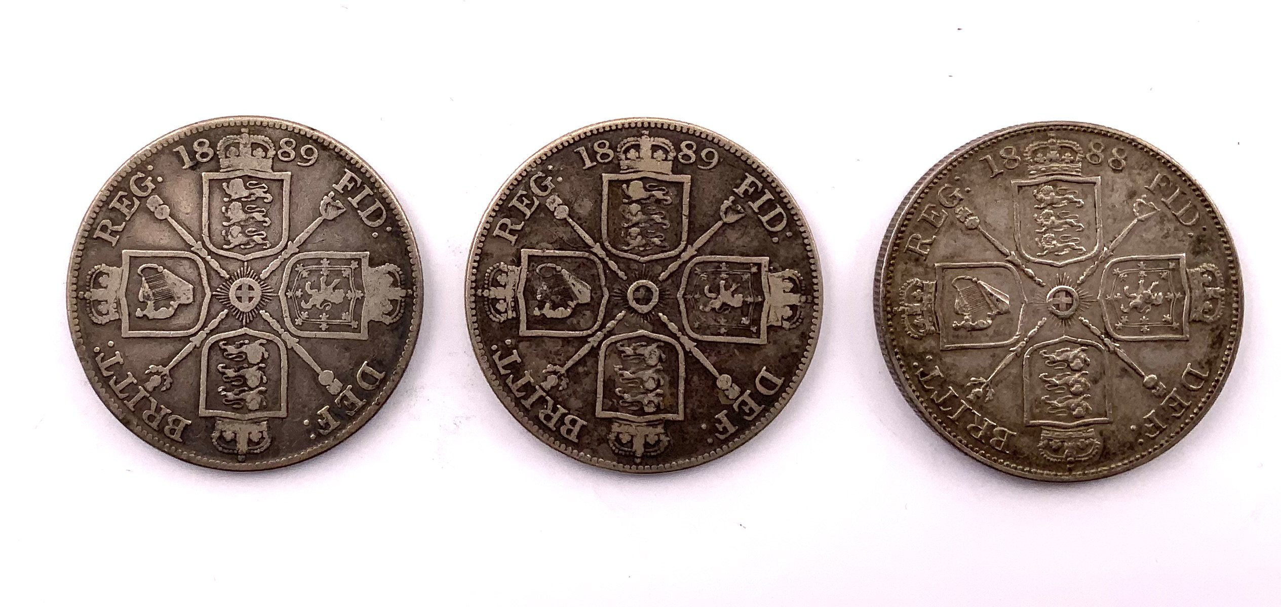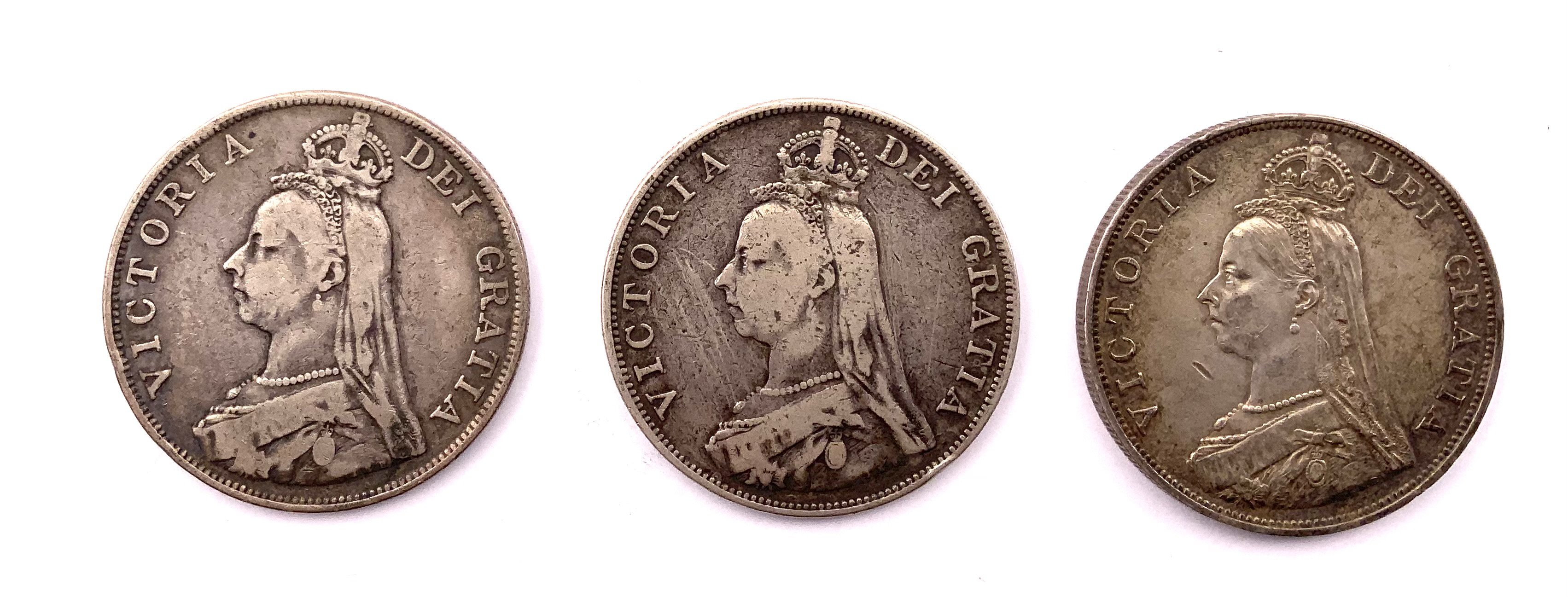 3 Queen Victoria Half Crowns 2 x 1889, 1 1888.