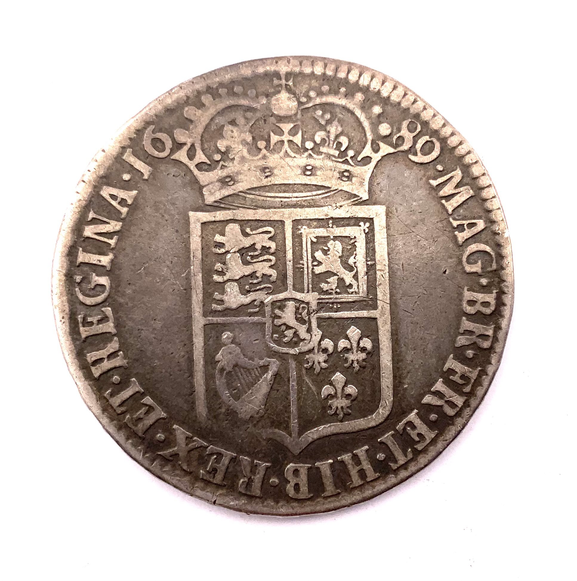 William & Mary 1689 Halfcrown, Second shield. (A)