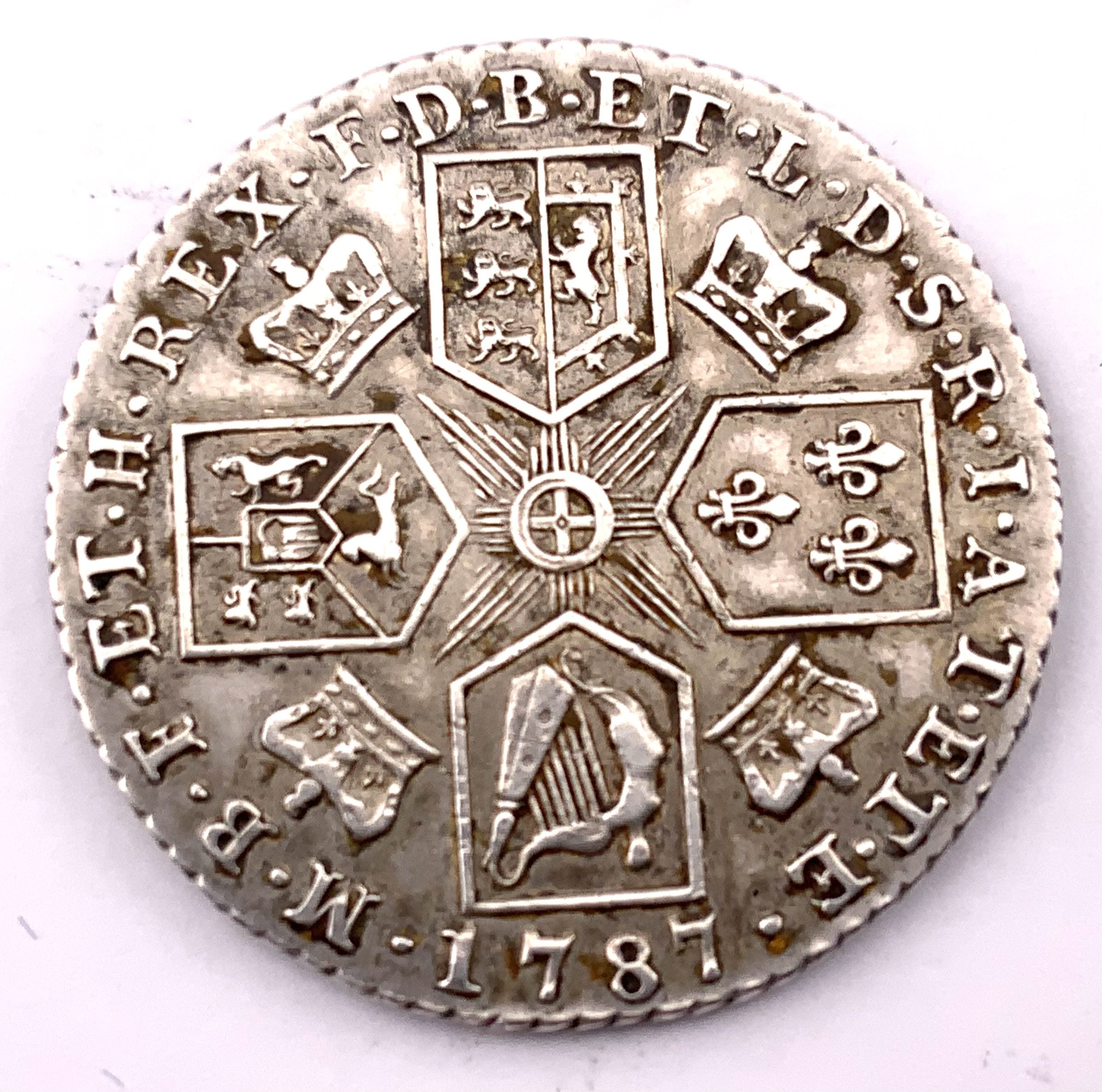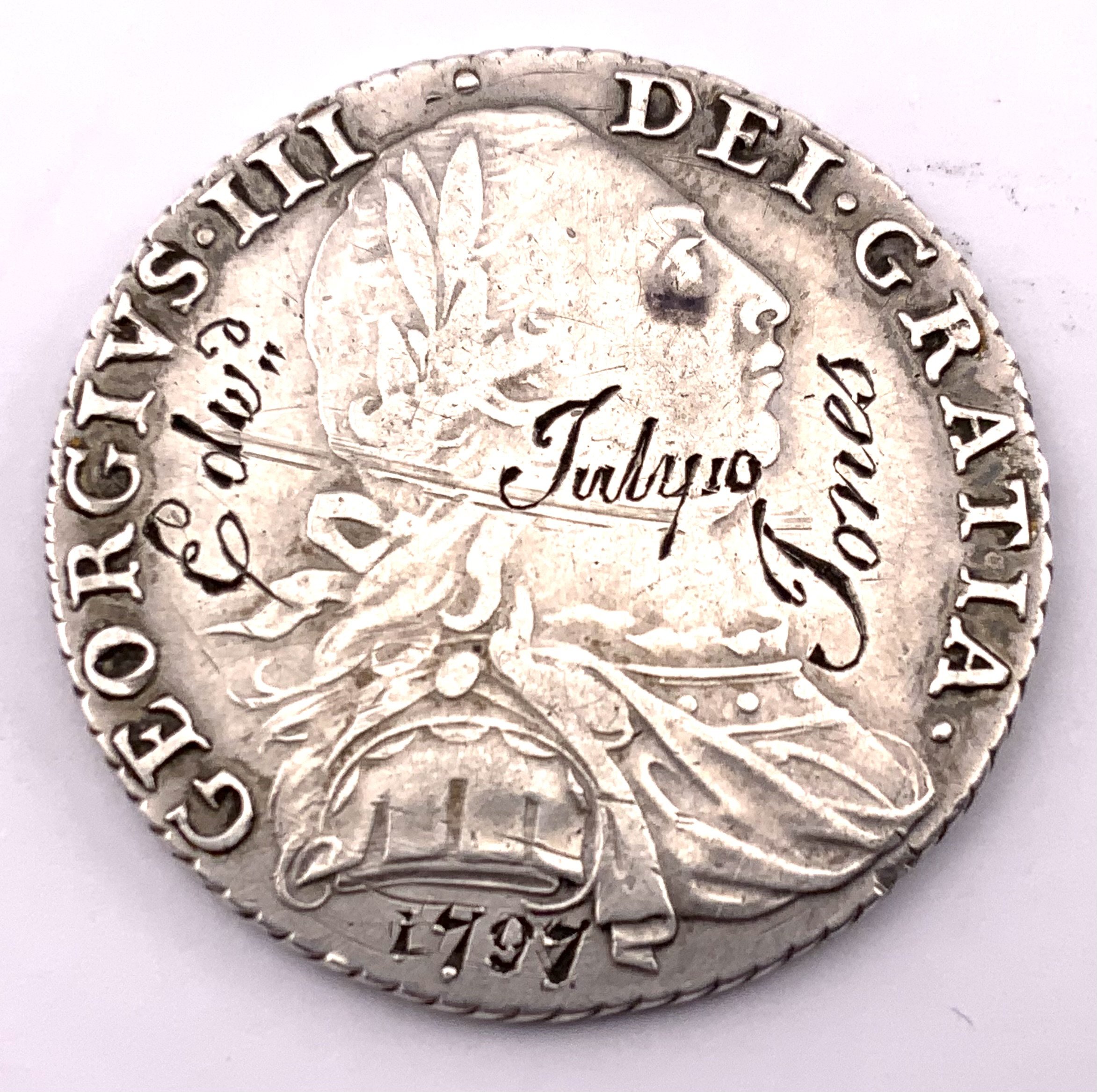 George III (1760-1820), Shilling, 1787, older laureate bust right, personalised engraving with Edward Tupleo Jones 1797.