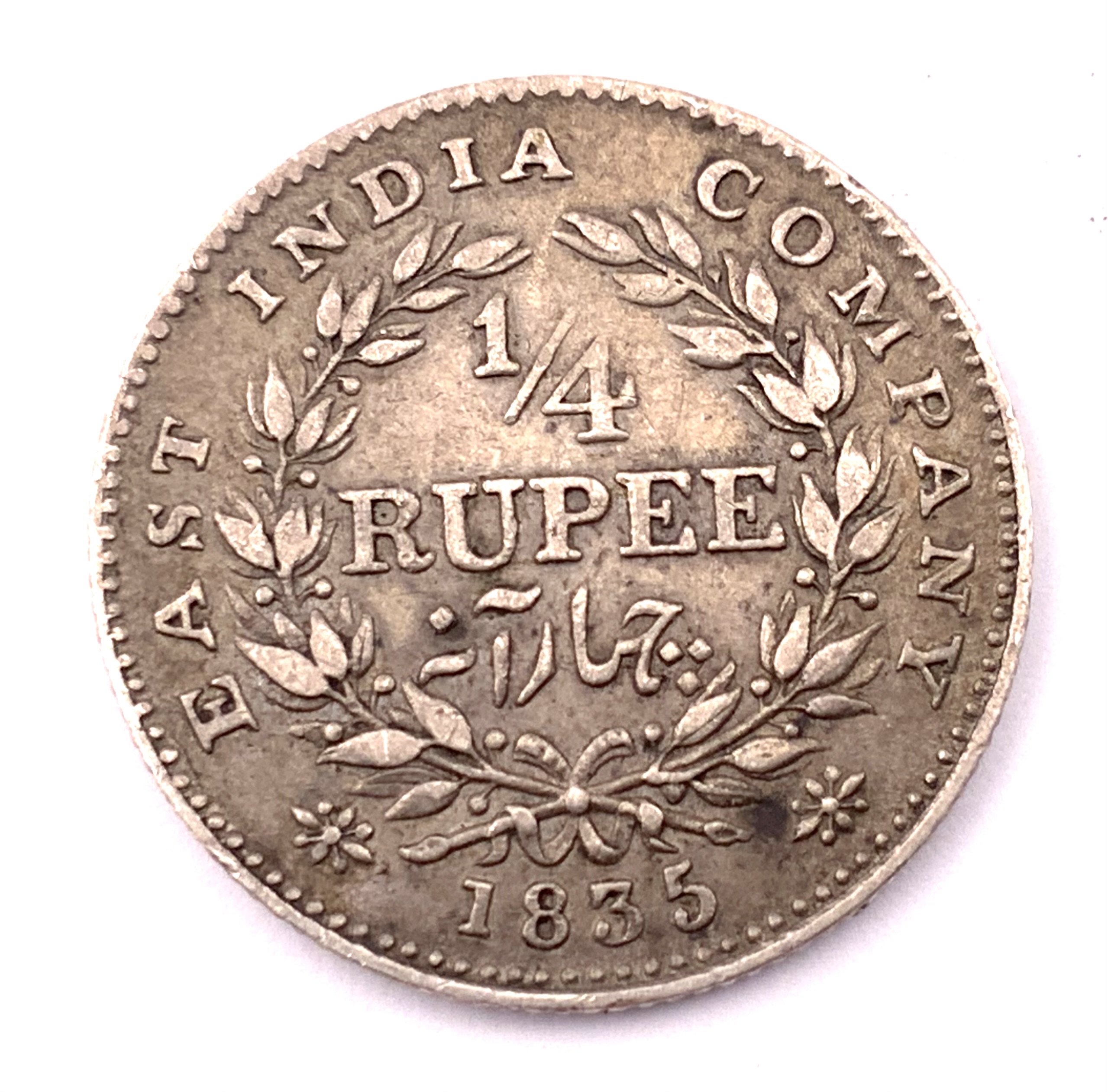 1835 East India Company, William IIII Silver 1/4 Rupee