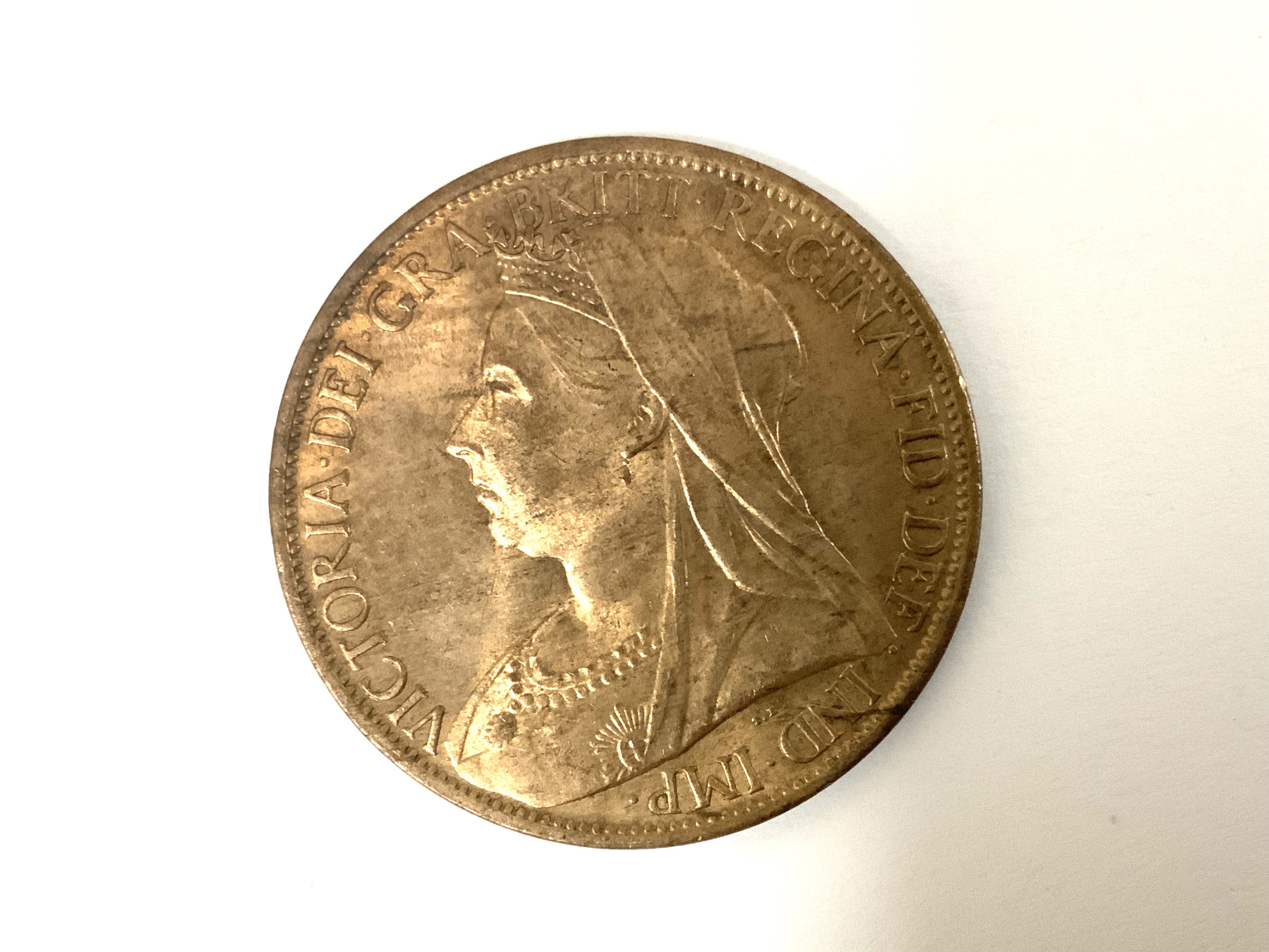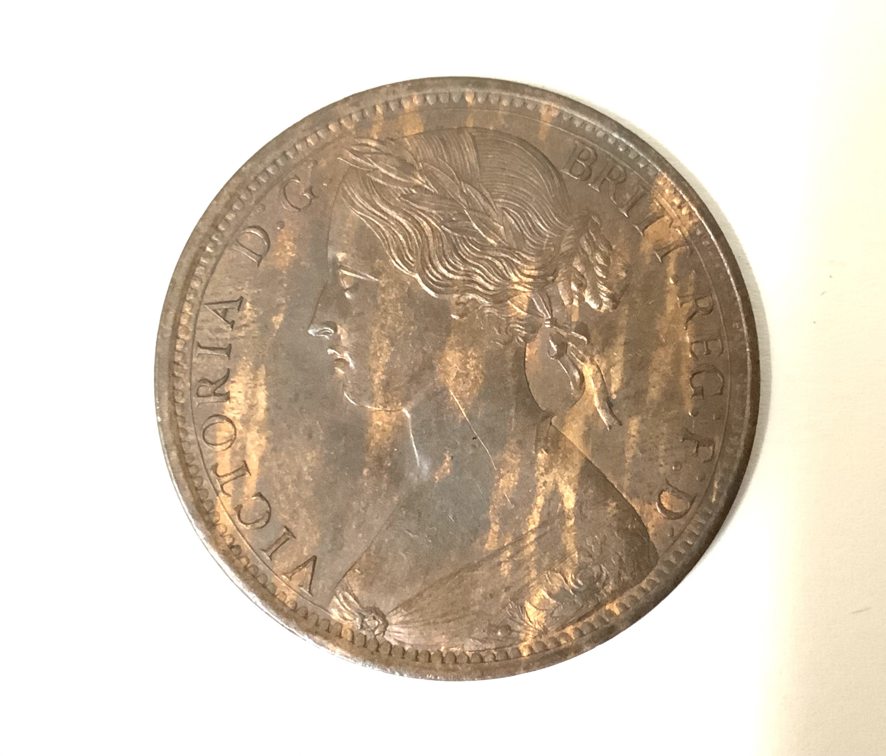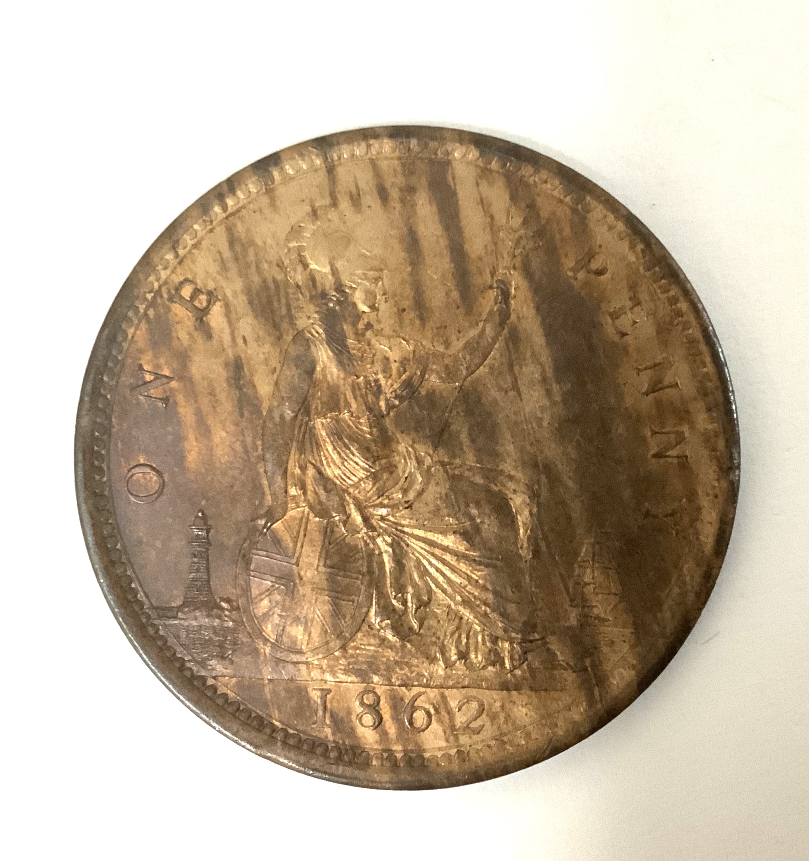1862 young head Victoria Penny, Obverse Gouby J example with unusual tone plus 1899 Penny