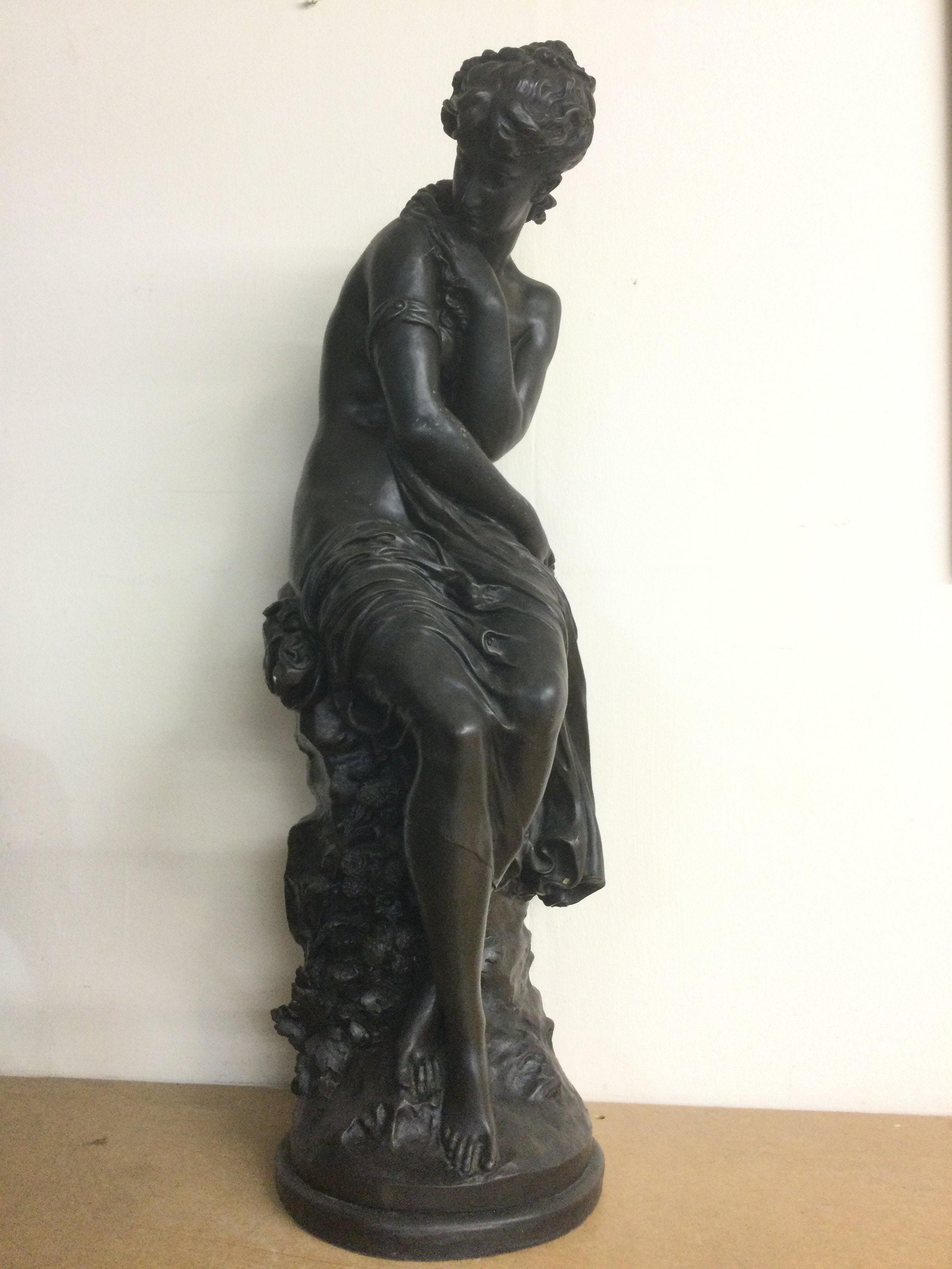 A large bronzed resin figure of a seated maiden, after Moreau, approx height 65cm. Shipping category D.