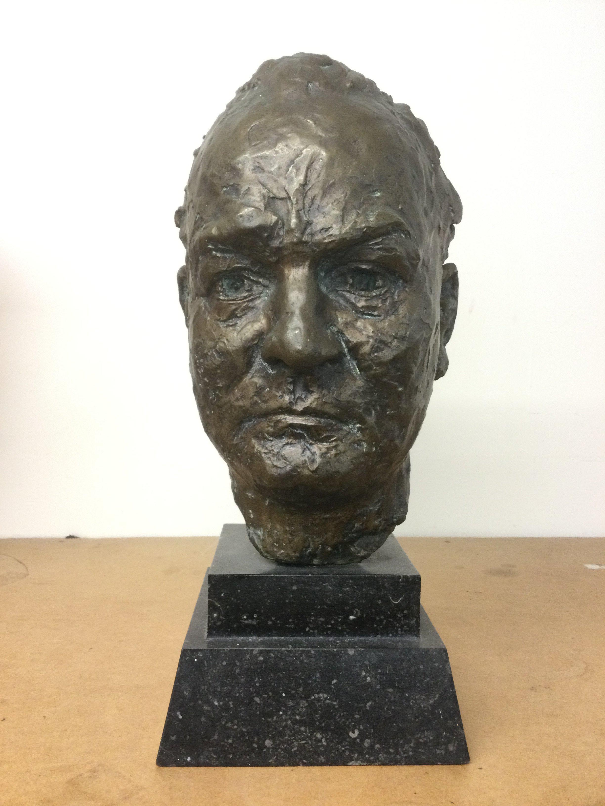 A bronze bust of Sir Winston Churchill raised on a marbled plinth, approx height 42cm. Shipping category D.