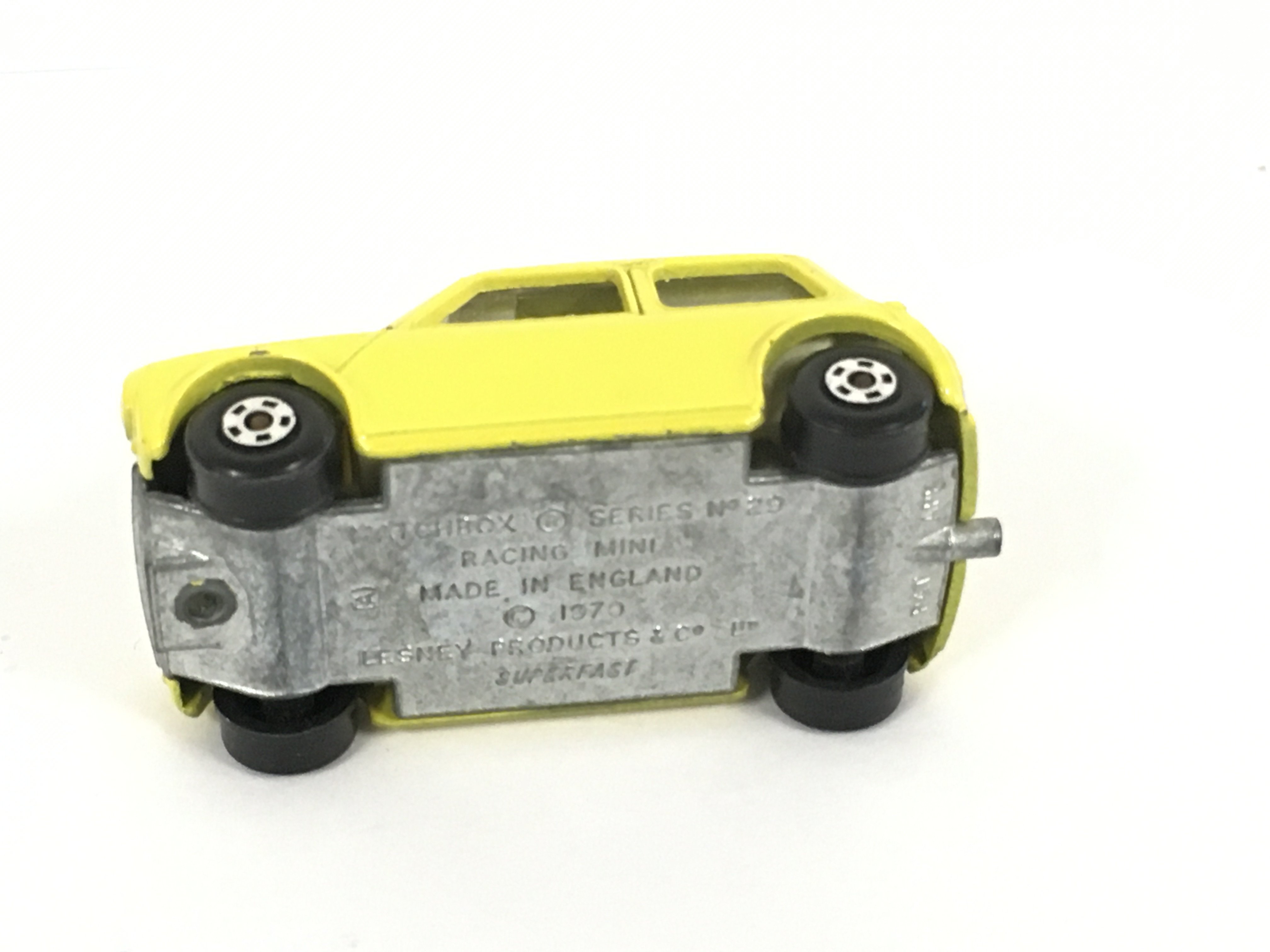 A Matchbox Superfast series no.29. Racing mini in yellow livery with Ford GT bonnet decal. 1970