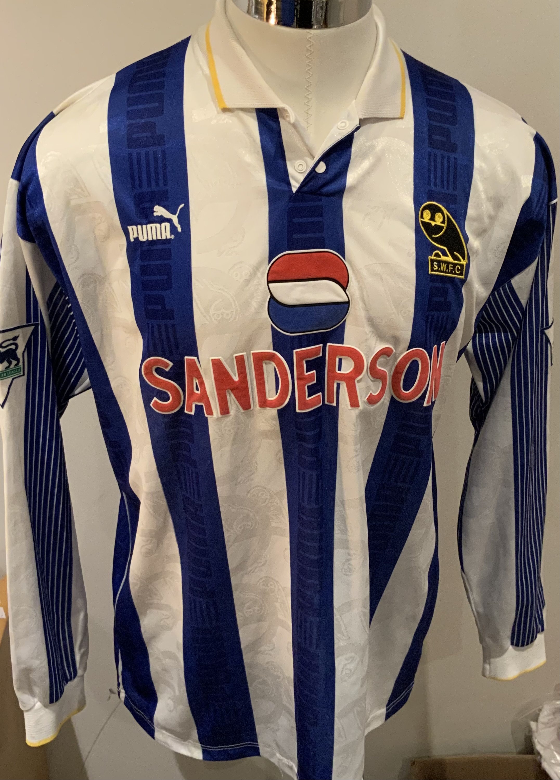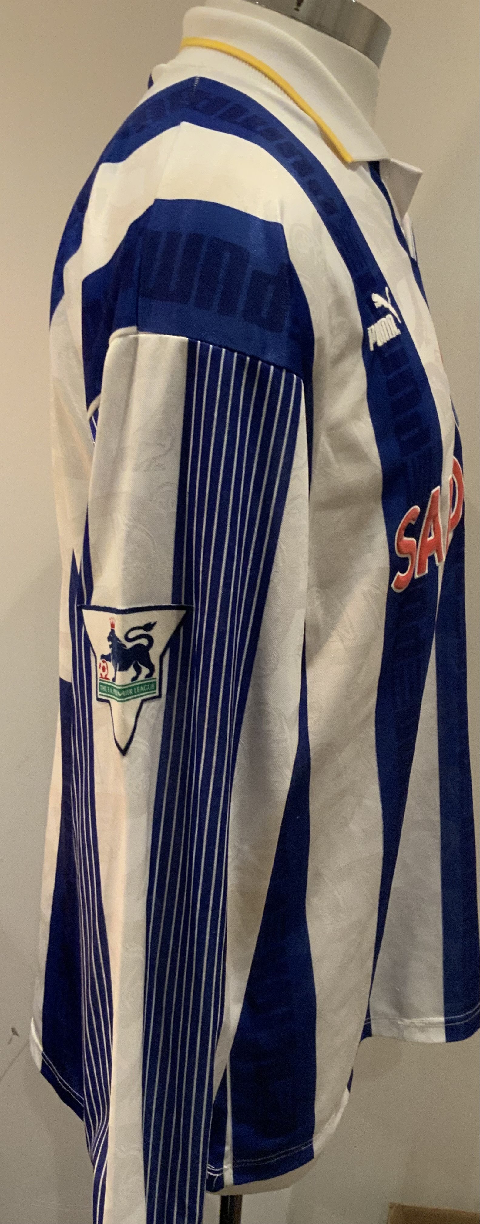Sheffield Wednesday 1993 - 1994 Match Worn Football Shirt: Blue and white long sleeve Puma shirt with Premier League badging to sleeves. Hirst 9 to rear.