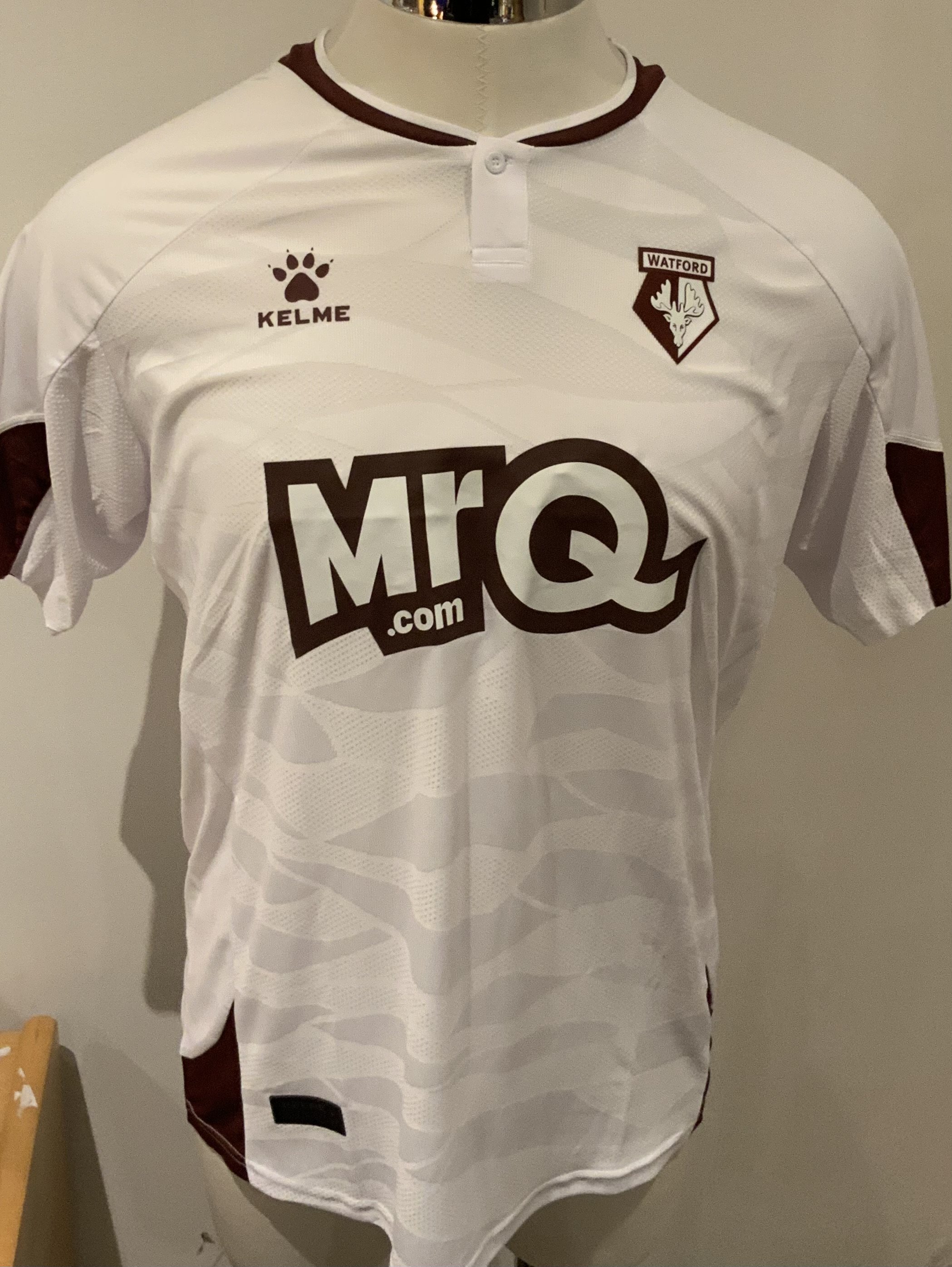 Watford 2023 - 2024 Match Worn Football Shirt: White short sleeve shirt with Sky Bet badge to sleeve. Livermore 8 to rear.