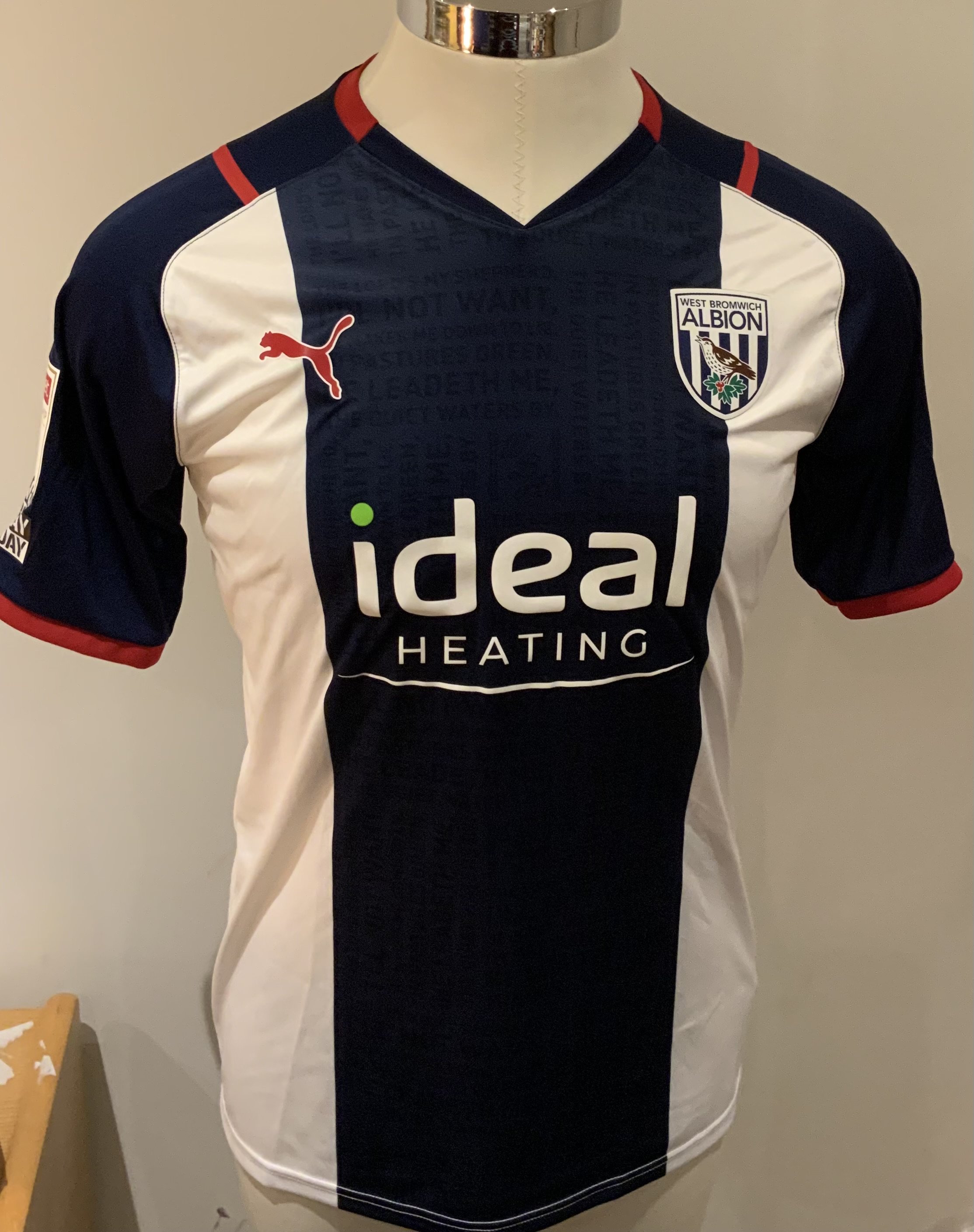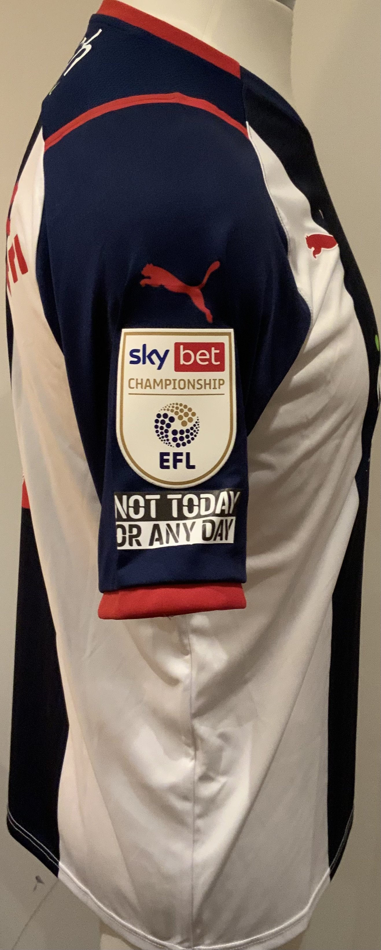 West Brom 2021 - 2022 Match Worn Football Shirt: Blue and white short sleeve shirt with Sky Bet EFL badges to sleeves. Livermore 8 to rear.