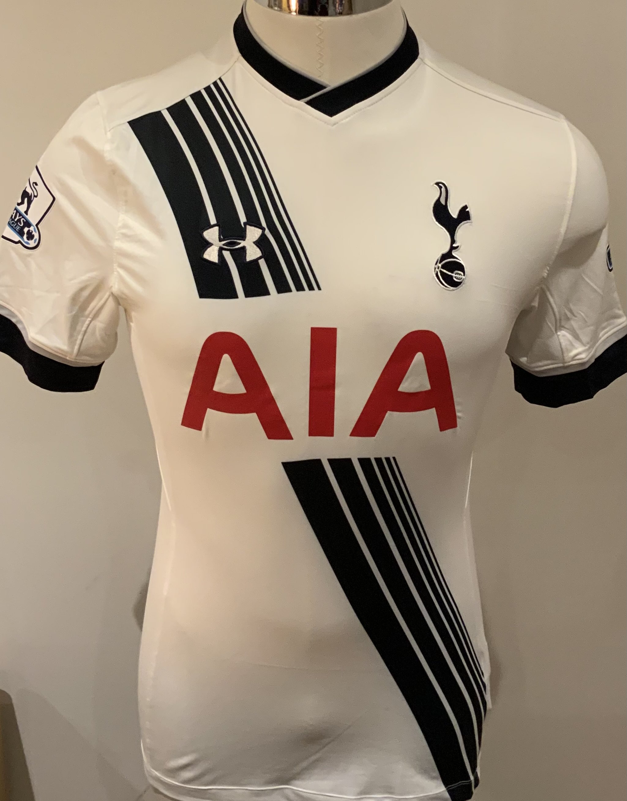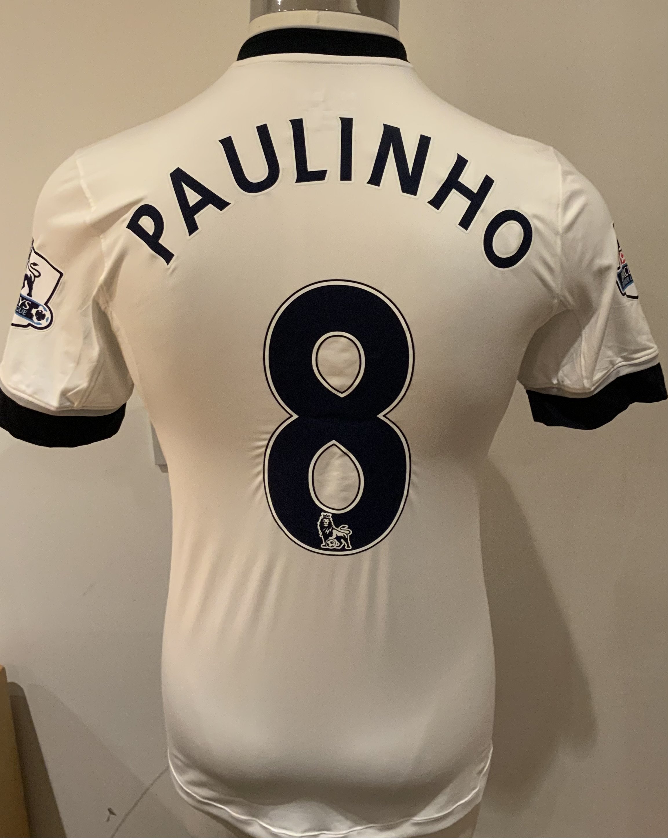 Tottenham 2015 - 2016 Match Worn Football Shirt: White short sleeve shirt with Premier League badging to sleeves. Paulinho 8 to rear.
