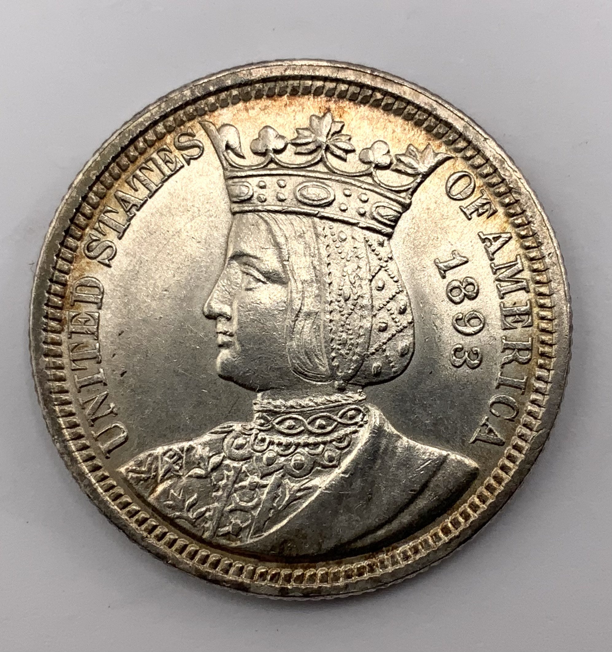 1893 Isabella Colombian exposition commemorative quarter, XF, light toning.