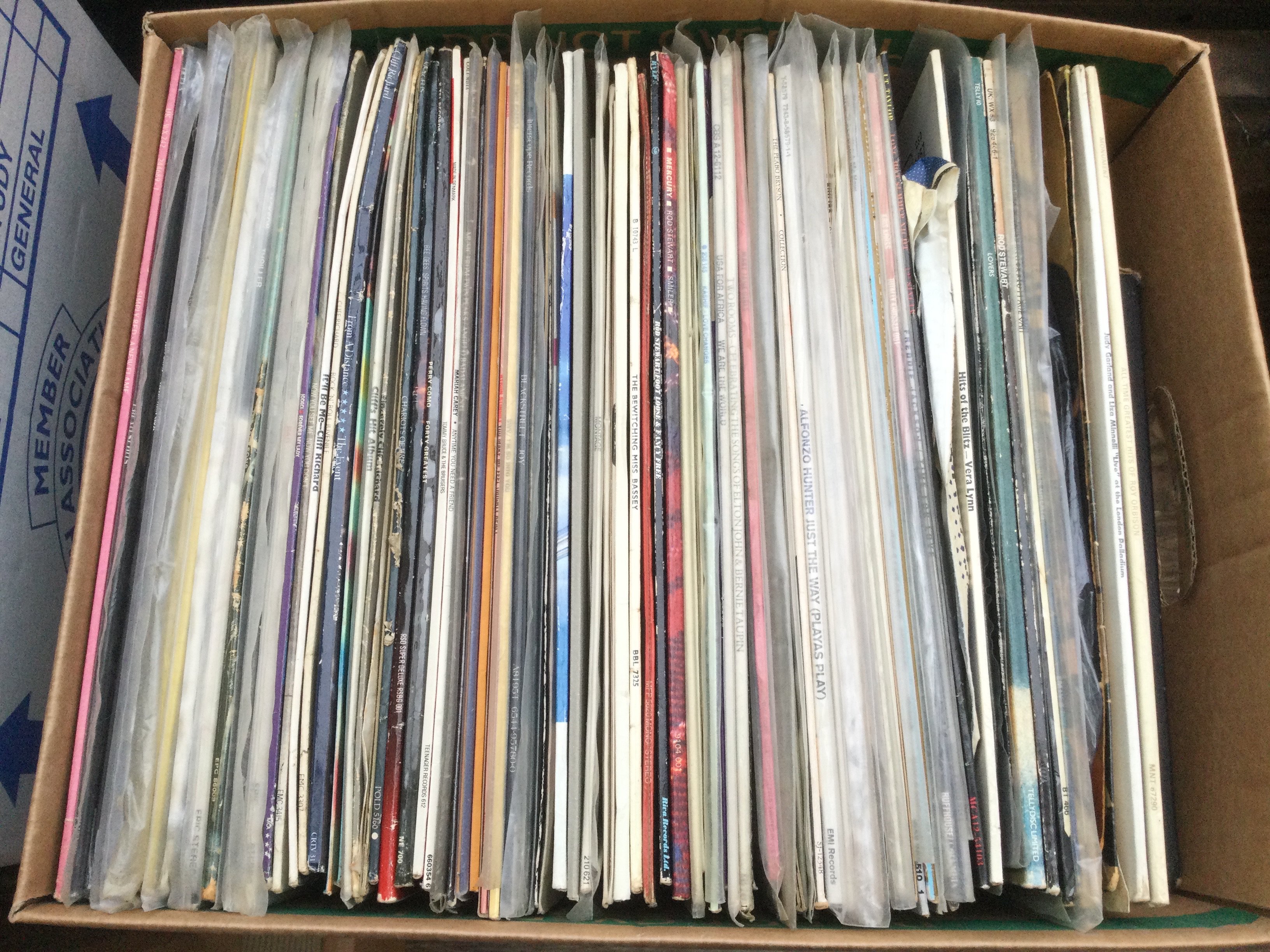 Four boxes of LPs and 12" singles by various artists including many soul and dance compilations.