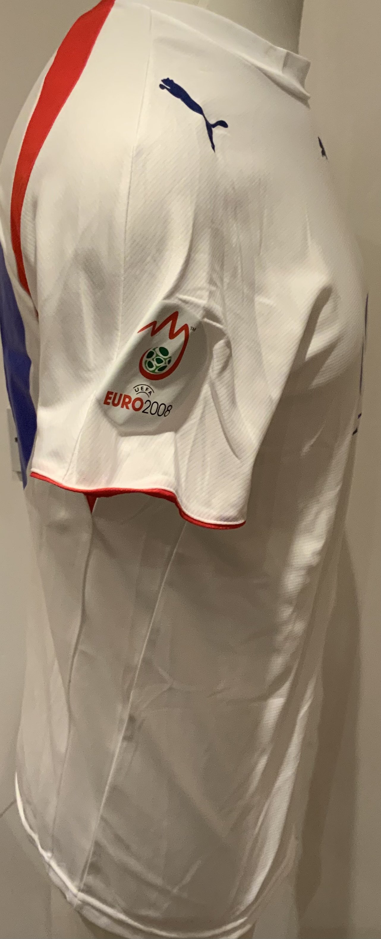Faroe Islands Match Worn Football Shirt: White short sleeve shirt with number 10 to rear. Worn in Euro 2008 qualifying tournament v Scotland on 2 September 2006. Worn by Christian Hogni Jacobsen.