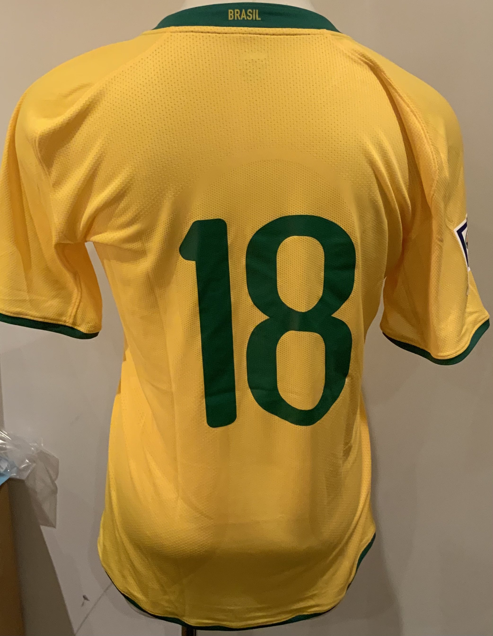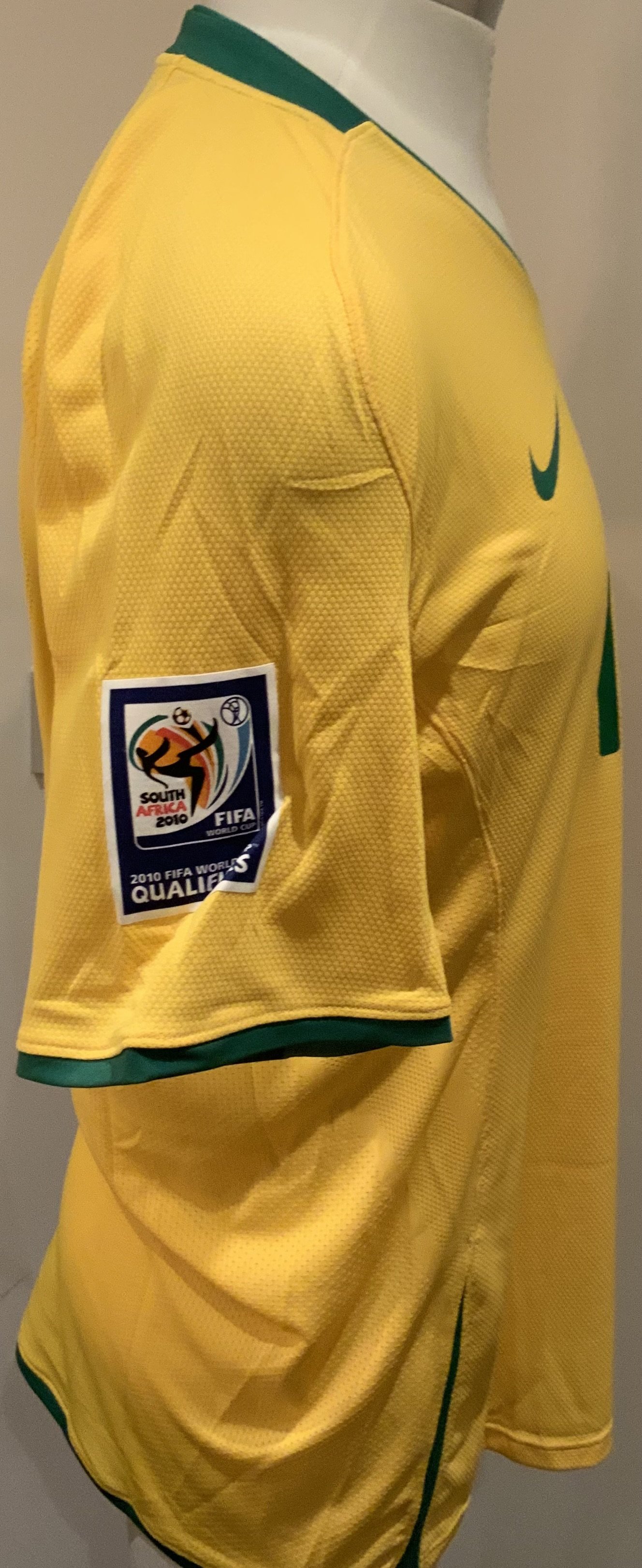 Brazil Match Issued Football Shirt: Yellow short sleeve shirt with number 18 to rear. Issued to Adriano (Adriano Leito Ribeiro) for the 2010 World Cup qualifying tournament.