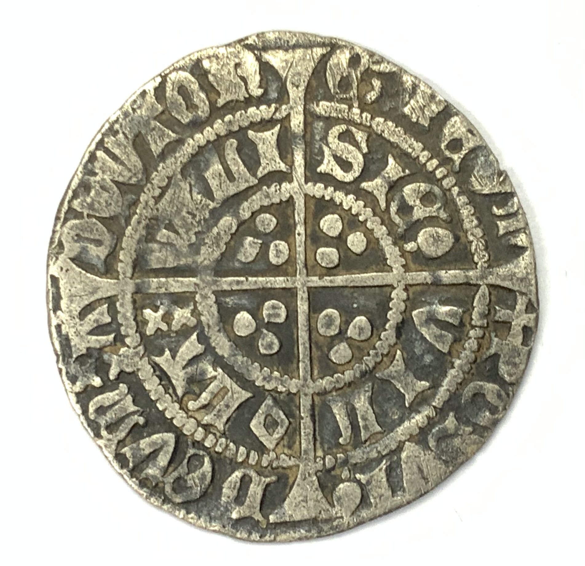 Henry VI half groat, Calais mint, pine cone mascale, Cross mint mark. 1431-3.