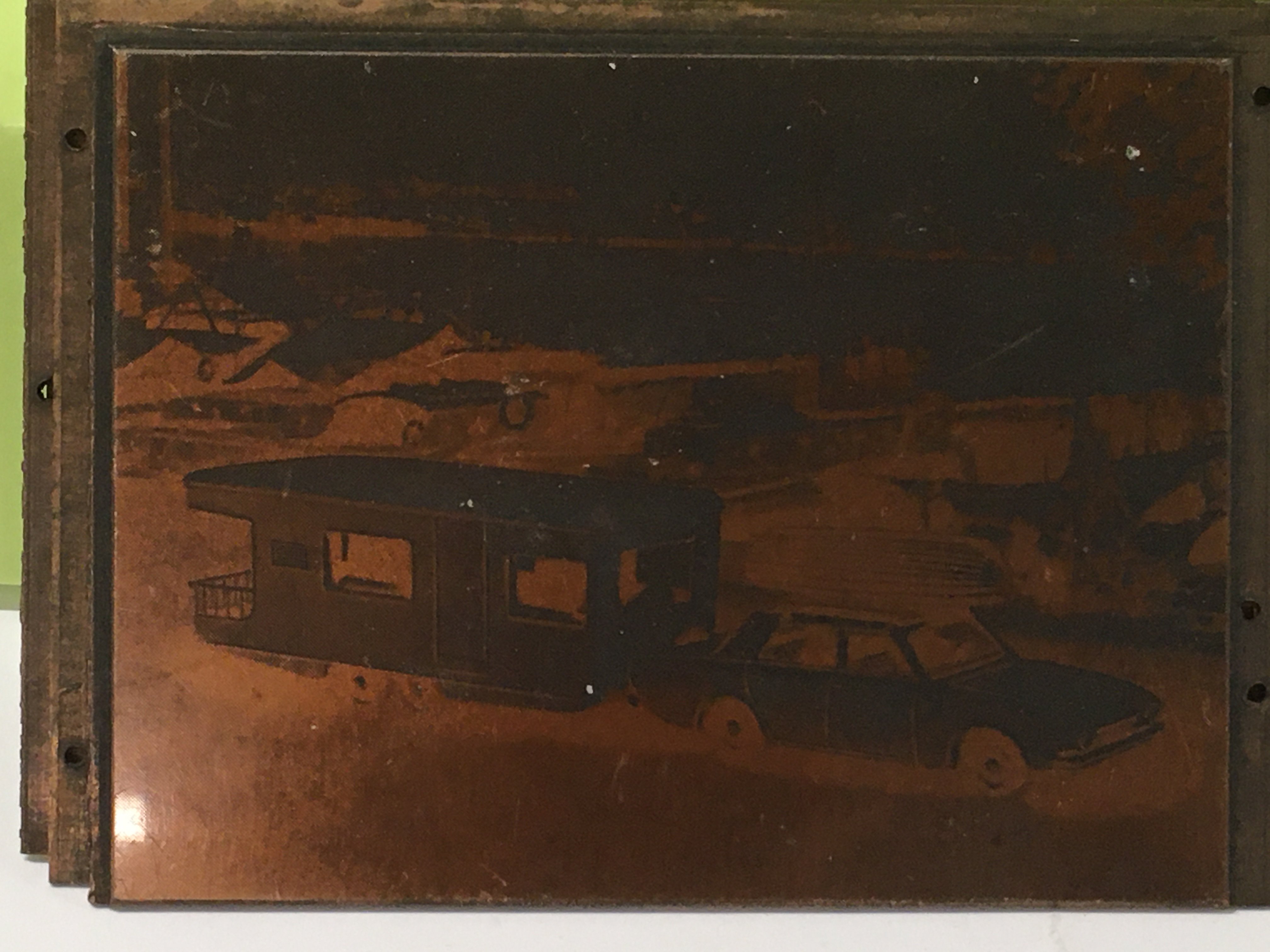 A collection of 4 unique copper printing plates made for the Matchbox company. Each plate is approximately 100 x 80mm.