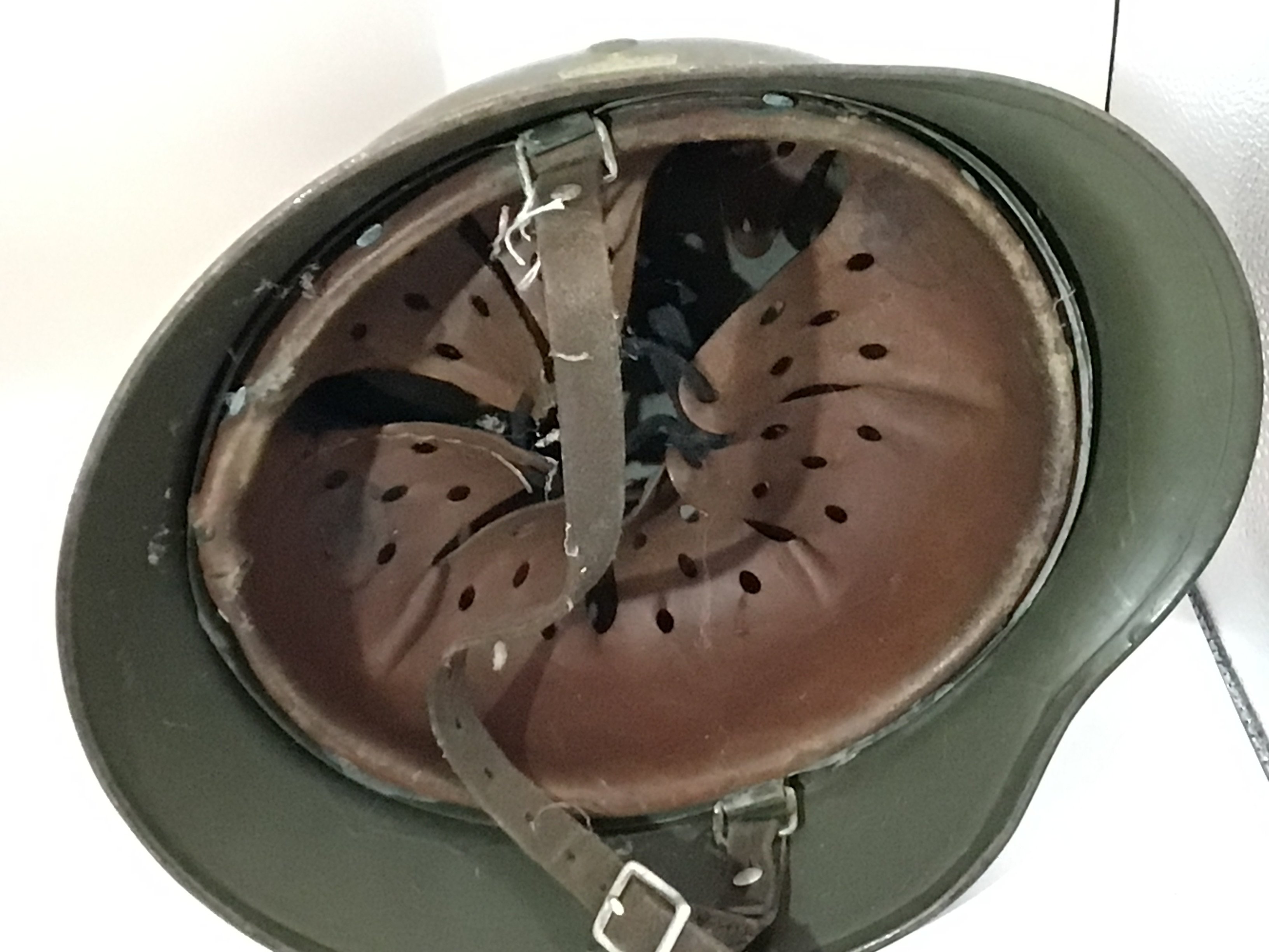 A very good example of a Norwegian II world war M38 pattern helmet with double Norwegian crest decal with leather liner.