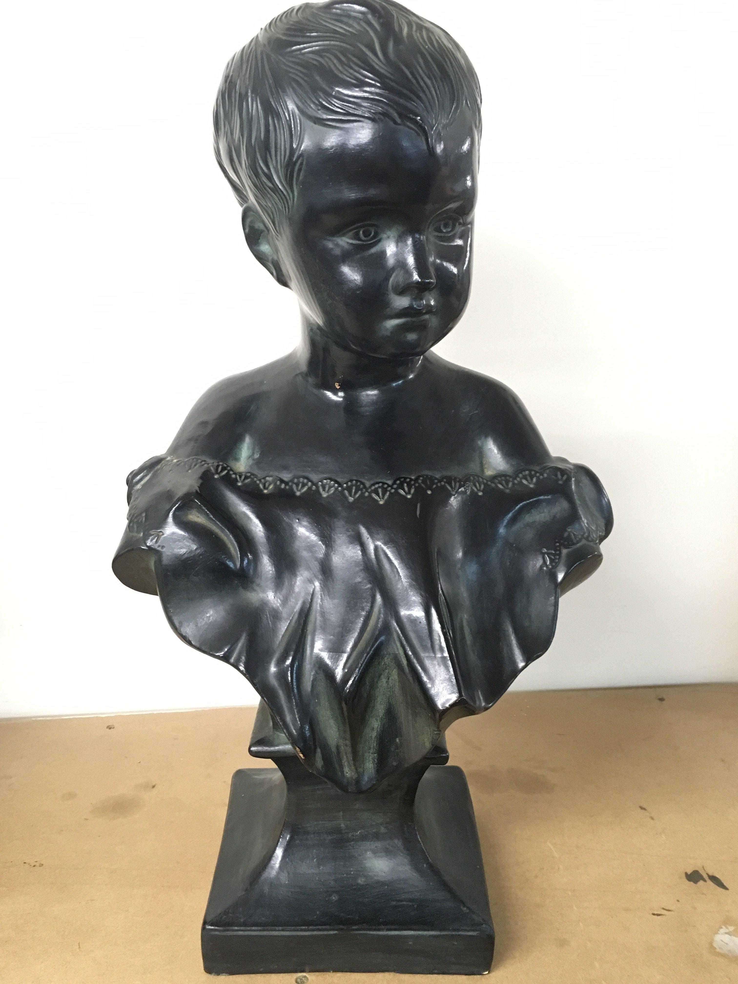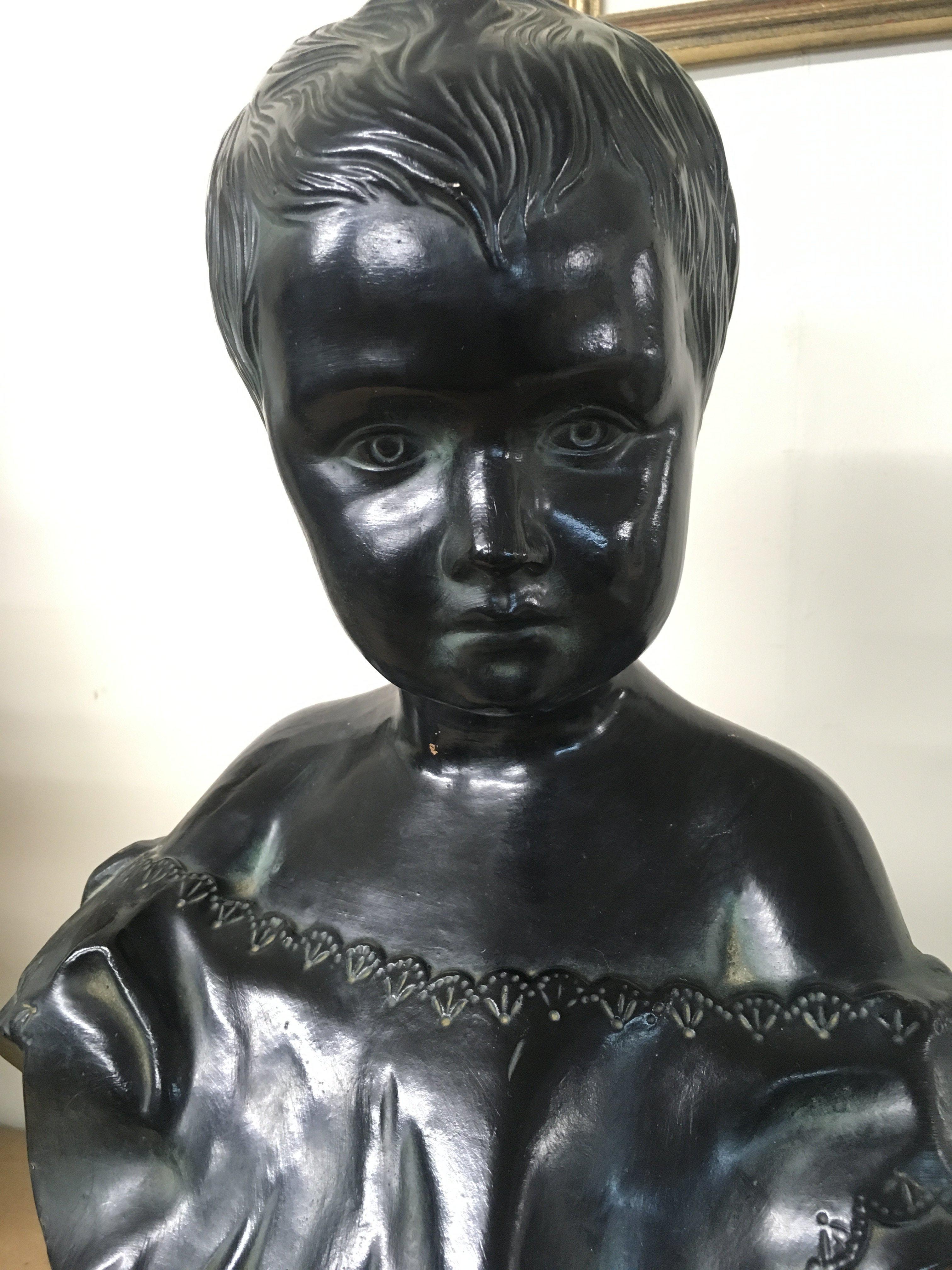 A vintage Victorian style plaster bust of a young child in a corset, tall. 51cm tall Postage category C