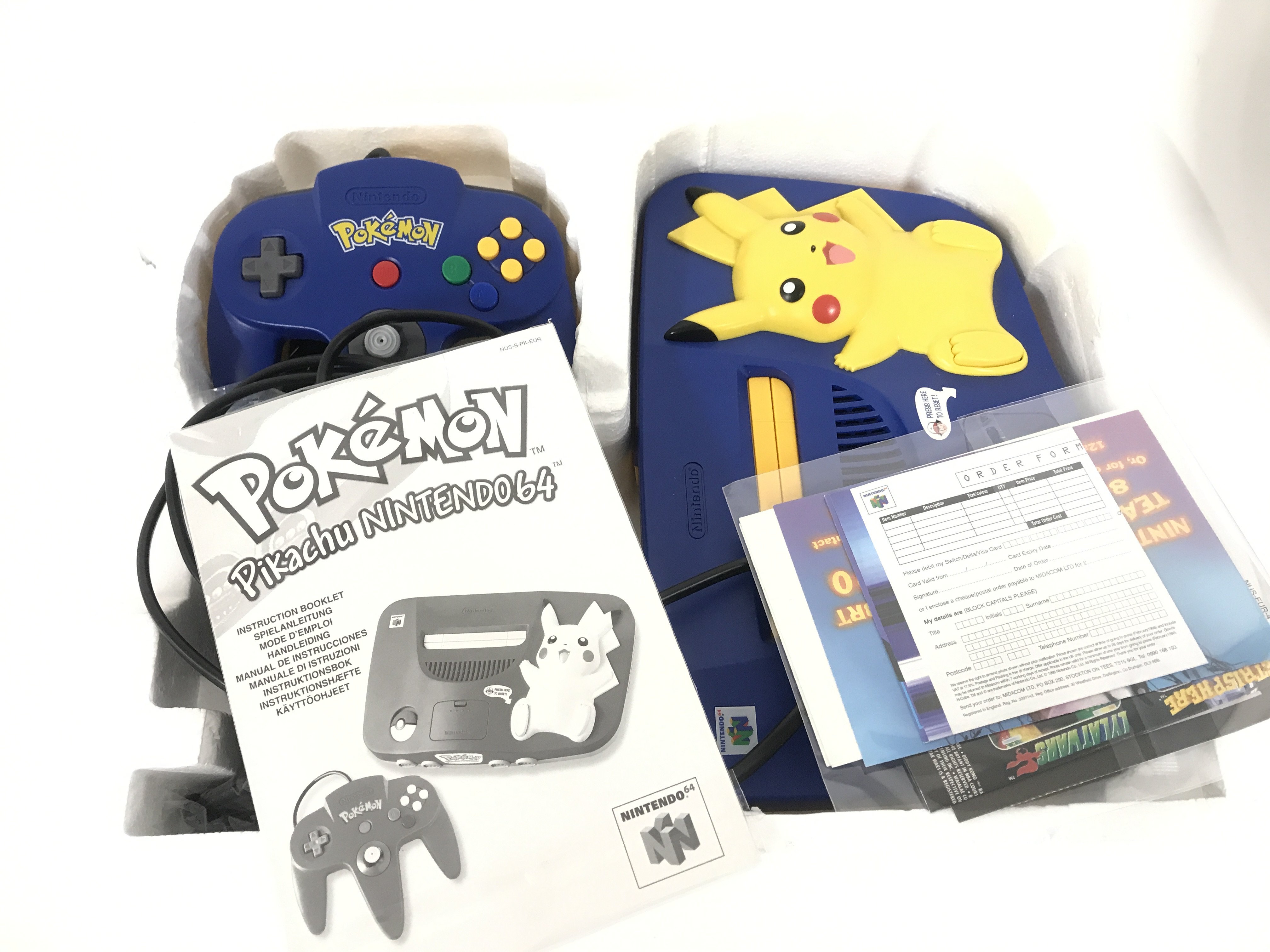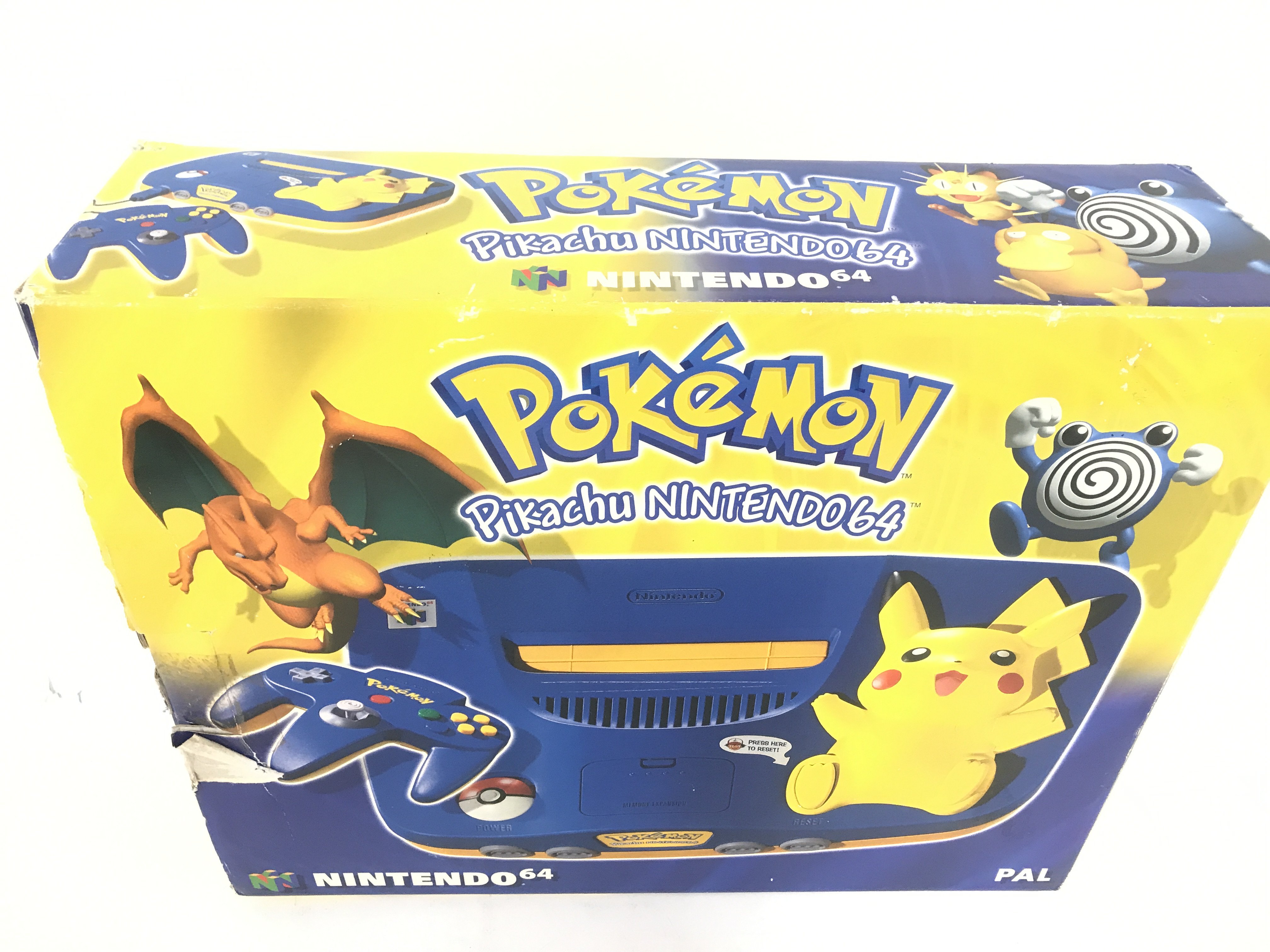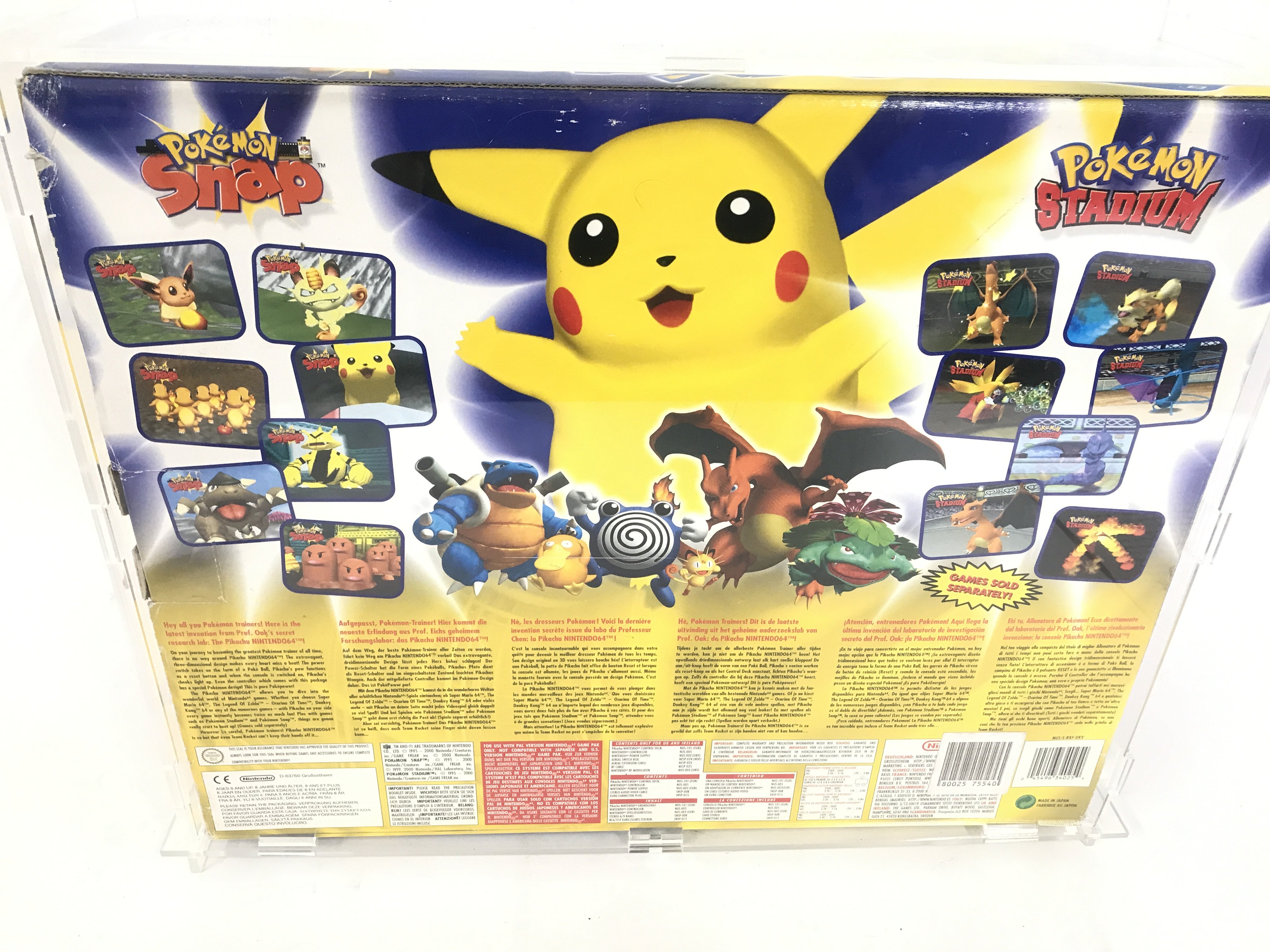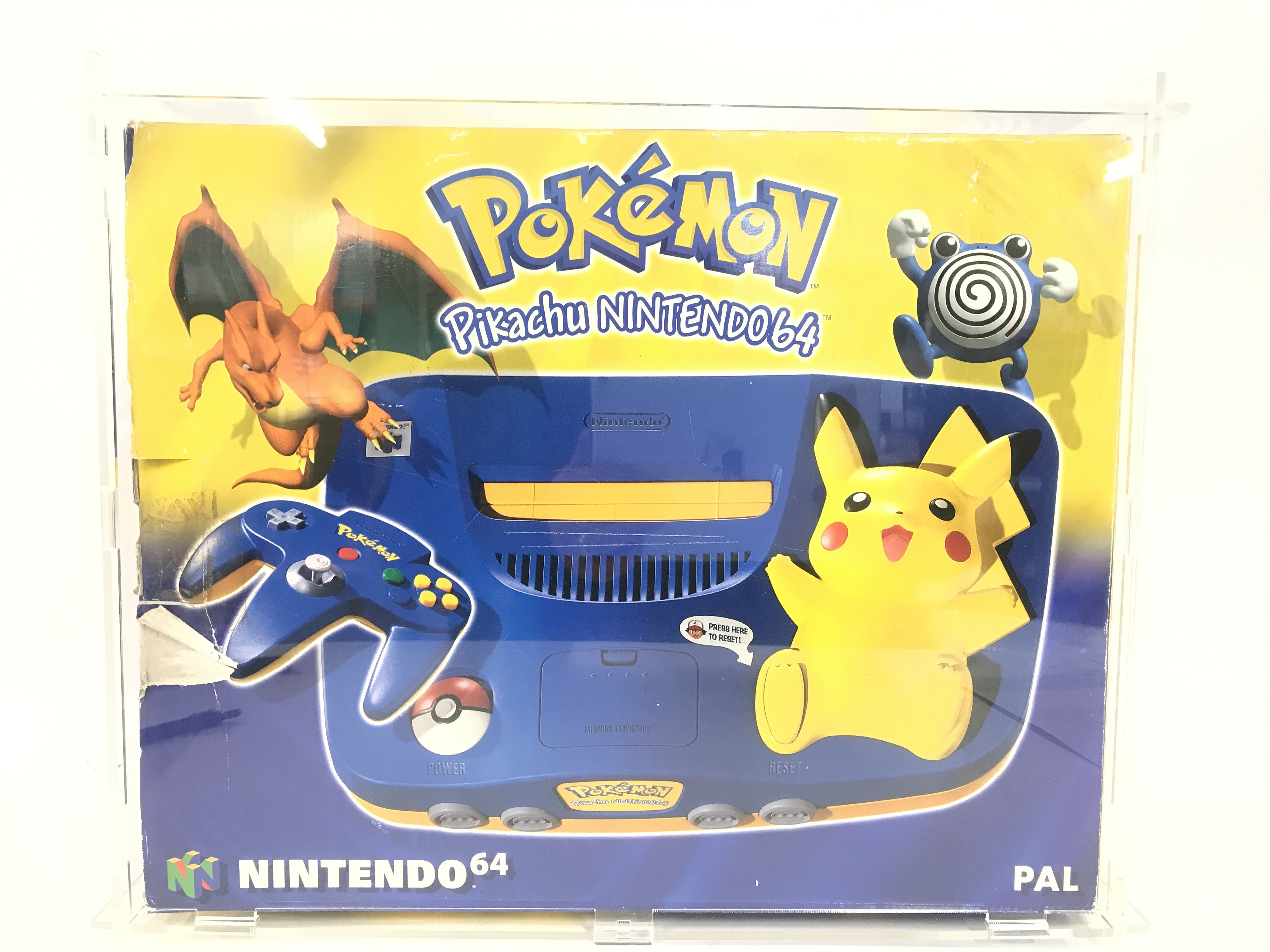 A Boxed Nintendo 64 Pokemon Pikachu Version. In A Acrylic Case.