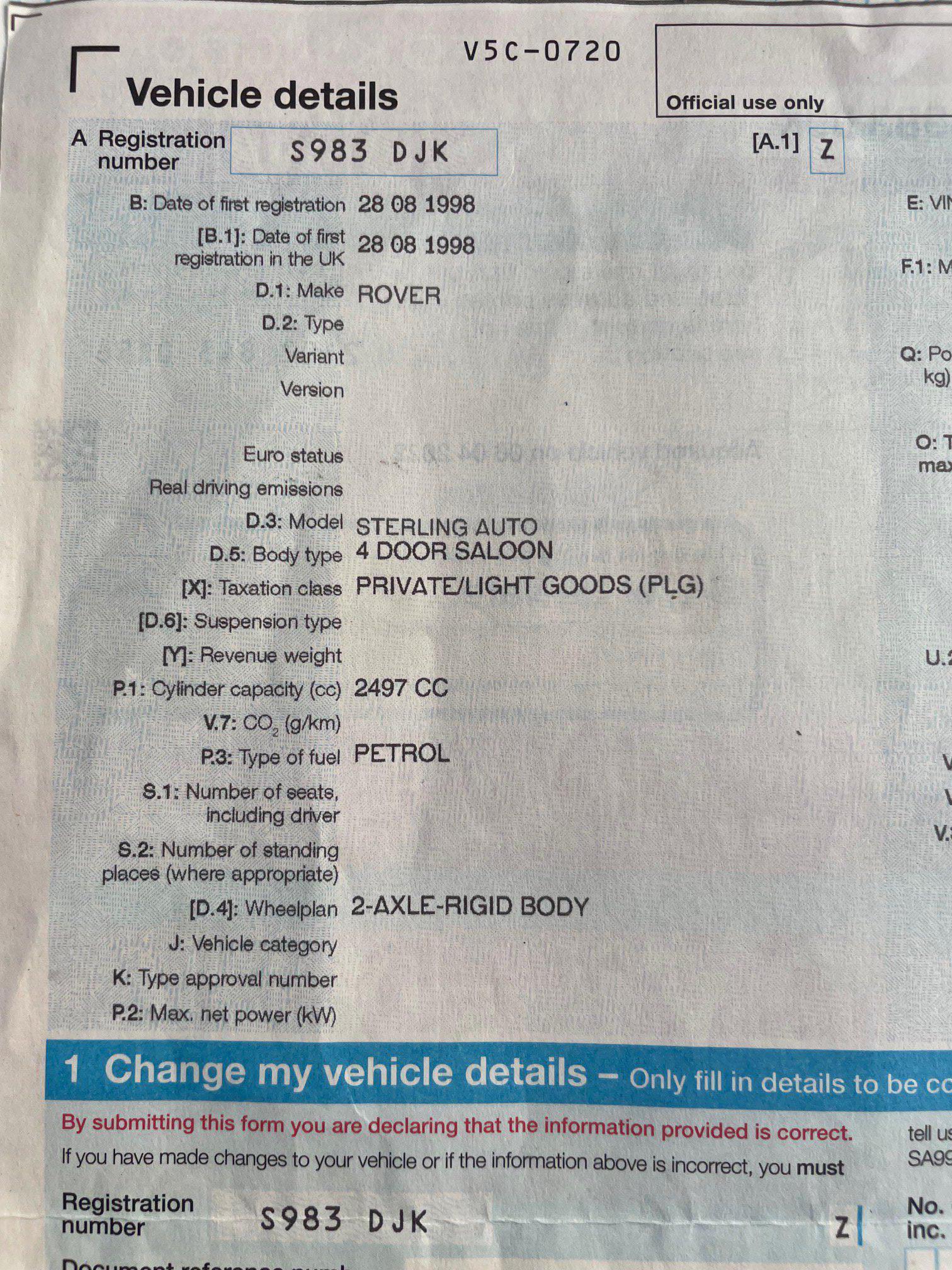 A Rover 4 door saloon petrol registration S983 DJK - 79700 miles on the clock. MOT till June