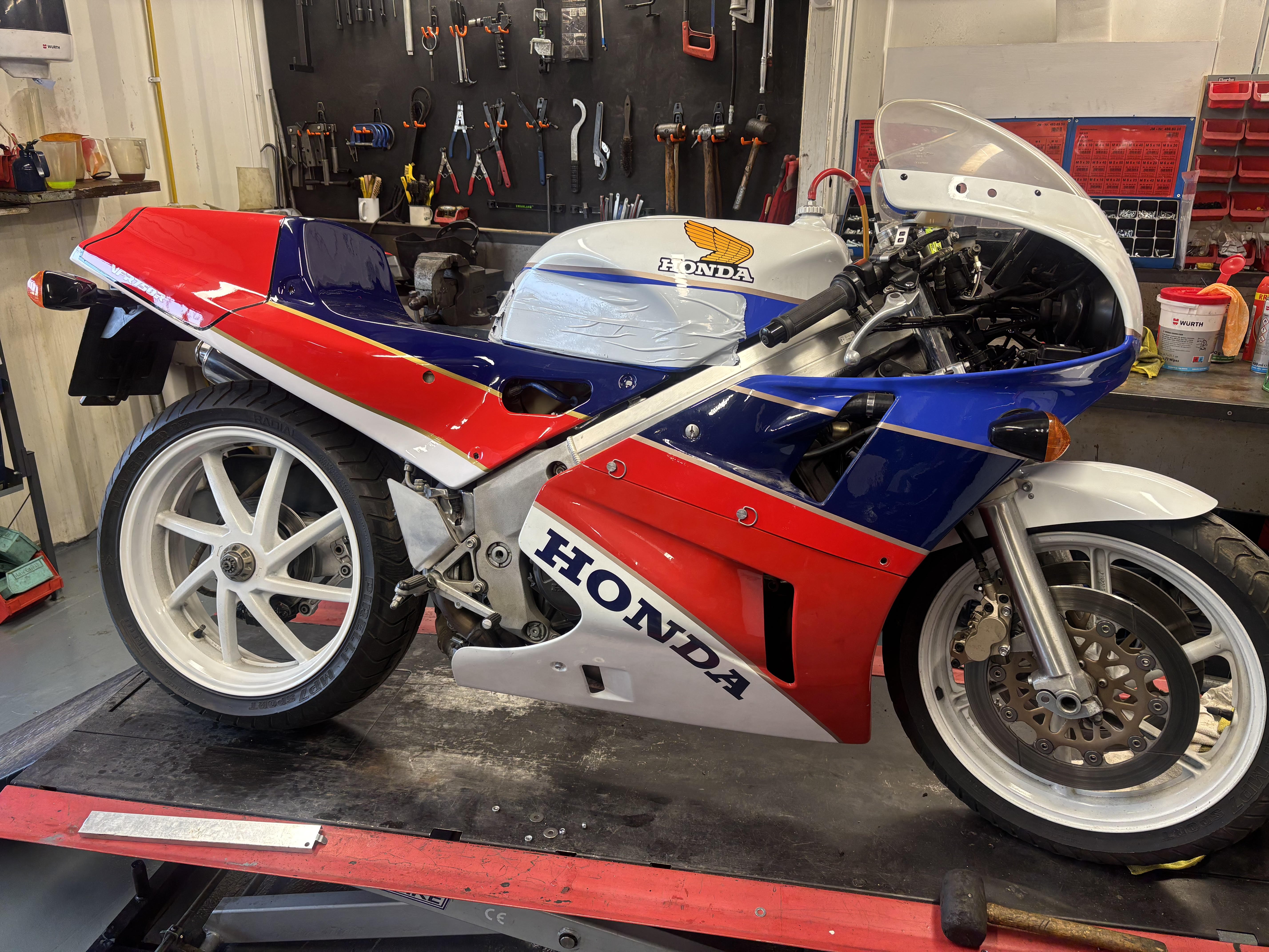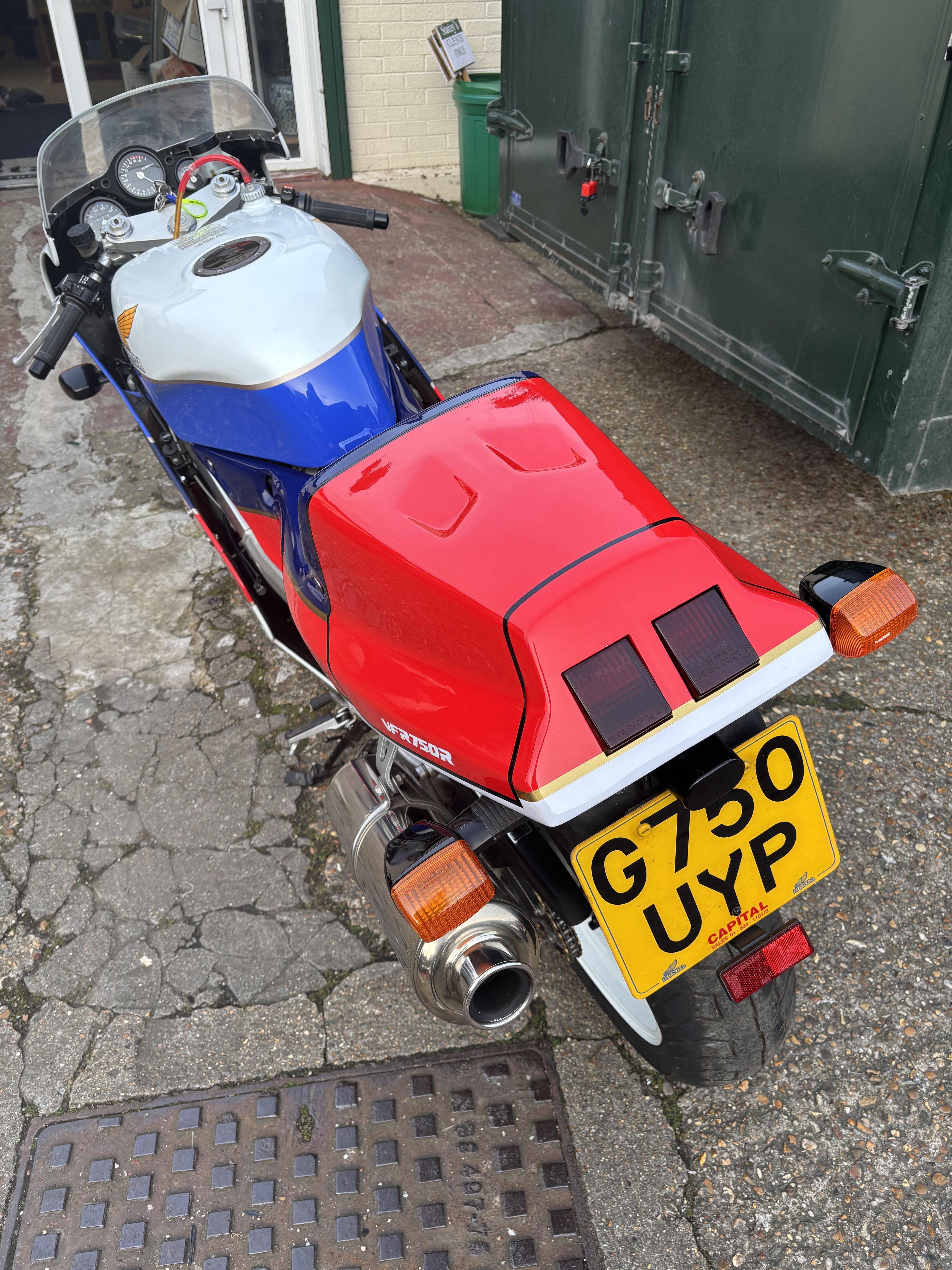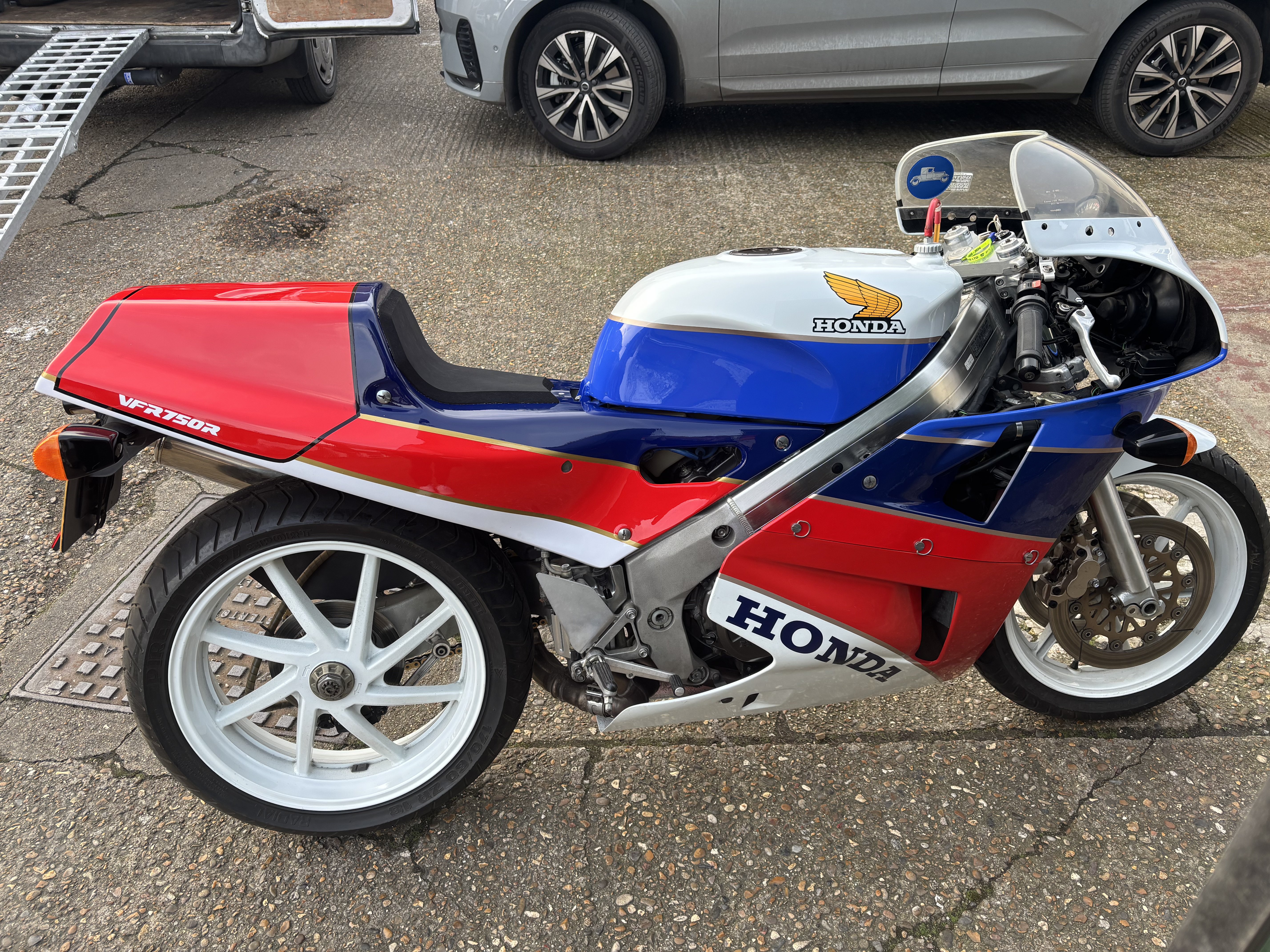 WITHDRAWN FROM SALE - G750UYPA 1989 Honda VFR750 RC30 - One of the modern era's few immediately collectible classics, the Honda VFR750R - better known as the 'RC30' - was created for just one reason: to win the World Superbike Championship, a feat it achieved in the nascent series' first two seasons of 1988 and '89. And while American Fred Merkel was bringing Honda its first two WSB crowns, Britain's Carl Fogarty used an RC30 to win the TT F1 World Championship in 1988 and '89, and the equivalent FIM Cup in 1990. No mere short circuit scratcher, the RC30 and its derivatives proved durable enough to win a hat-full of Endurance Classics too. That this latter requirement was also part of the design brief may be determined from the fact that a quick-release front fork and single-sided swinging arm - essential for speedy wheel changes - were part of an unrivalled specification that included a twin-spar alloy beam frame, 16-valve V4 engine with gear-driven cams, close-ratio six-speed gearbox and four-pot front brake callipers. Indeed, so good was the basic RC30 that well prepared privately entered examples were often able to give the works entries a run for their money. All of which did not come cheap: at the time of its launch in 1988 an RC30 cost £8,499, getting on for double the cost of other super-sports 750s. Despite the passage of time and progress of motorcycle technology, the RC30 remains a match for the latest generation of sports bikes but possesses an exclusivity that none of them can approach. "No other bike from the late-Eighties is lusted after like the RC30," reckoned Bike magazine, and few would disagree. Delivered new in the UK - CHECK LOGBOOK! , this particular RC30 has been owned by the current vendor since 2017 and has recorded only CHECK BIKE. The Honda has been well stored and recently recommissioned after being off the road since 1994. Accompanying paperwork consists of V5C registration document, 2 Keys and MOT.