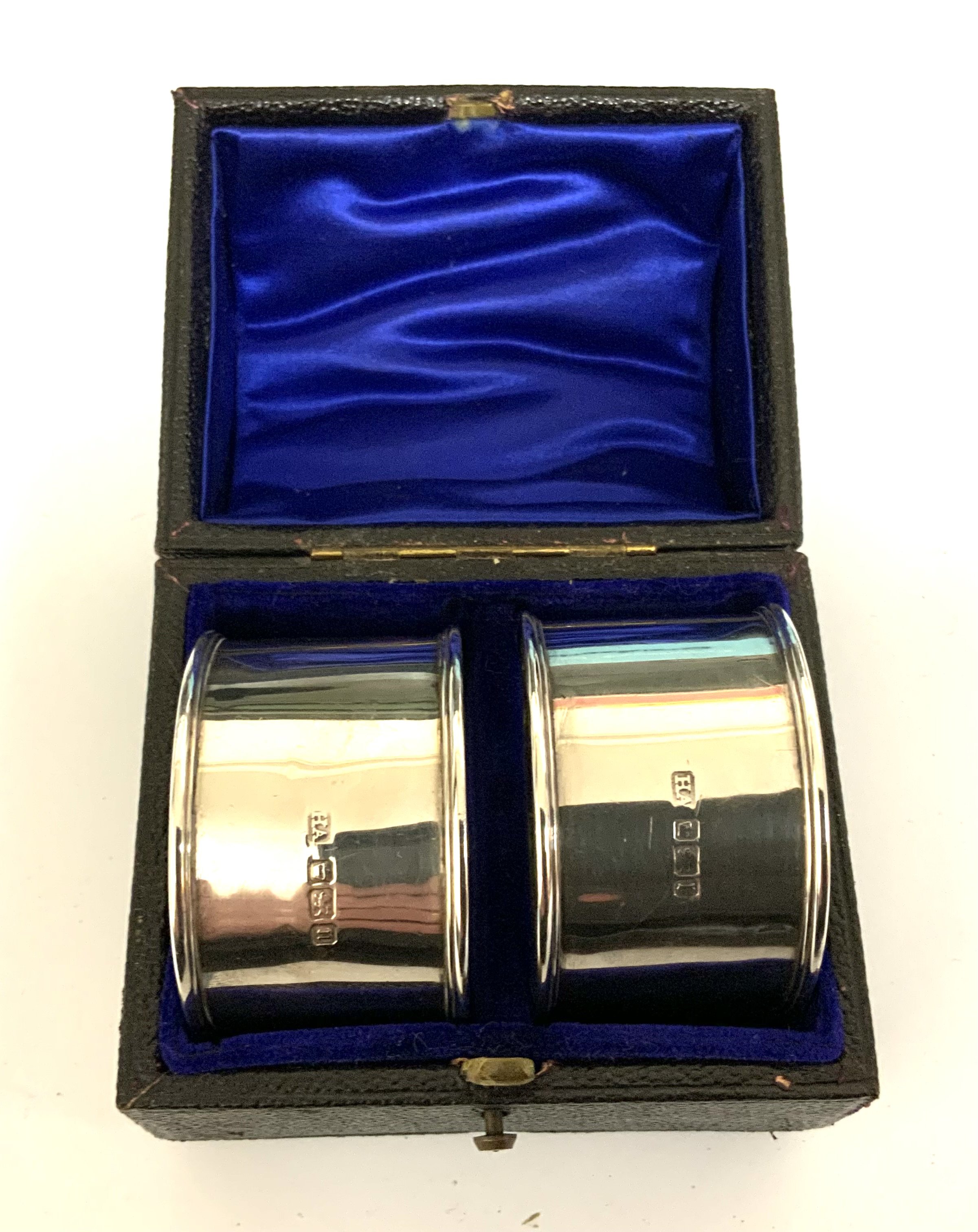 A pair of cased hallmarked silver napkin rings, Marks for Sheffield 1905, Atkin brothers. (A)