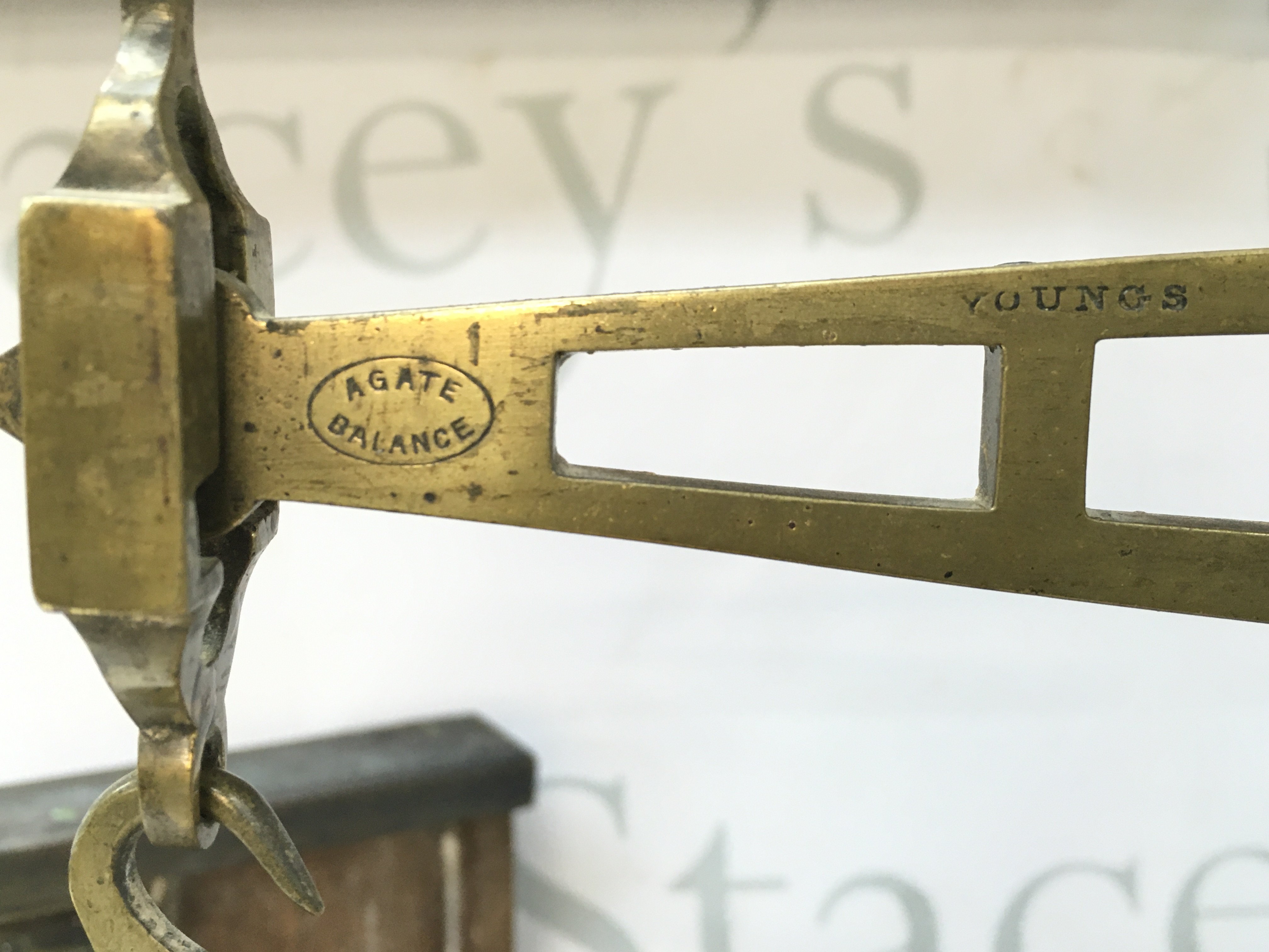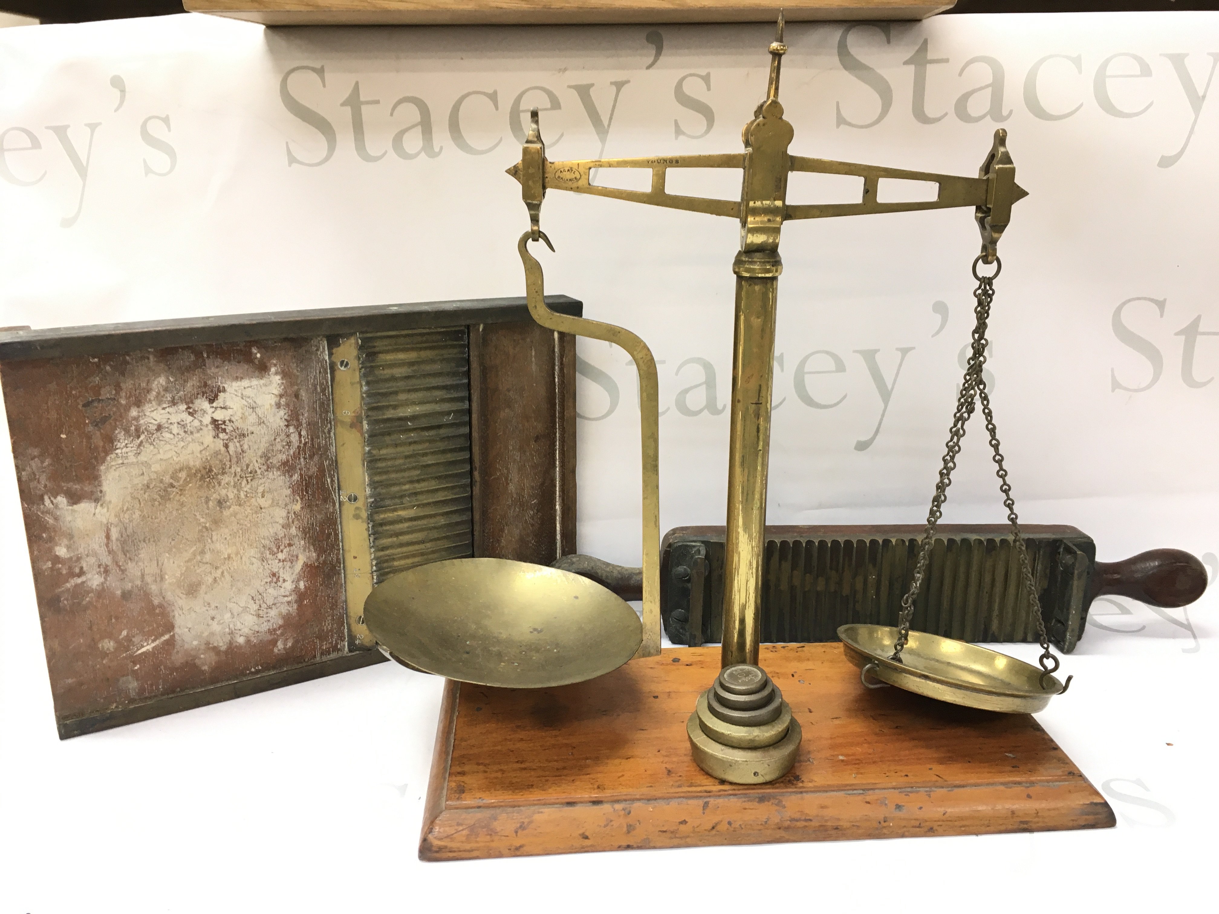 A pill making slab and a set of Youngs Agate balance beam scales. Young & Marlow Kewbridge. Postage category C