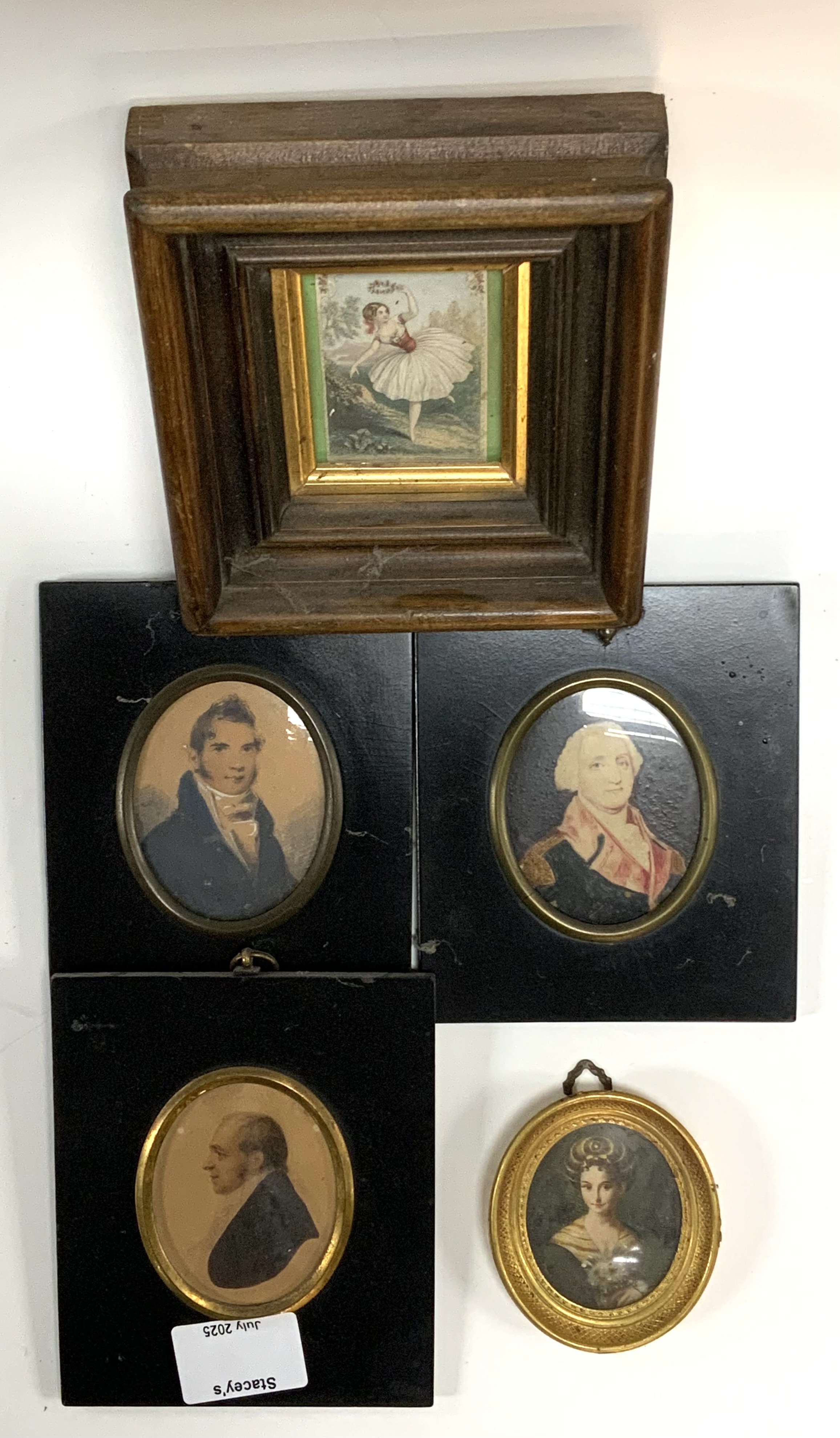 5 good framed miniatures. (B)