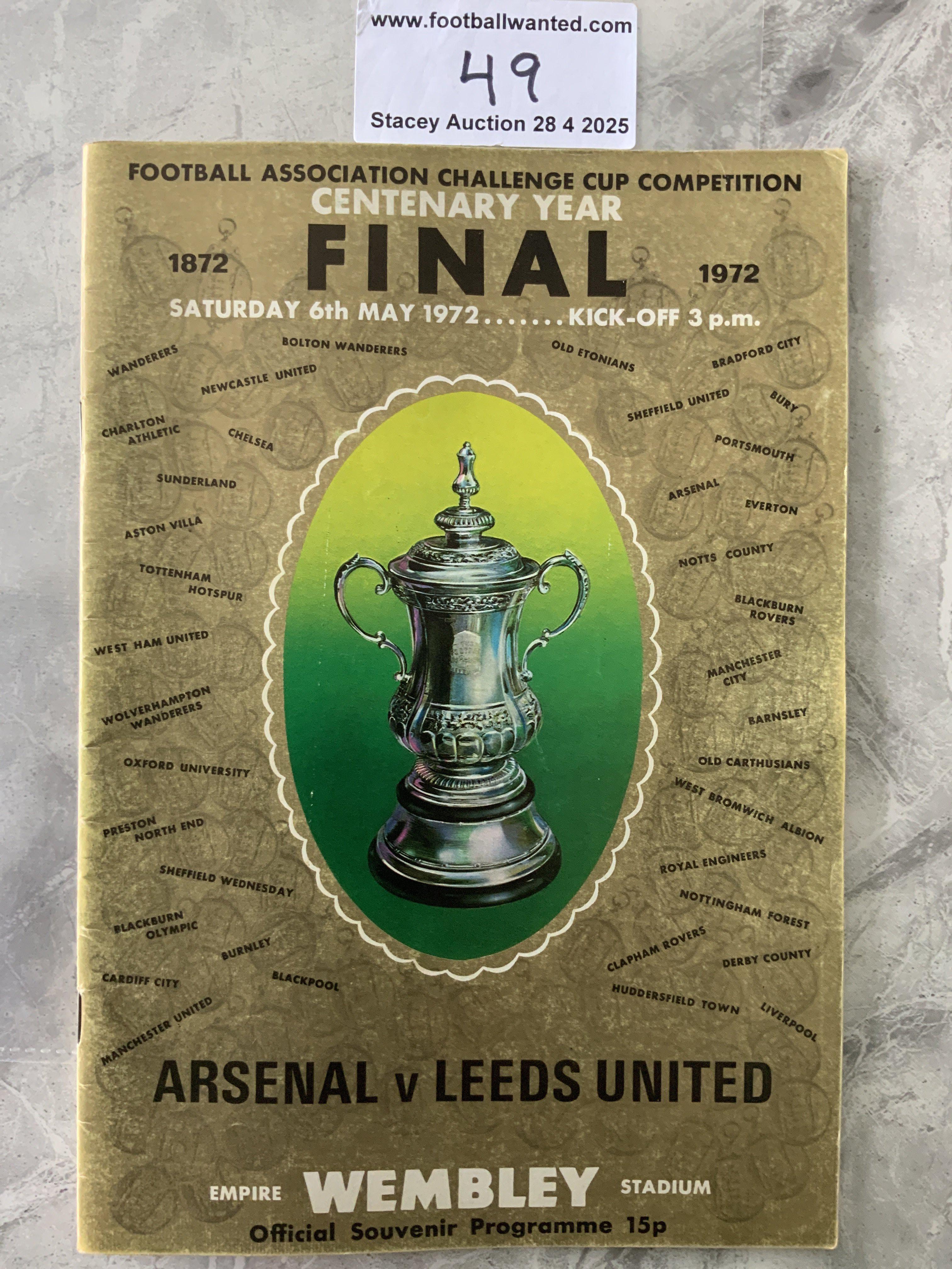 1972 FA Cup Final Leeds United Signed Football Programme: Colour squad picture inside is signed by 11 Leeds players including Charlton Reaney and Bremner. Genuine autographs a little scruffy but programme is excellent.