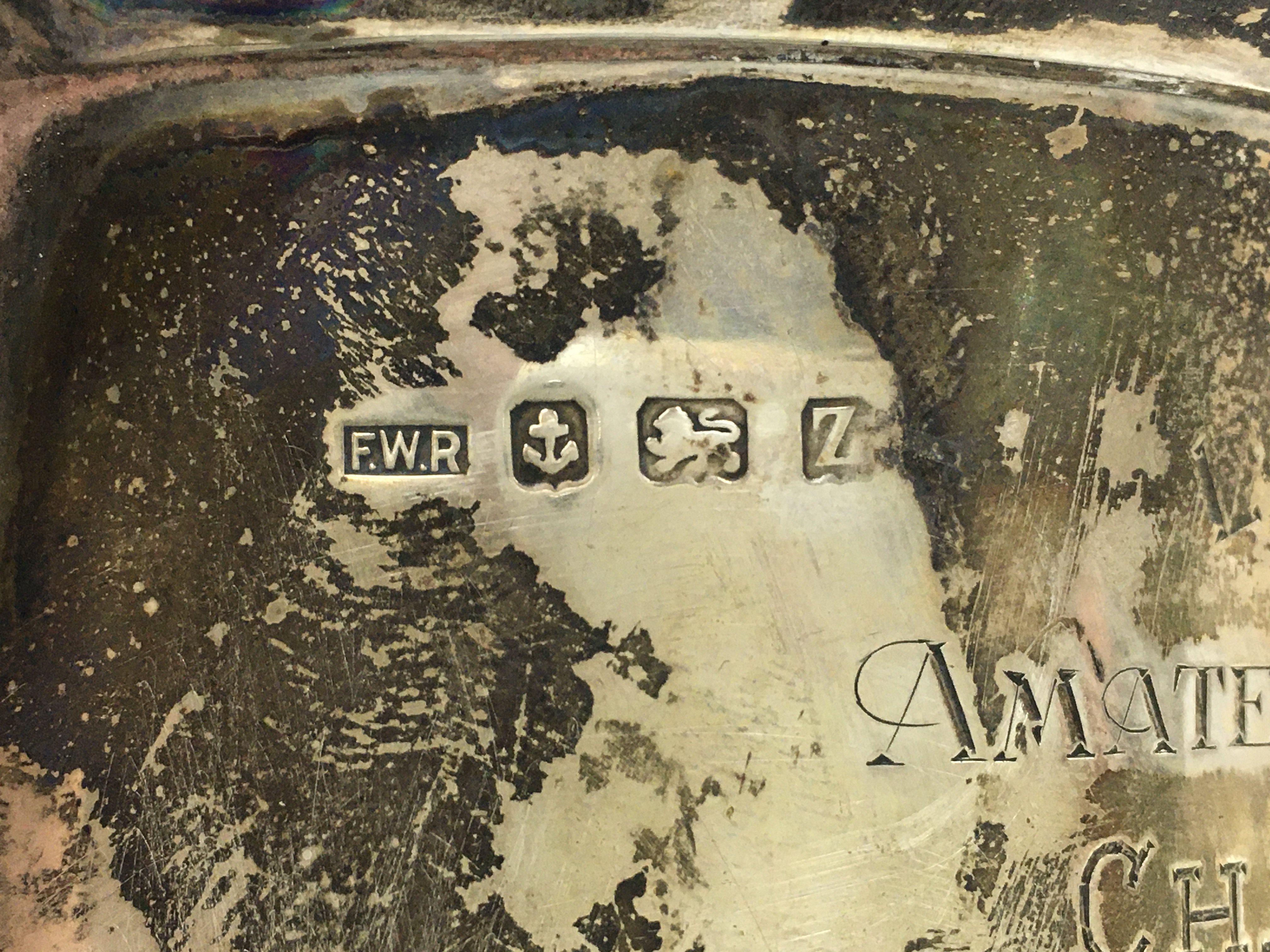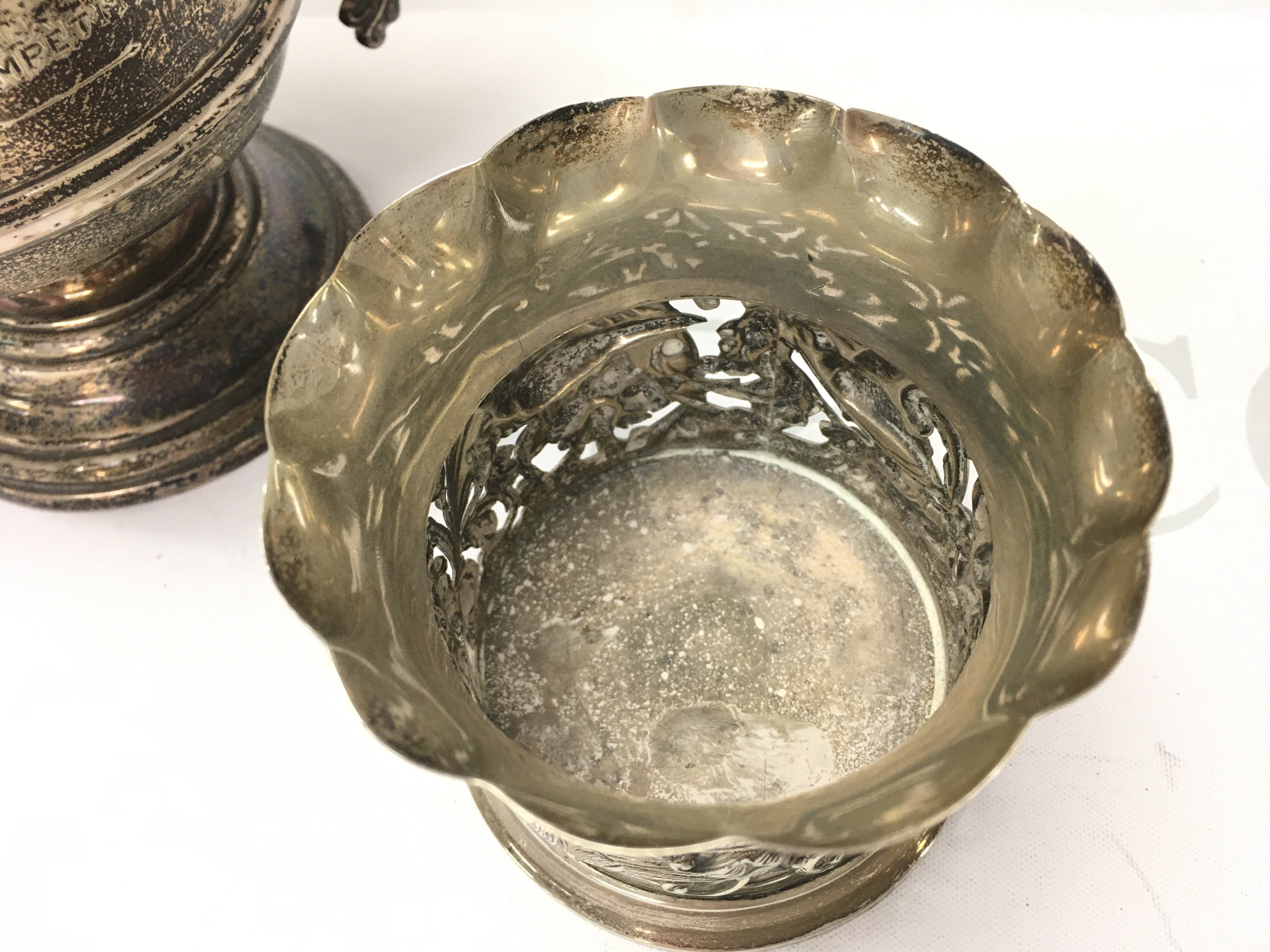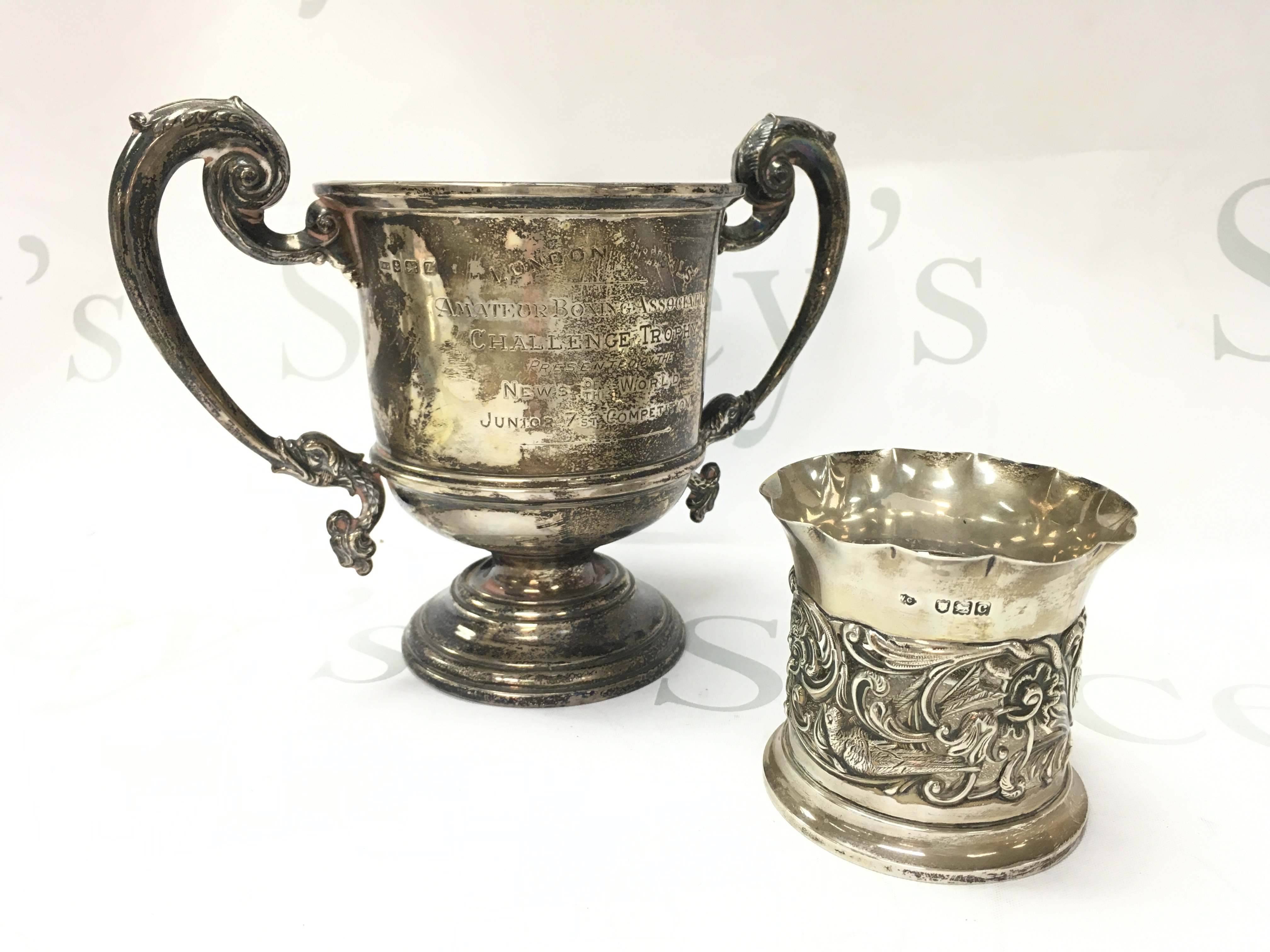 Silver hallmarked trophy and a Silver Embossed Birds & Foliage Vase / Beaker. Postage category B