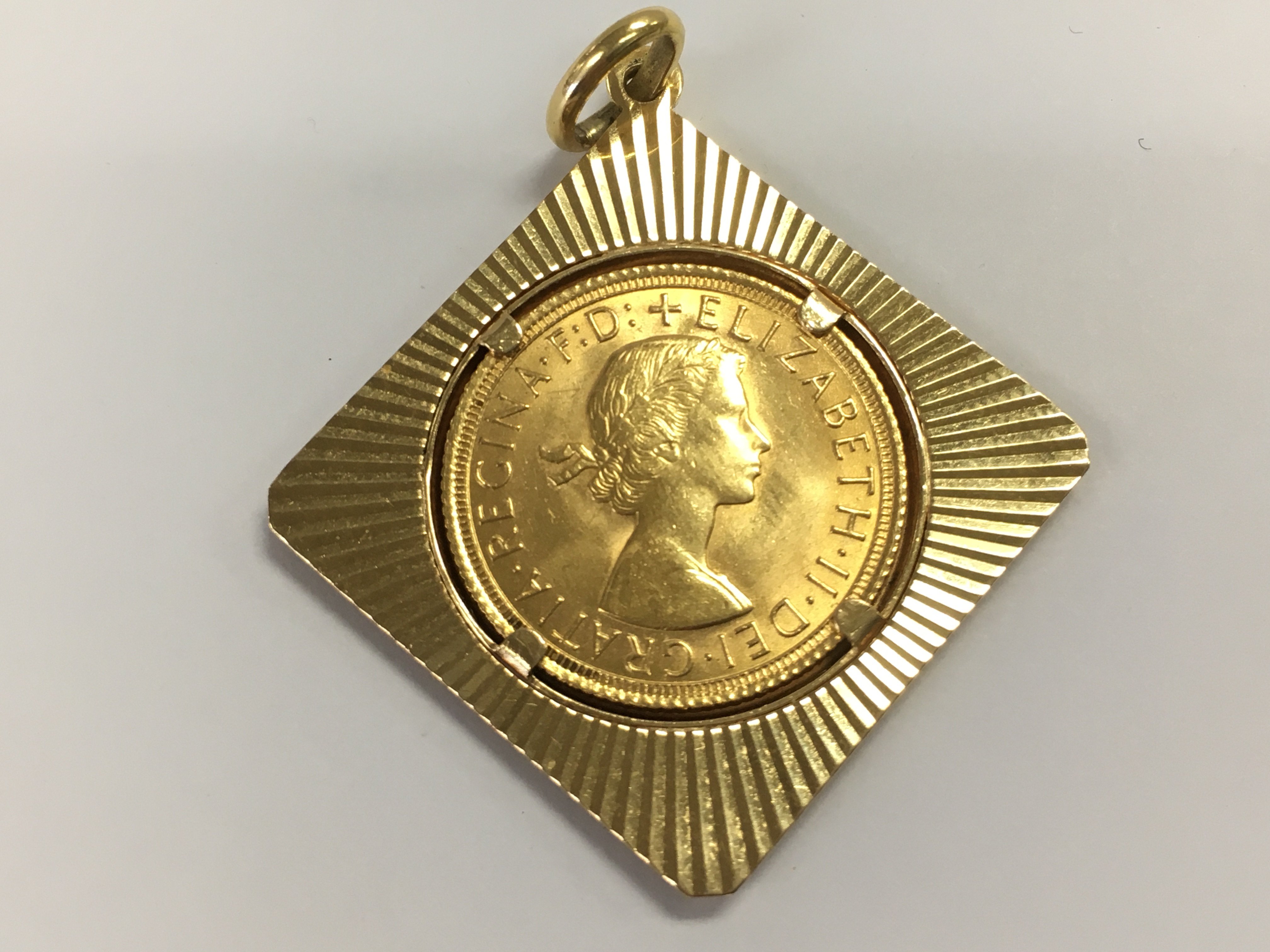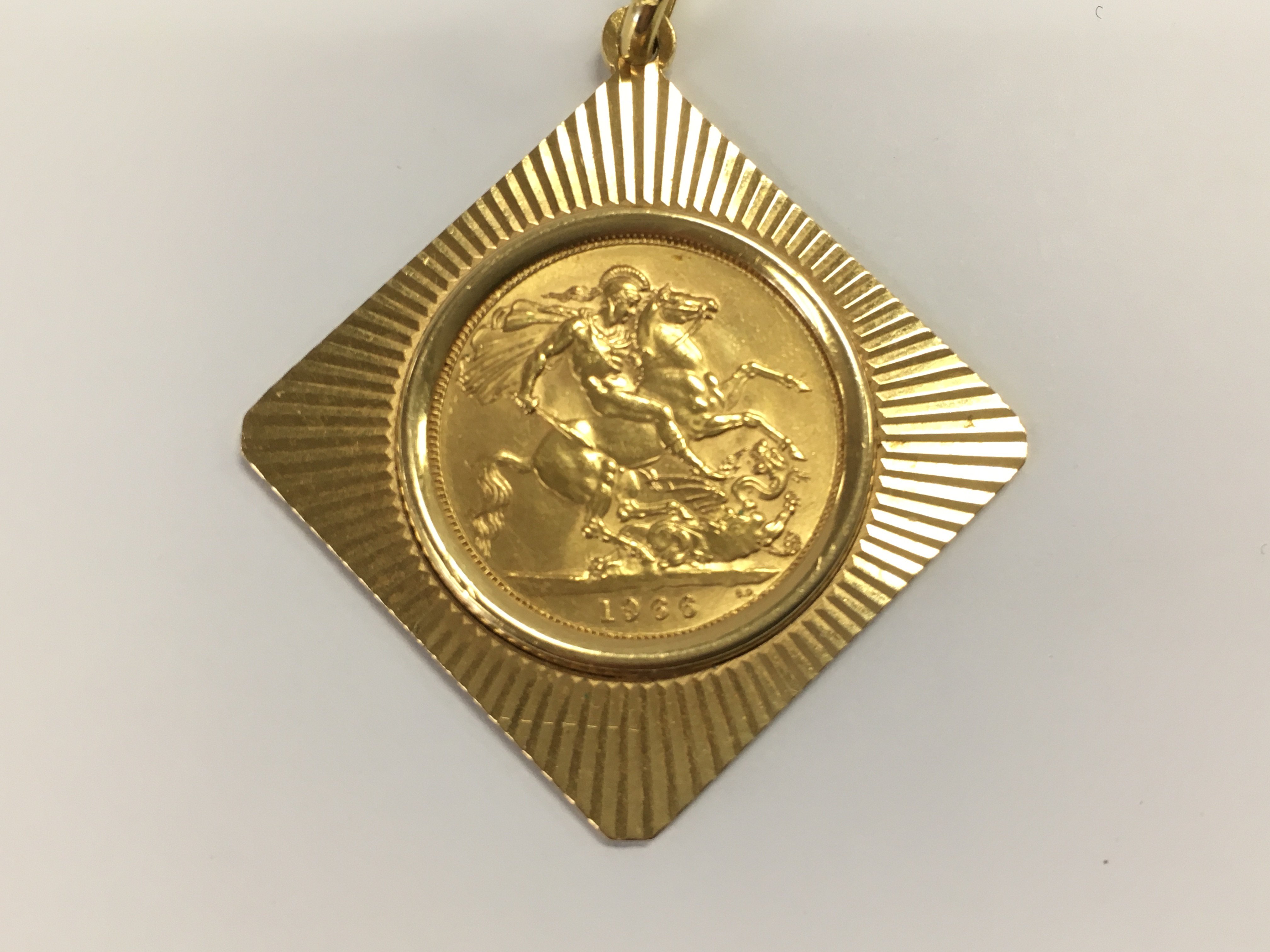 A 1966 sovereign in pendant. 13.50gPostage A