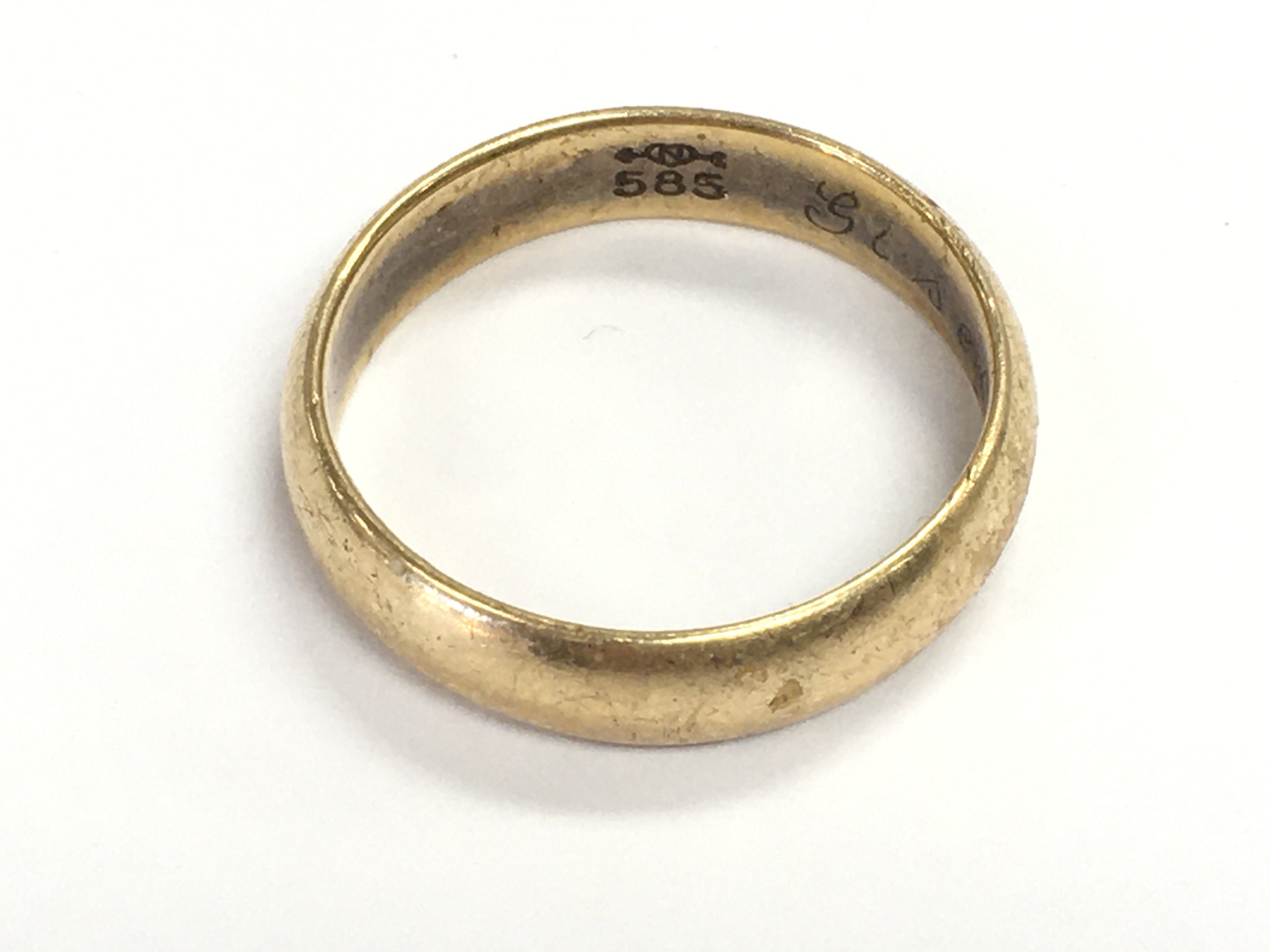 A 14ct gold wedding band. Size P 1/2 and 4.54gPostage A