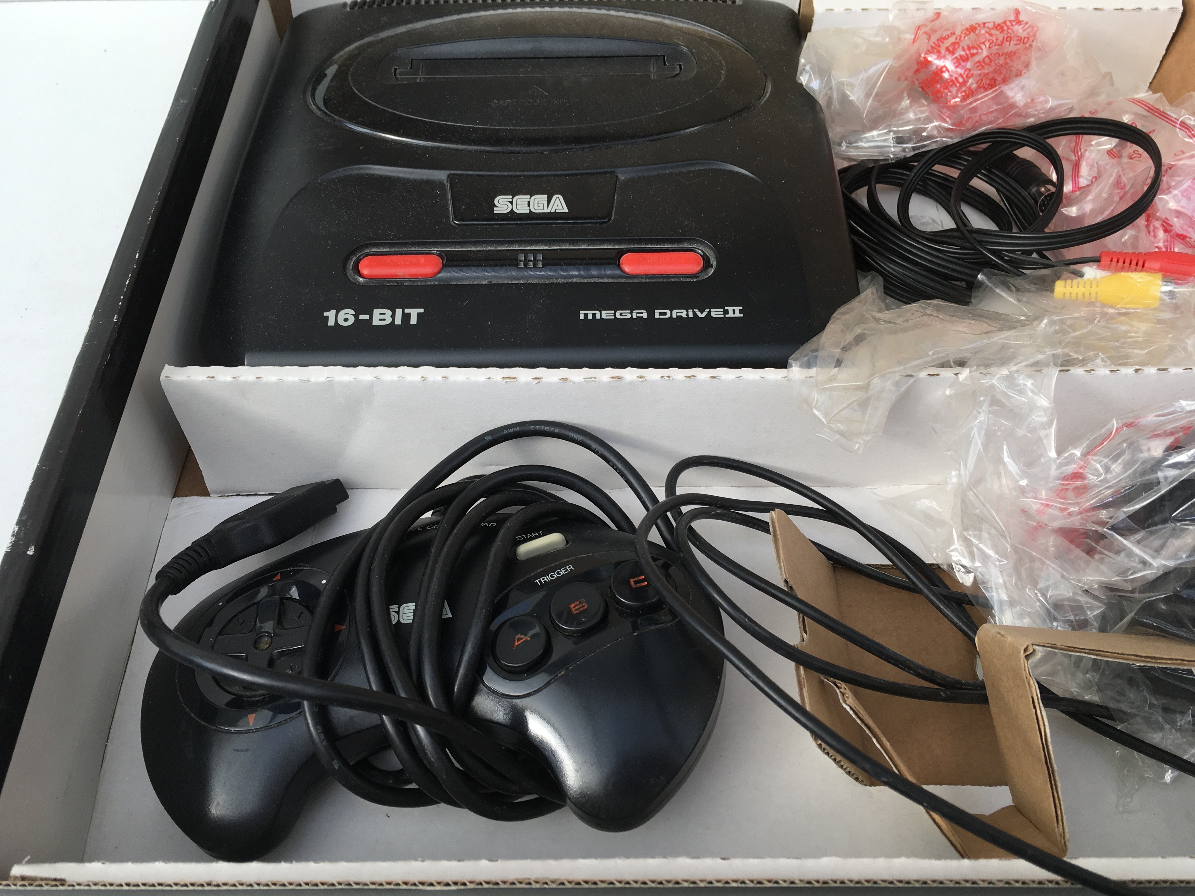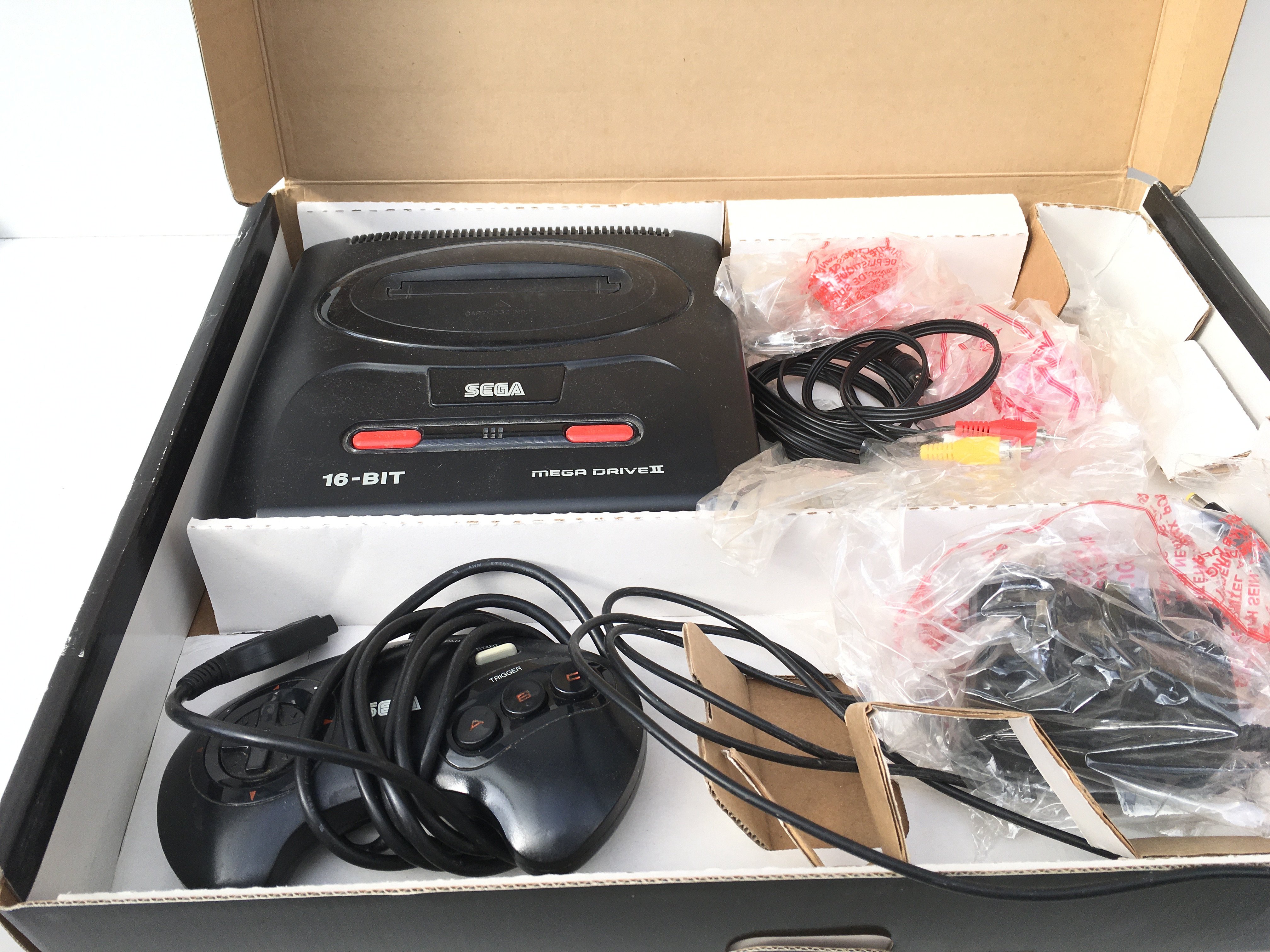 A boxed SEGA Mega Drive II. 16 bit video game console. Includes power supply. Controller and cables. No reserve
