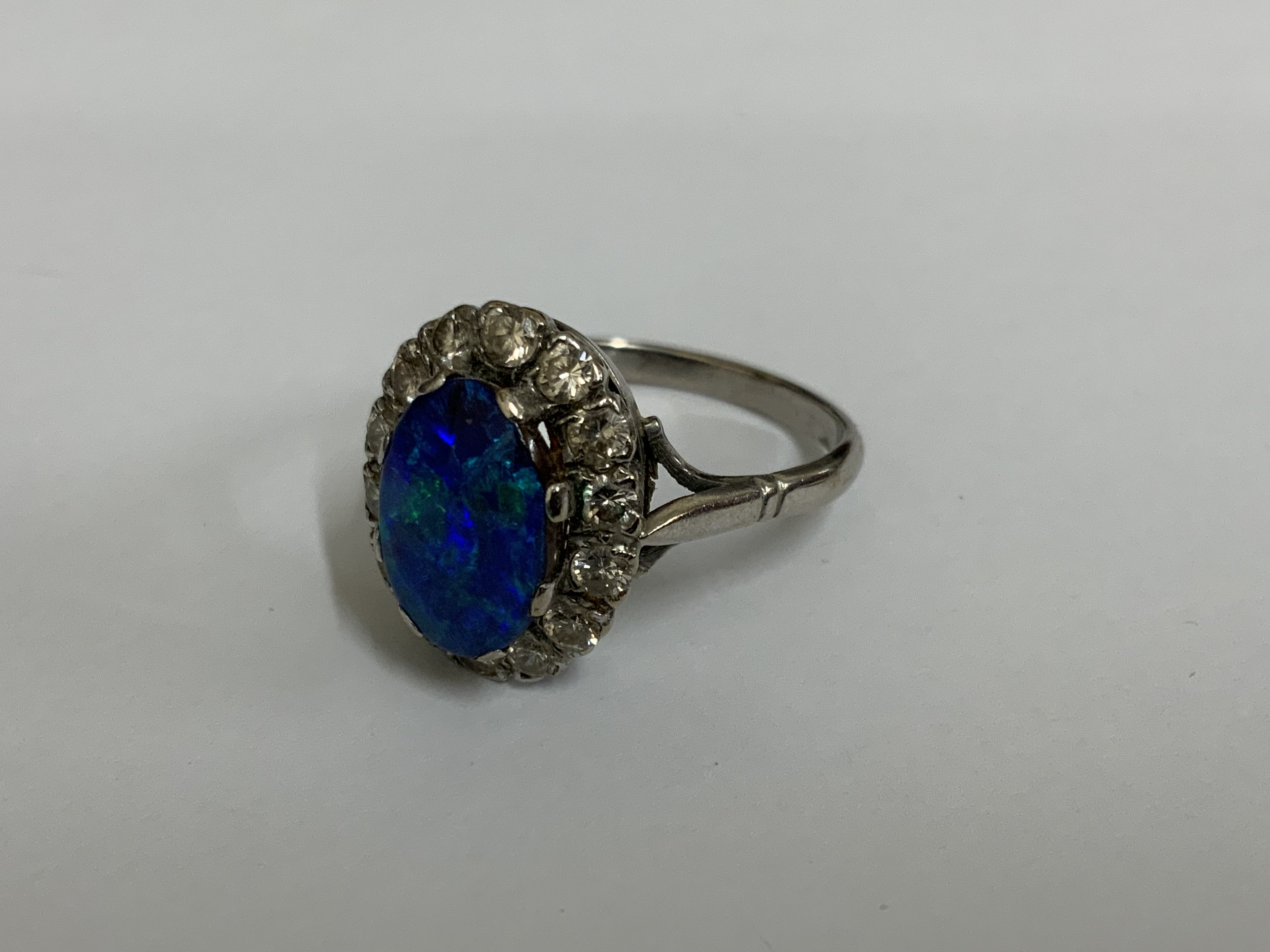 An 18ct white gold Opal and Diamond ring. Q.5