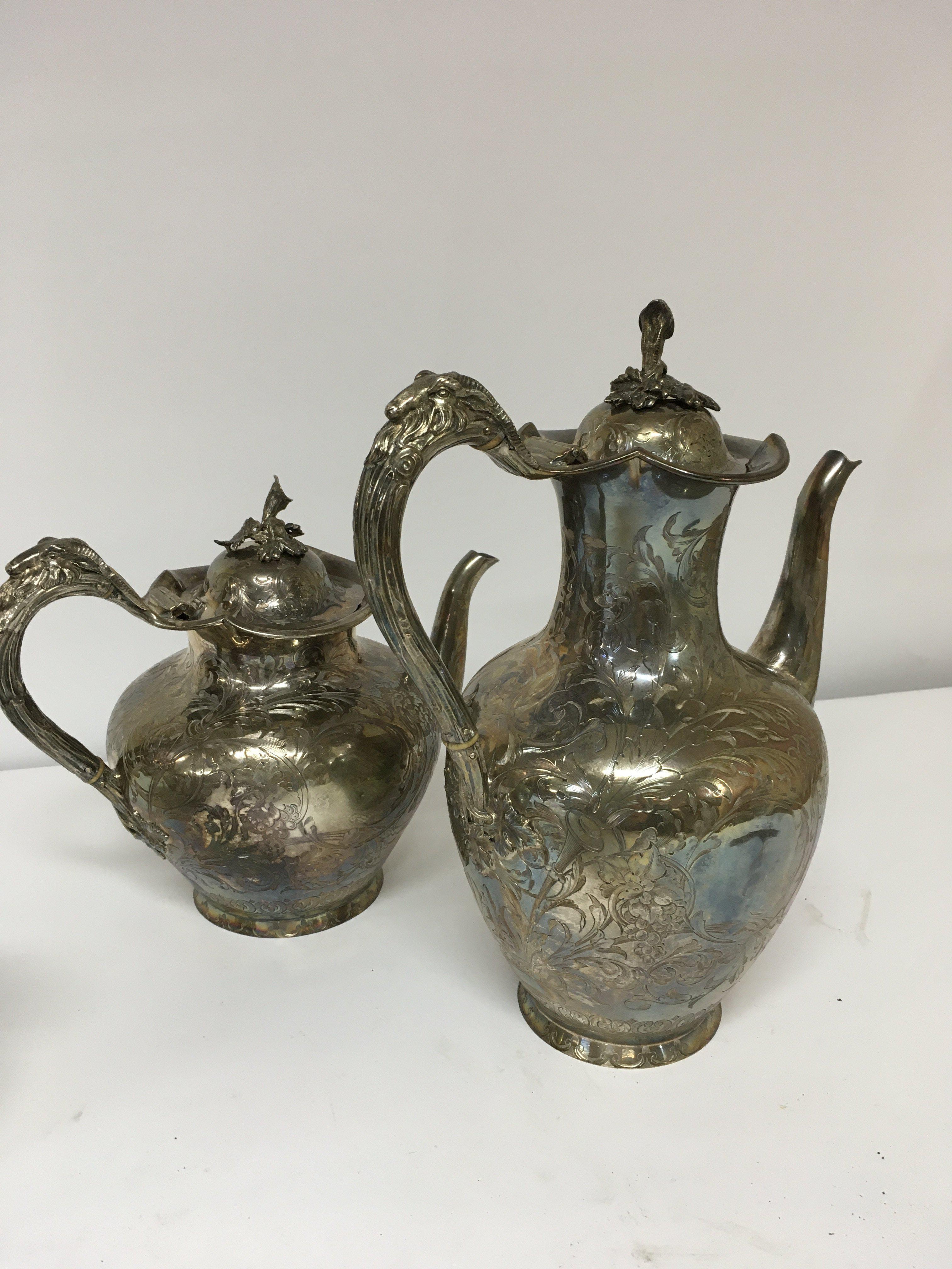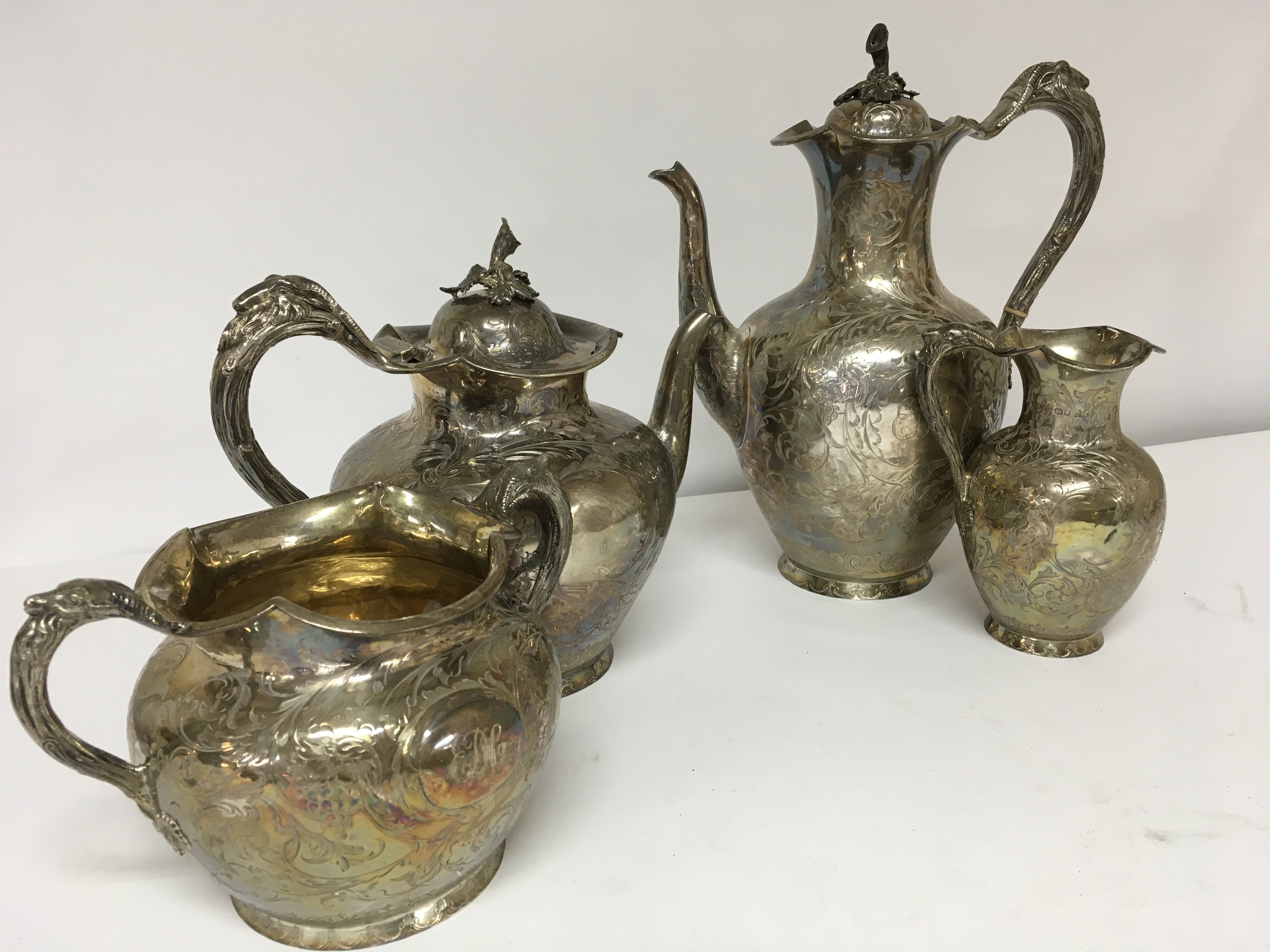 A Victorian four piece silver tea set comprising teapot coffee pot milk jug and sugar bowl 1.955 kg