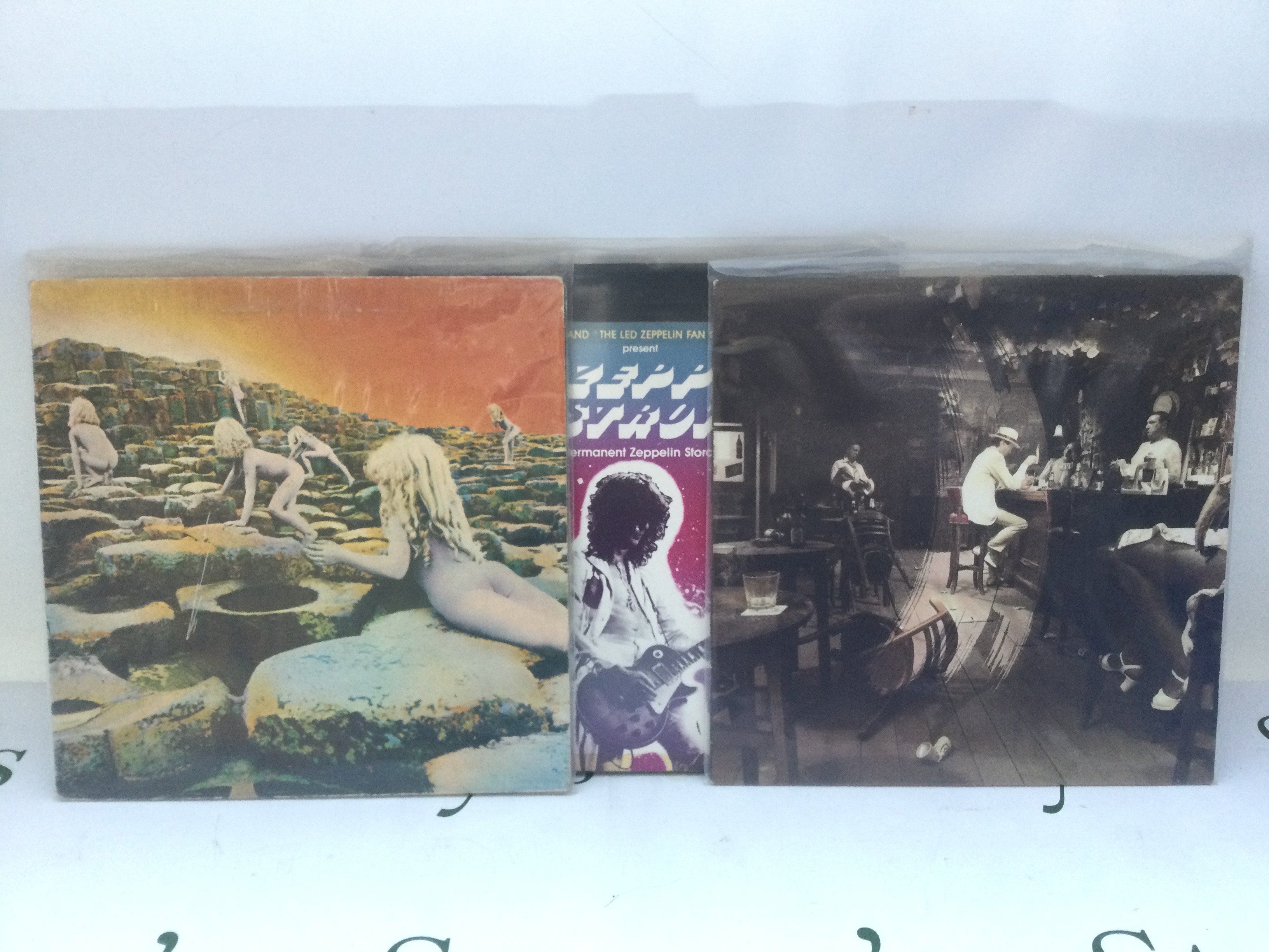 Three Led Zeppelin LPs comprising 'Houses Of The Holy', 'In Through The Out Door' and one other.