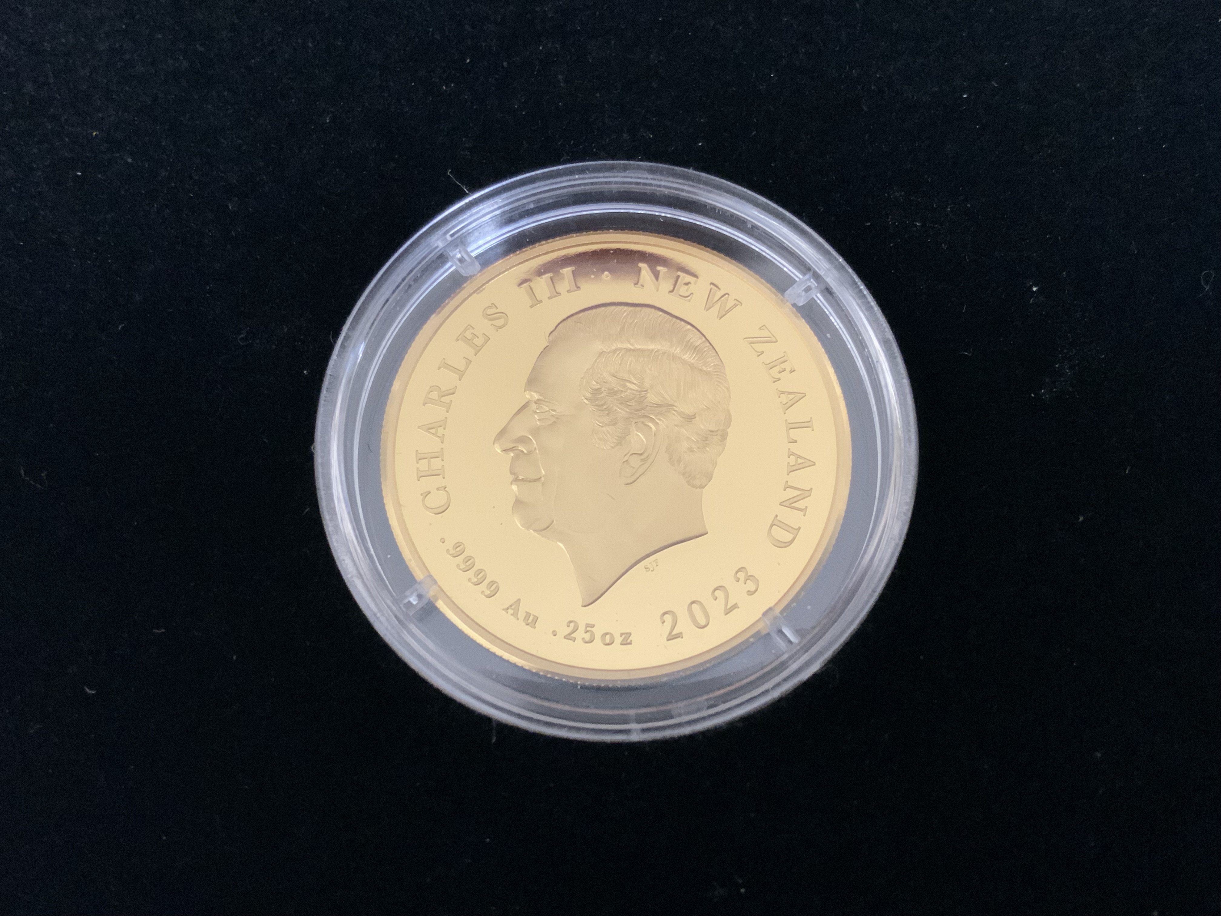 A Charles III New Zealand Reserve bank issue 2 Dollar 0.9999 gold 1/4oz coin. (A)