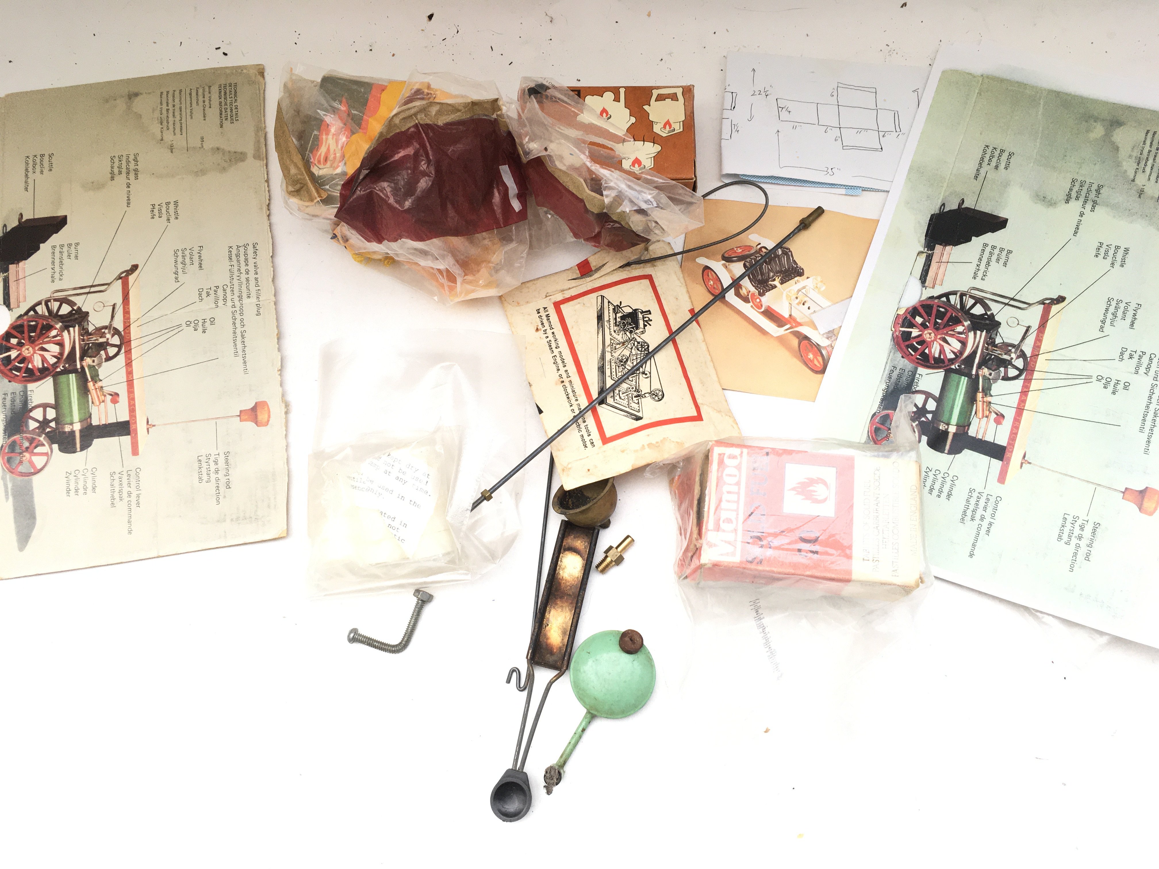 A Collection of Mamod Spares. Fuel. Packaging and Illustrations.(2).