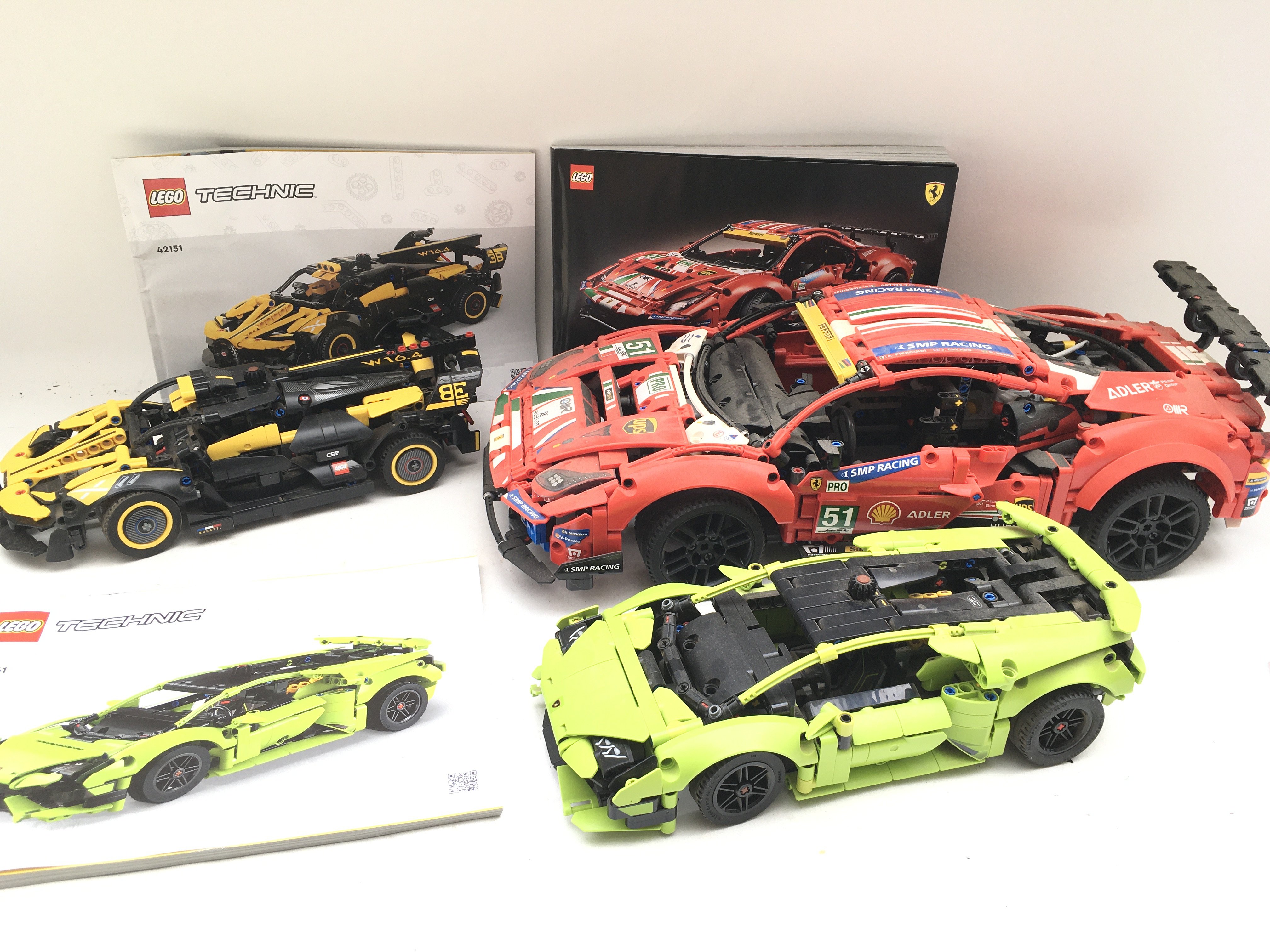 3 Lego Technic Vehicles. A Lamborghini Huracan #42161. A Bugatti Bolide #42151 And A Ferrari 488 GTE #42125. With Manuals. No Reserve.