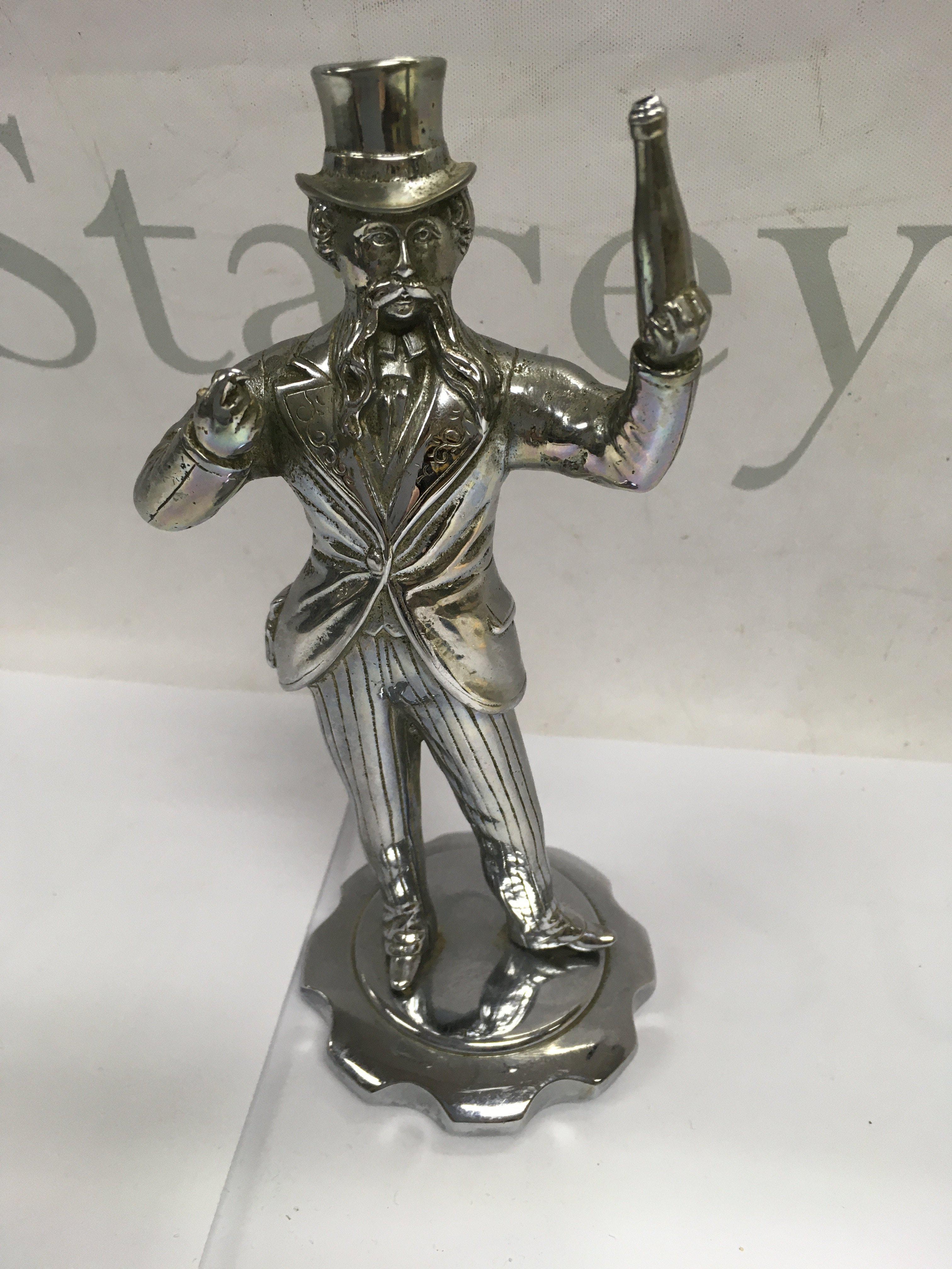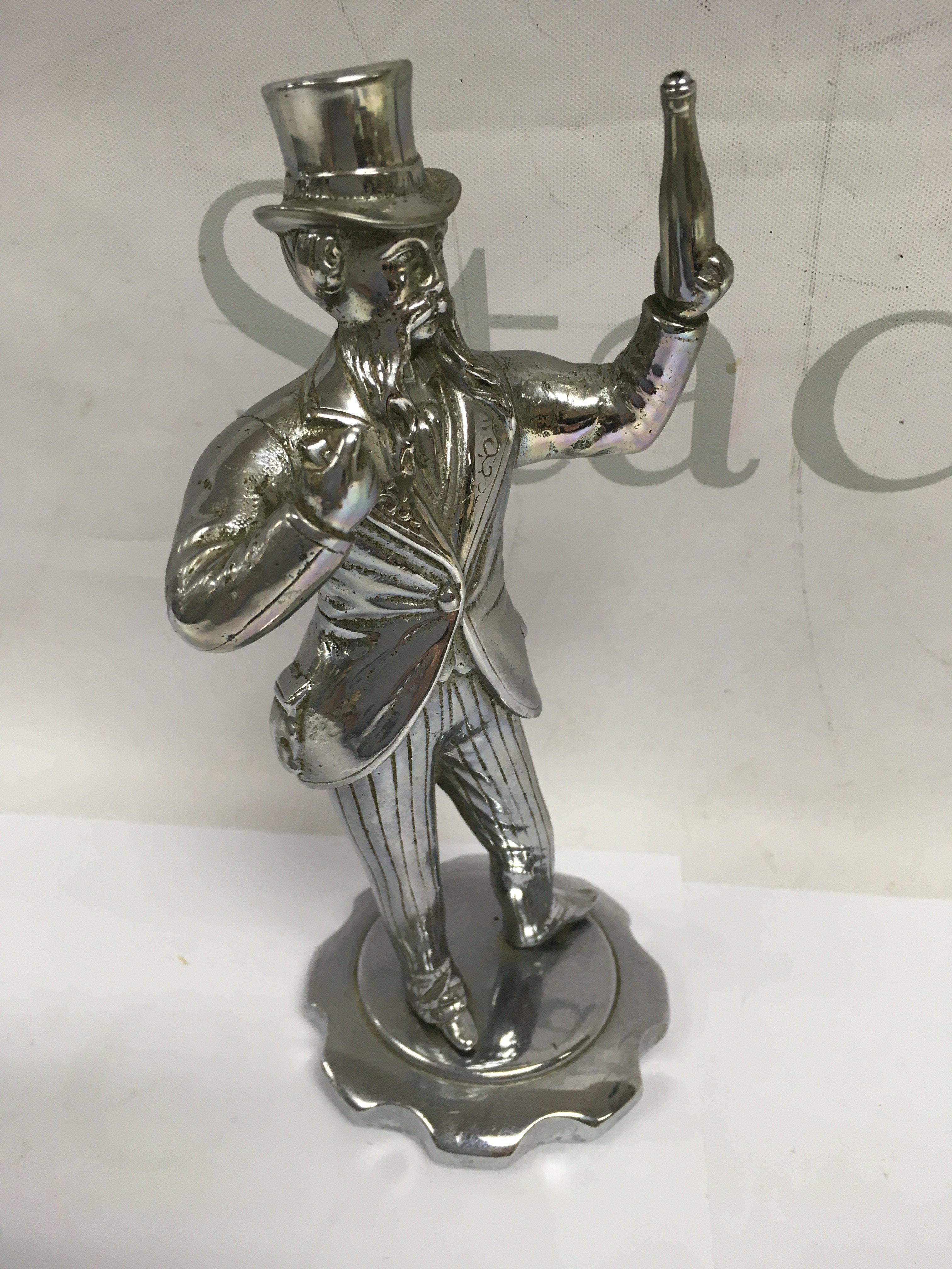 A car Mascot in the form of a Victorian gentlemen Holding a bottle. 19 cm NO RESERVE