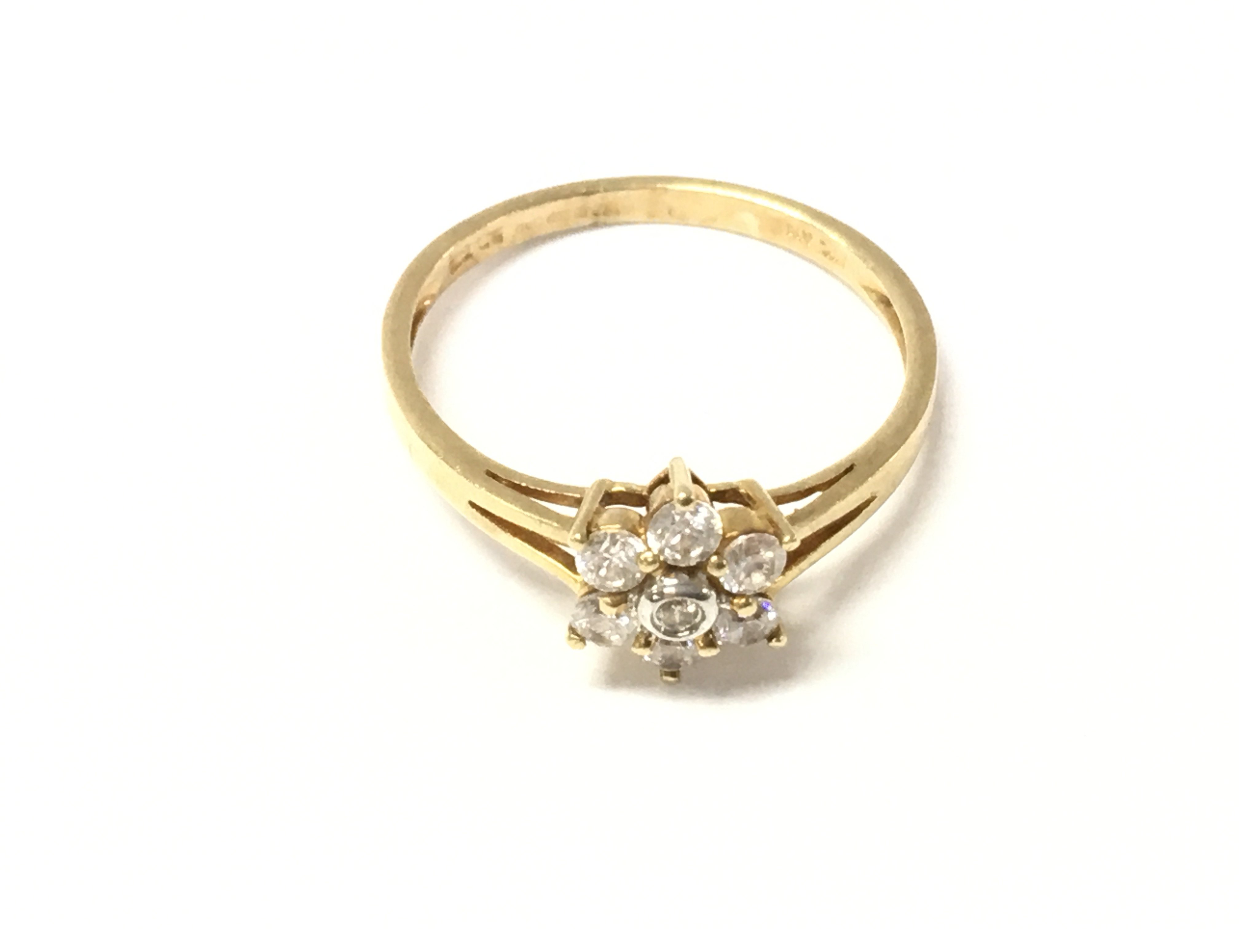 A 14ct gold diamond cluster ring. Size P 1/2 and 2.11g