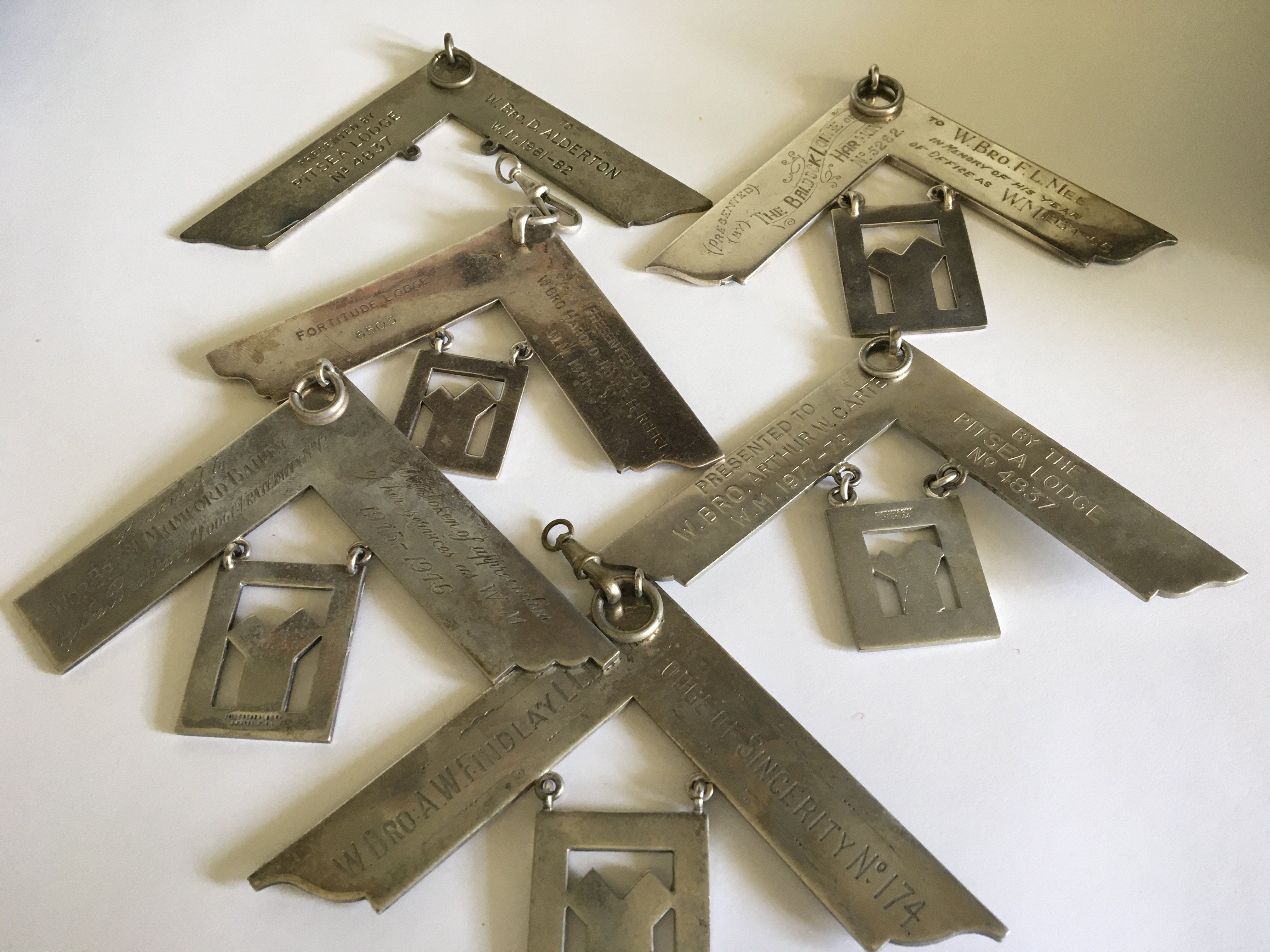 A collection of Masonic Craft officers Collar Jewels most with loge inscriptions 1945 onwards. (6)