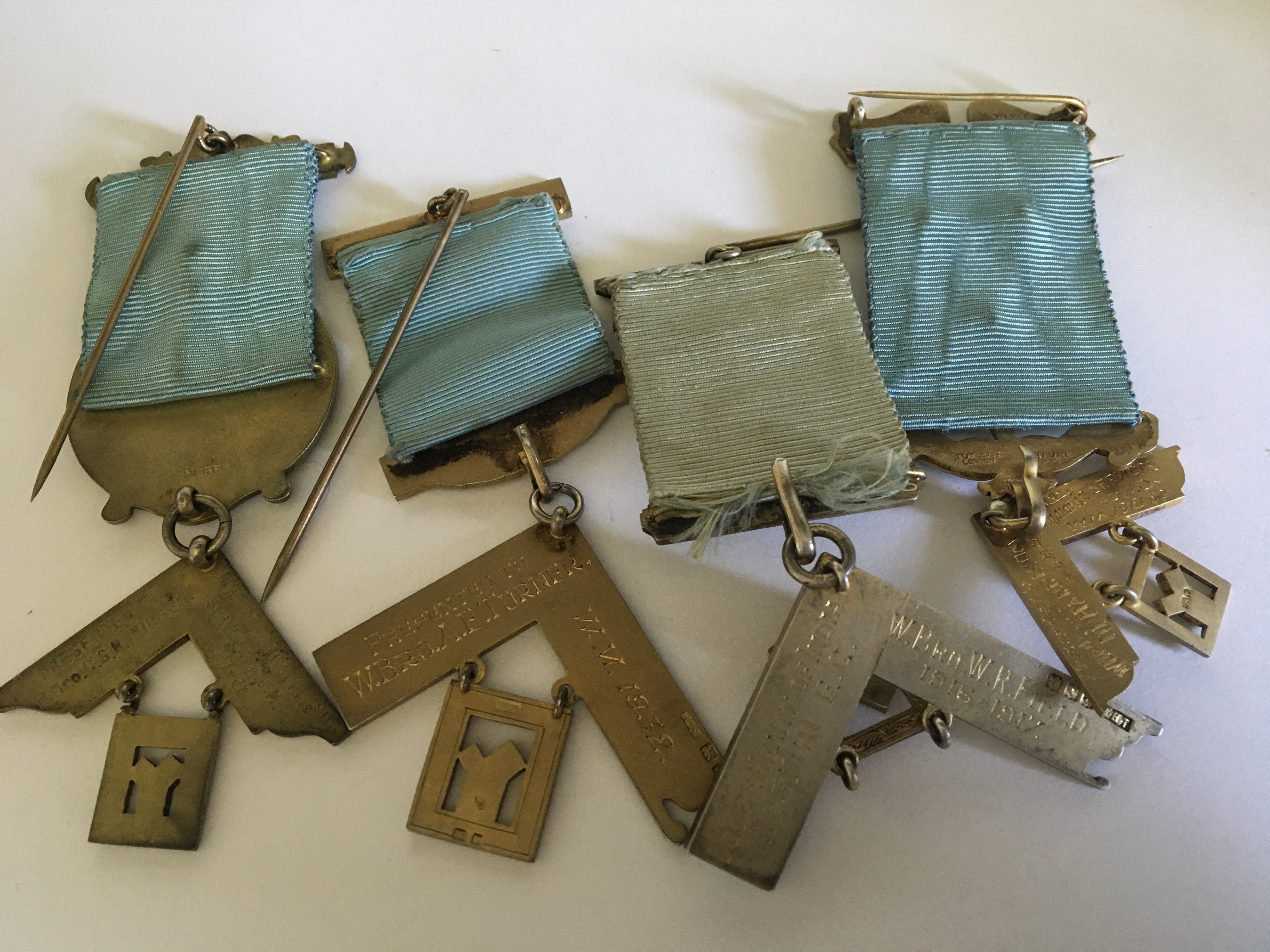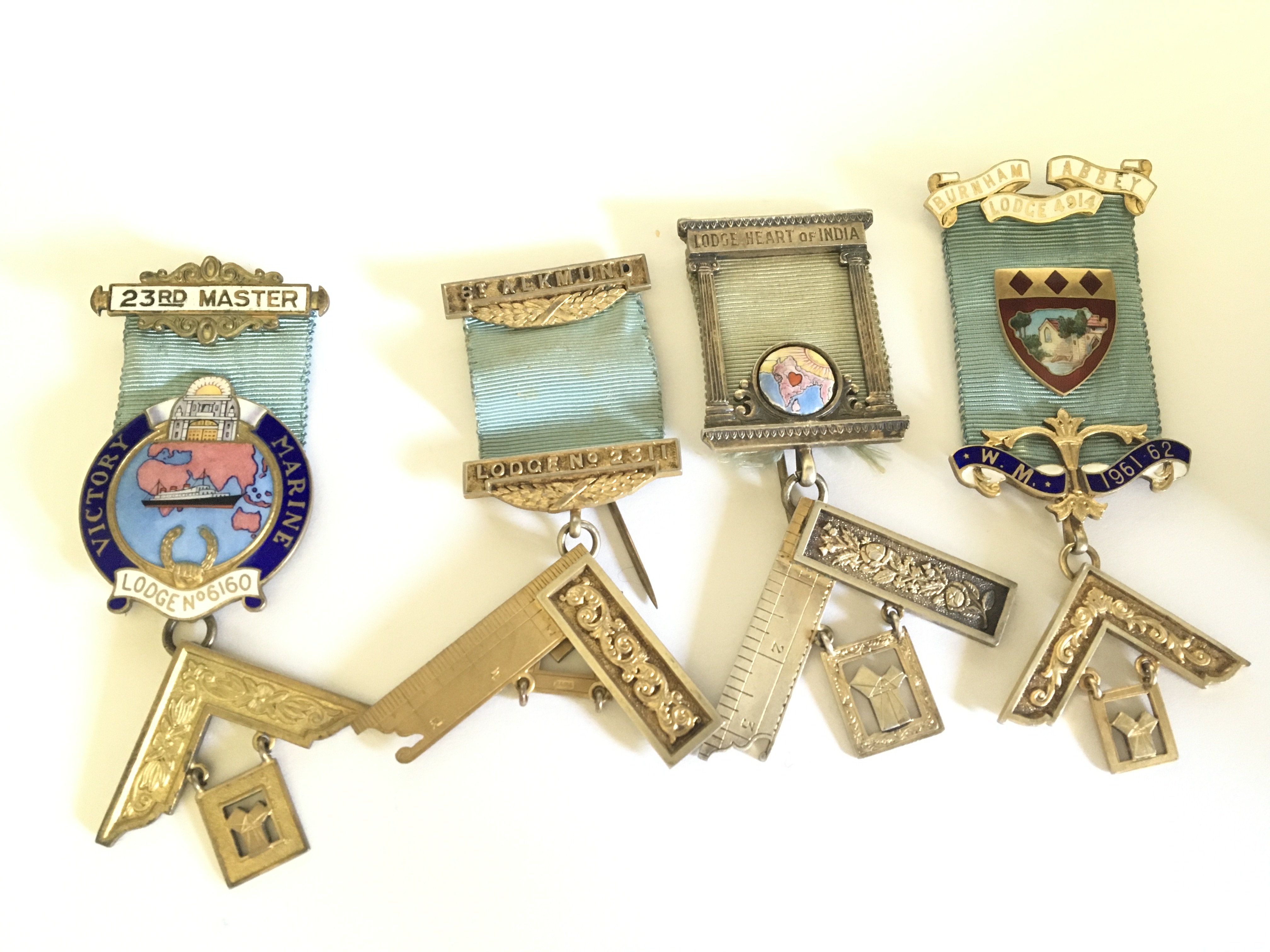 Four Masonic silver gilt Jewels three intricately decorated with enamel Lodge Heart of India Victory Marine Burnham Abbey and St Aekmund Lodge (4)