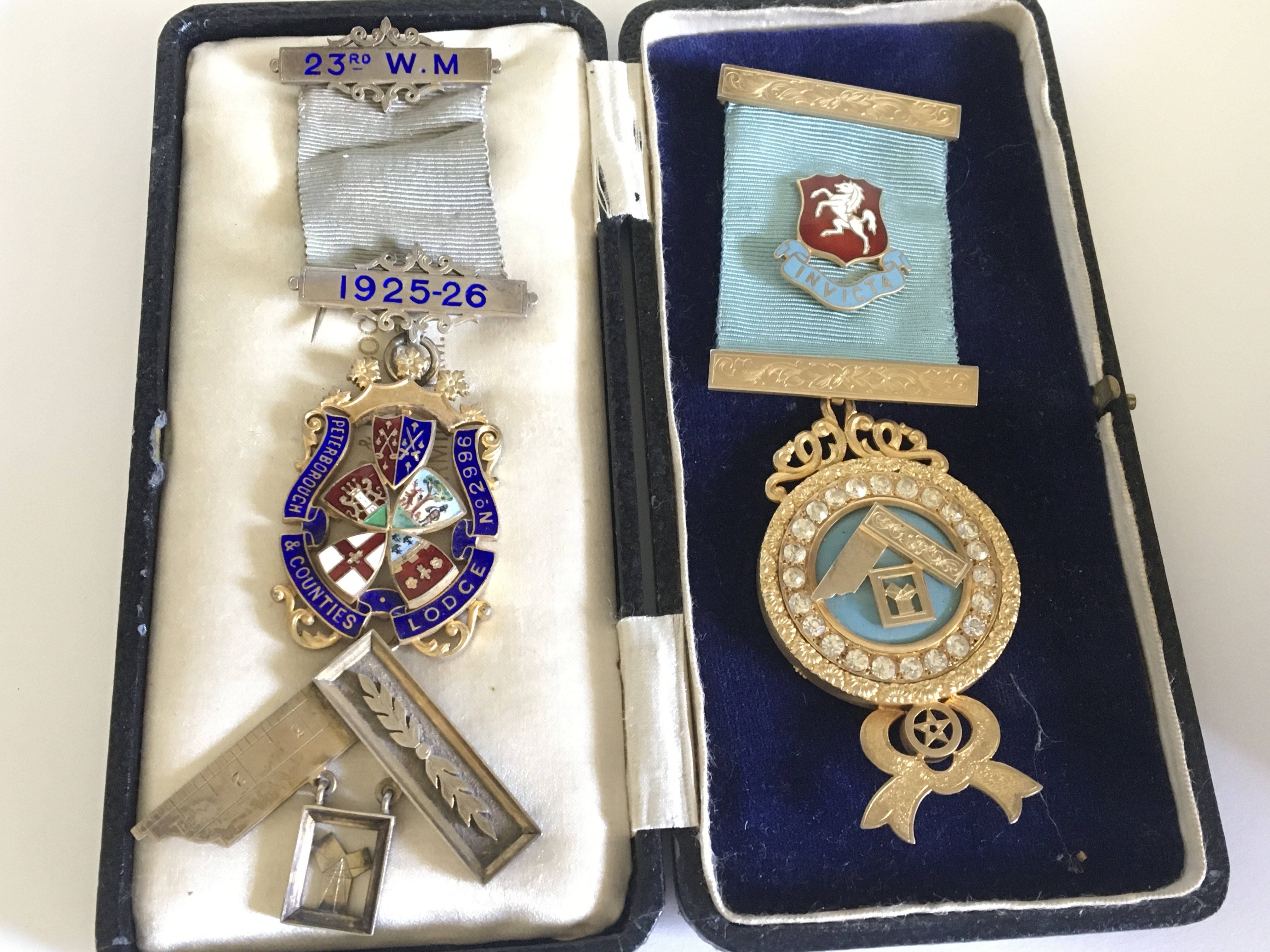 Two silver gilt Masonic Jewels 1925-26 Worshipful Masters jewel Peterborouch & Counties in a fitted case.